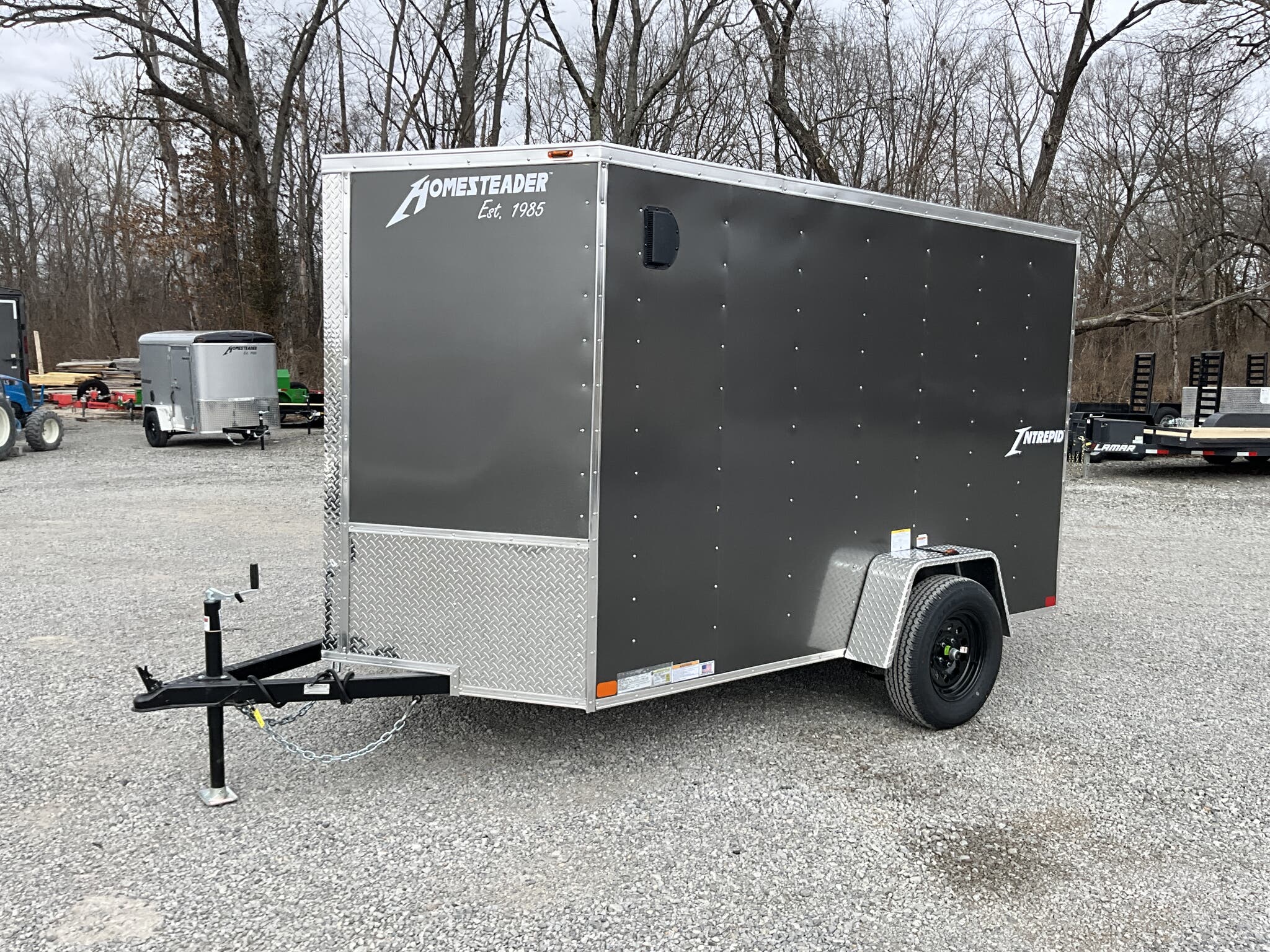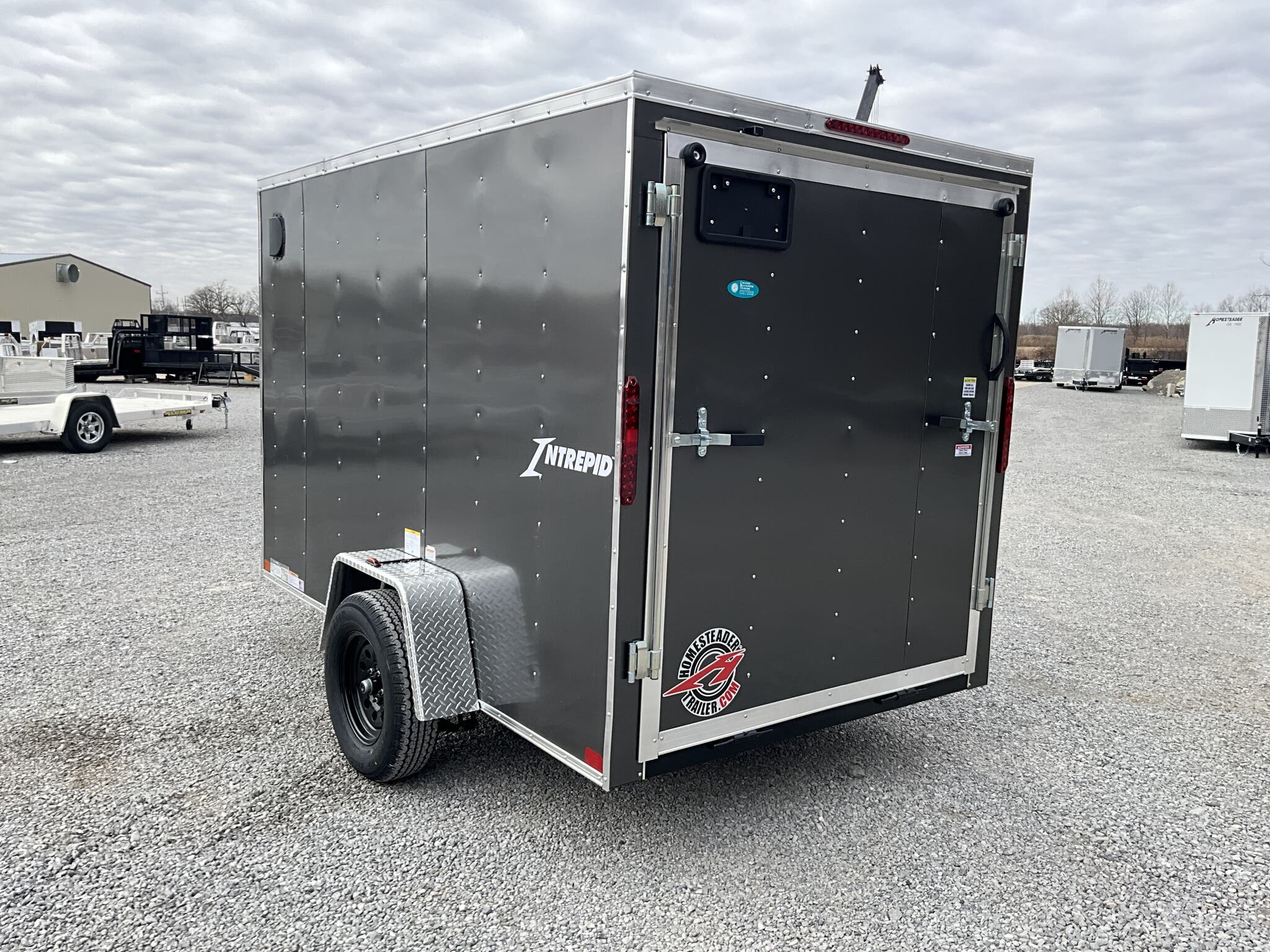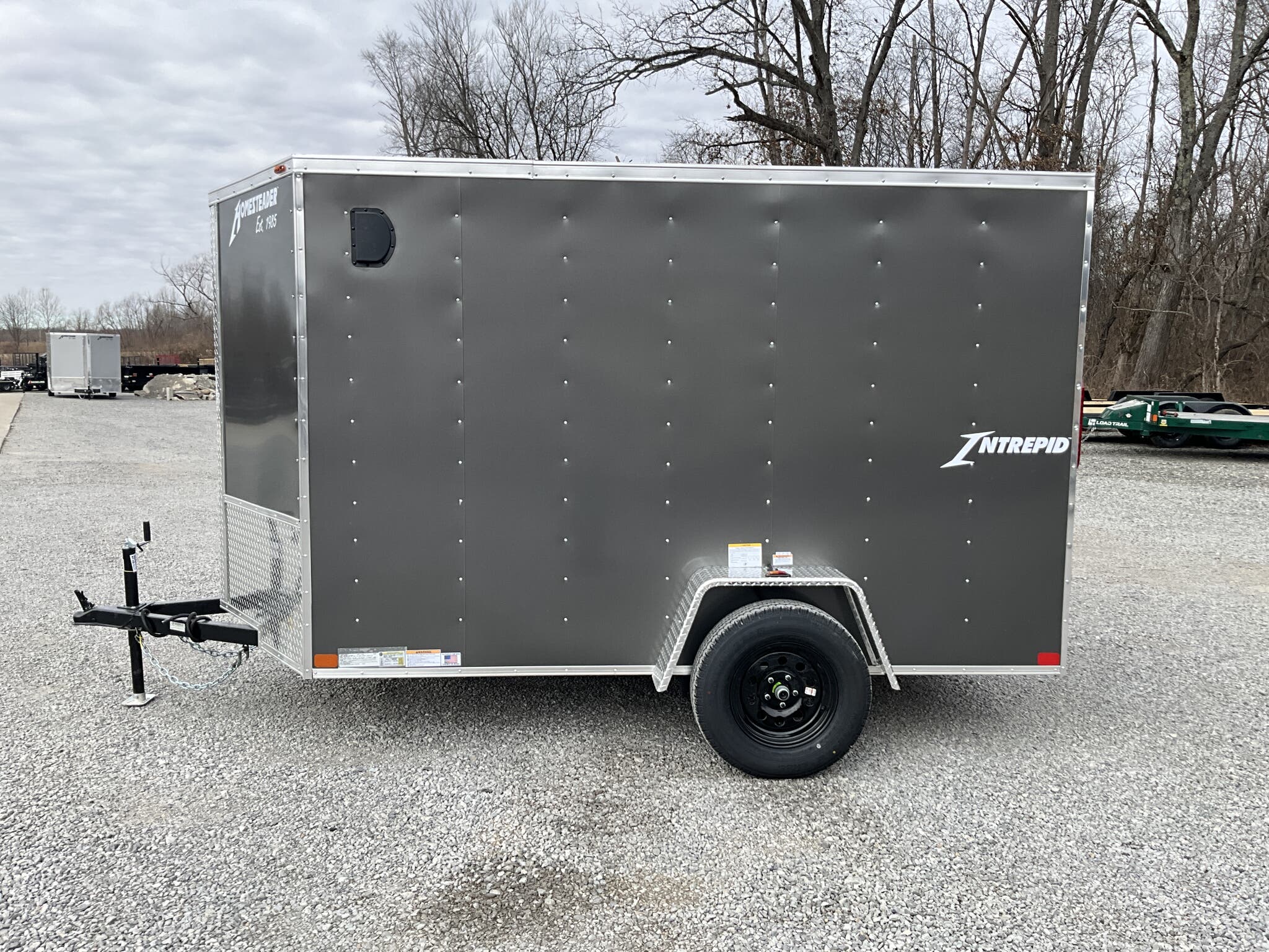 2026 Homesteader Intrepid 6 10 Enclosed Cargo Trailer 3,000 GVWR Charcoal Gray For Sale in Illinois OVERVIEW: 2026 HOMESTEADER INTREPID 6 10 SINGLE AXLE ENCLOSED CARGO TRAILER LIGHTWEIGHT, EASY TOW ENCLOSED TRAILER FOR HOMEOWNERS, CONTRACTORS, AND SMALL EQUIPMENT CHARCOAL GRAY .030 ALUMINUM EXTERIOR WITH RAMP DOOR PACKAGE SPECIFICATIONS: Model / VIN: 610IS | 5HABE1016TN146990 GVWR: 3,000 lbs Axle: (1) 3,500 lb spring ride axle Suspension: Multi leaf spring suspension Exterior: Charcoal Gray aluminum siding (.030 aluminum upgrade) Roof: One piece aluminum roof Floor/Walls: 3/4 plywood floor, 3/8 plywood walls Frame: Steel tube frame construction Coupler: 2 ball coupler Jack: A frame top wind jack DOORS & ACCESS: Rear ramp door with flap (6 Intrepid ramp package) (4) recessed 1,000 lb floor mounted D rings LIGHTING & ELECTRICAL: LED exterior lighting Interior dome light WEIGHTS: Empty Weight: 1,546 lbs GVWR: 3,000 lbs Payload Capacity: 1,454 lbs Tongue Weight Capacity (10% of GVWR Bumper Pull): 300 lbs Total Effective Payload: 1,754 lbs CONDITION & NOTES: New 2026 model Intrepid series lightweight and cost effective Ideal for tools, lawn equipment, ATVs, or general cargo DELIVERY RATES FROM ZIP CODE 62864: Up to 100 miles $150 101 to 300 miles $2.00 per mile 301 to 1,200 miles $3.00 per mile Over 1,200 miles $4.00 per mile (Lower 48 states only)