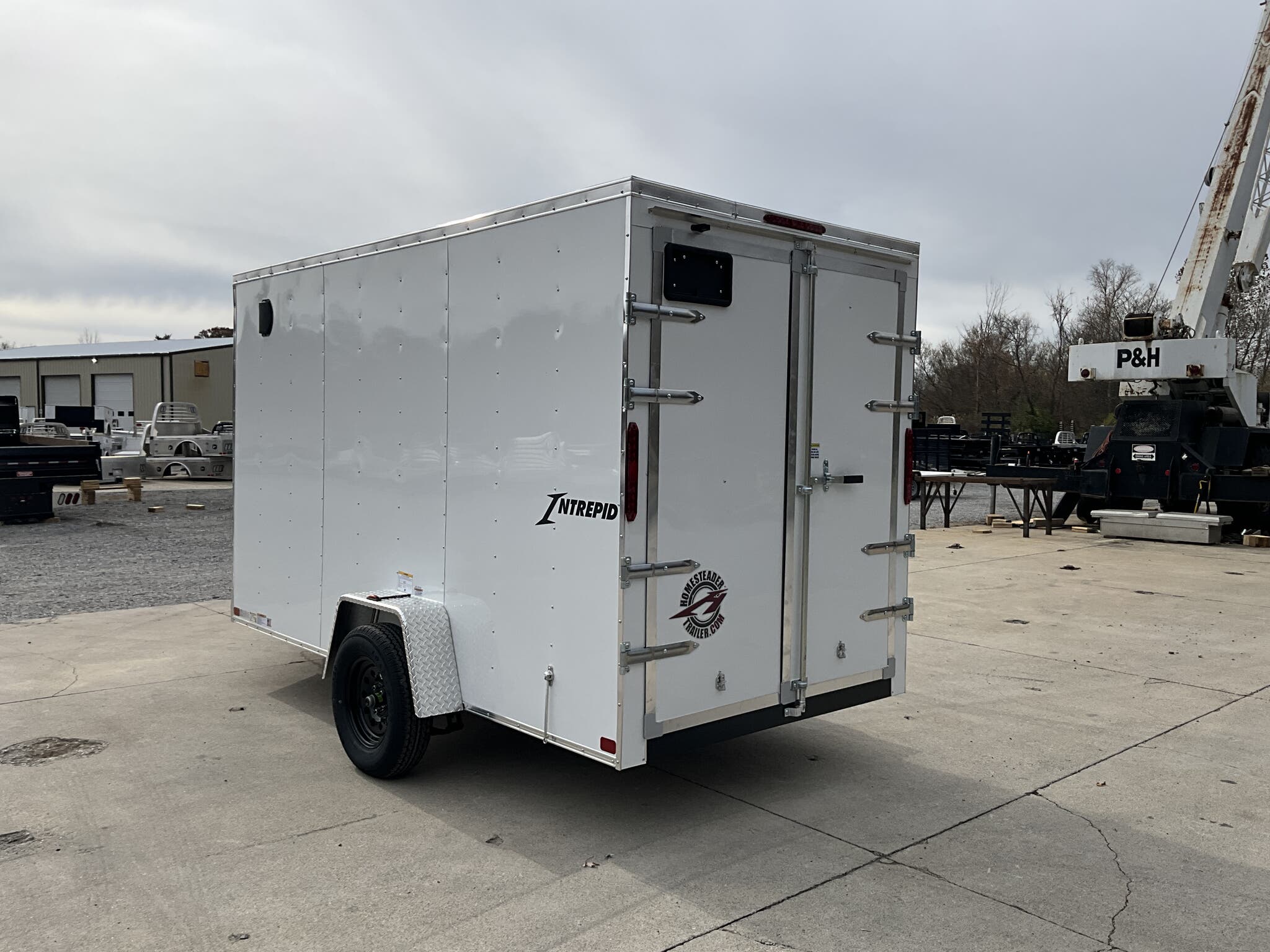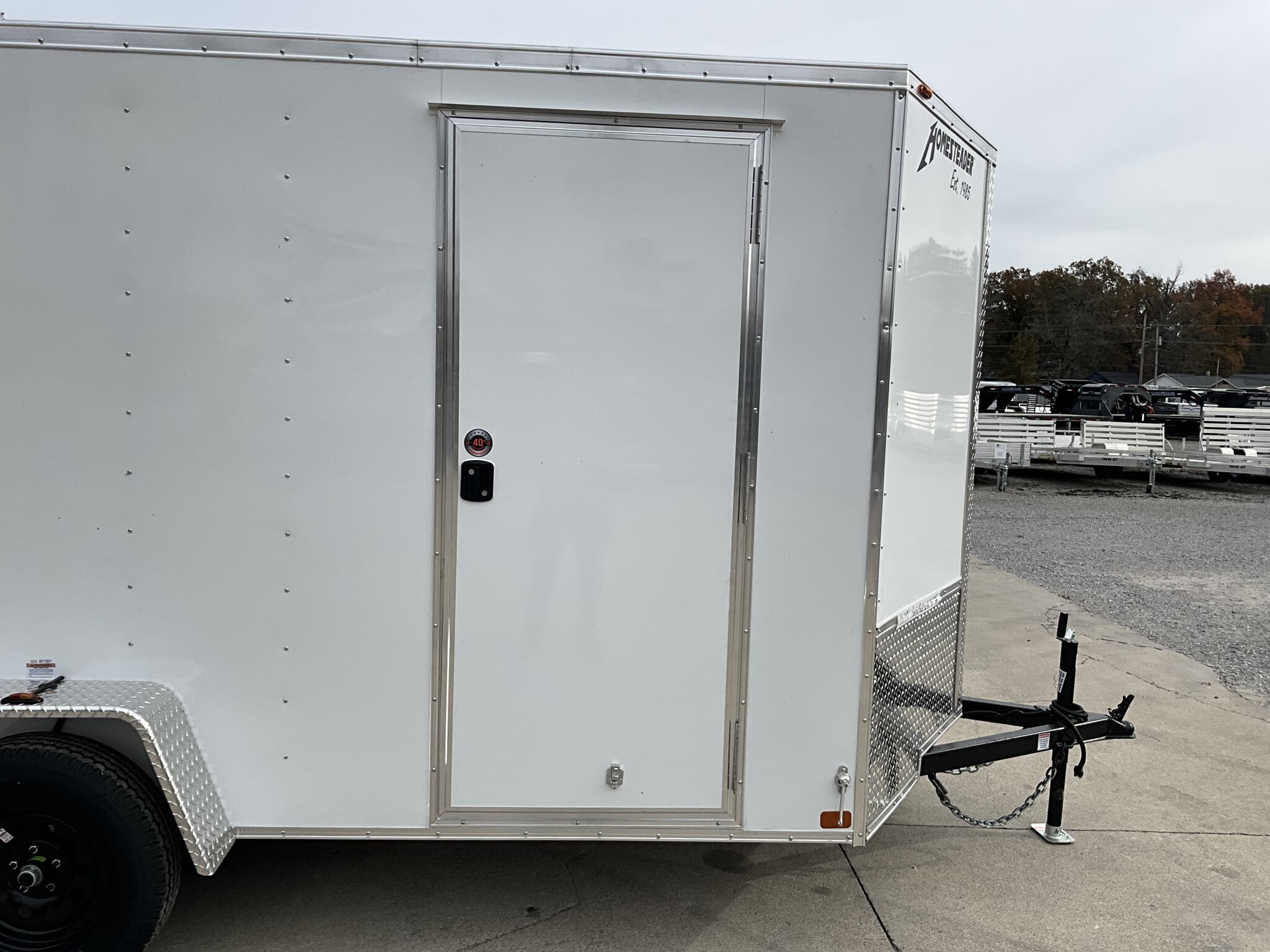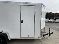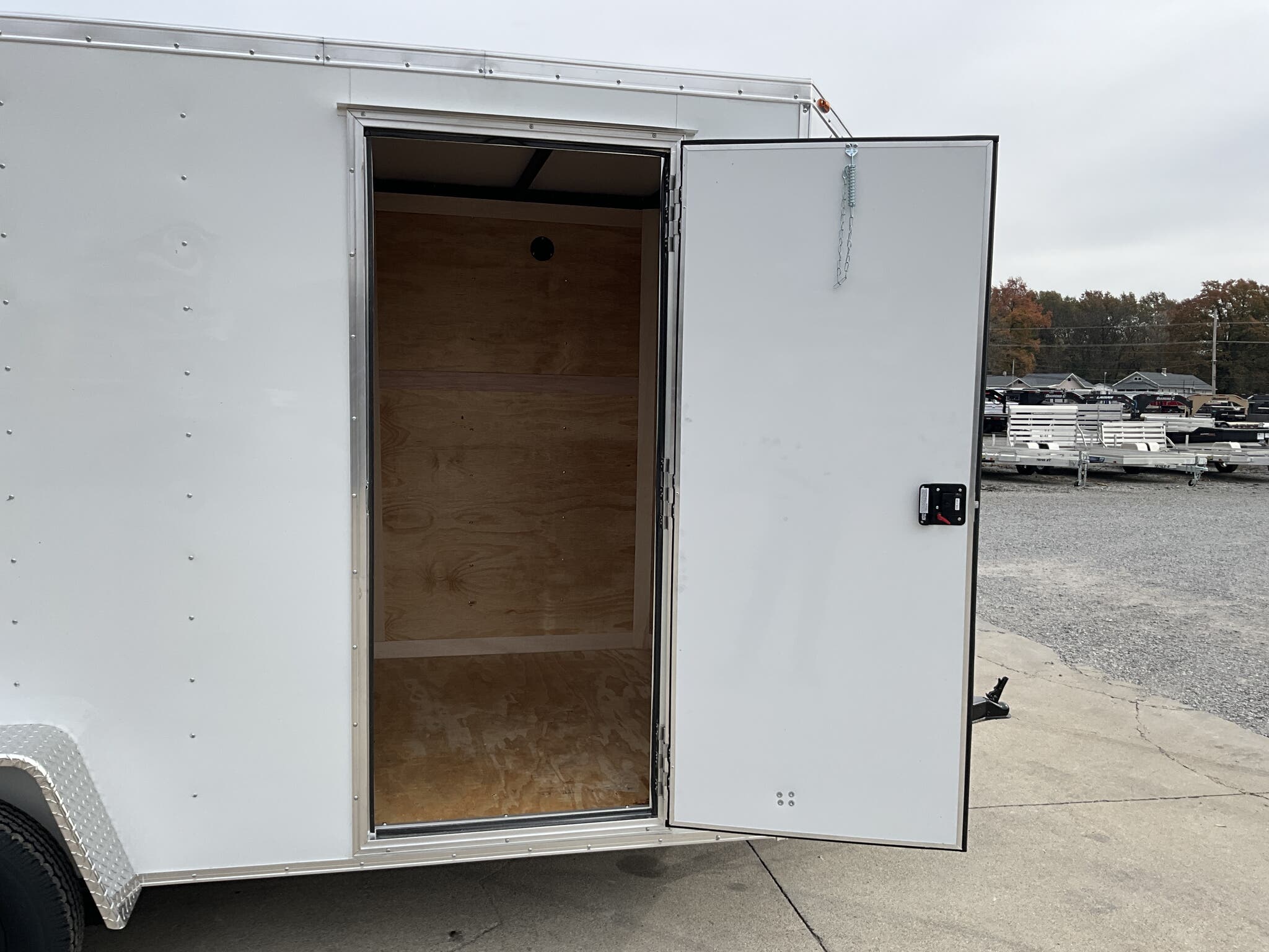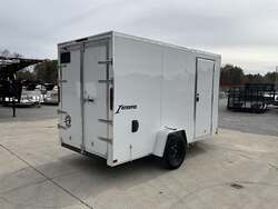2026 HOMESTEADER 6' x 12' Enclosed Cargo Trailer 2,990 lb GVWR, White Aluminum, 24" V Nose (adds length), 32" Bonded Side Door (no bar lock), Rear Double Doors (barn doors) with 2 Extra Hinges Each, 6.5' Interior Height For Sale in Illinois Standout Options: Rear double doors with 2 extra hinges per door (heavy duty upgrade) Standout Options: 24" V nose adds usable cargo length Standout Options: LED exterior lighting; flow thru sidewall vents; interior dome light Standout Options: (4) floor mounted D rings Specs Exterior: White aluminum; 24" V nose (additional to 12' box) Specs Doors: 32" bonded side door (no bar lock); rear double doors (barn doors) with 2 extra hinges each Specs Floor/Walls: 3/4" plywood floor; 3/8" plywood walls Specs Ventilation/Lighting: Flow thru vents; interior dome light; LED exterior lighting Specs Axle/Suspension: 3.5K idler axle; spring suspension Specs Tires/Wheels: 15" radial tires; steel wheels Specs Height/Dimensions: 78" interior height (6.5'); 12' L x 6' W box + 24" V nose Specs Coupler/Jack: 2" coupler; A frame tongue jack Specs Structure: Undercoated steel frame; tubular wall studs 16" O.C.; tubular roof supports 24" O.C.; one piece aluminum roof; NATM compliant Specs Warranty: 3 year limited manufacturer warranty Weights & Capacities GVWR: 2,990 lb Weights & Capacities Empty/Trailer Weight: 1,680 lb Weights & Capacities Payload on Axles: 2,990 1,680 = 1,310 lb Weights & Capacities Target Tongue Load (10% of GVWR): 299 lb Weights & Capacities Total Payload Including Tongue Support: 2,990 1,680 + 299 = 1,609 lb Delivery from 62864 (Lower 48): Up to 100 miles: $150 Delivery from 62864 (Lower 48): 101 300 miles: $2.00/mile Delivery from 62864 (Lower 48): 301 1200 miles: $3.00/mile Delivery from 62864 (Lower 48): Over 1200 miles: $4.00/mile