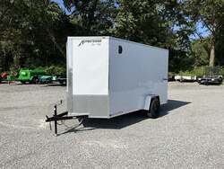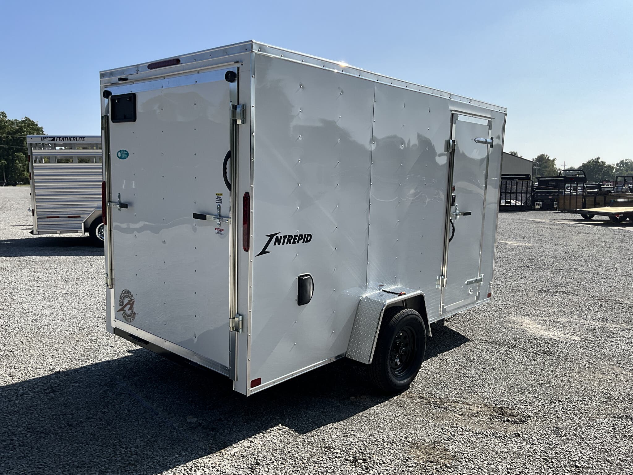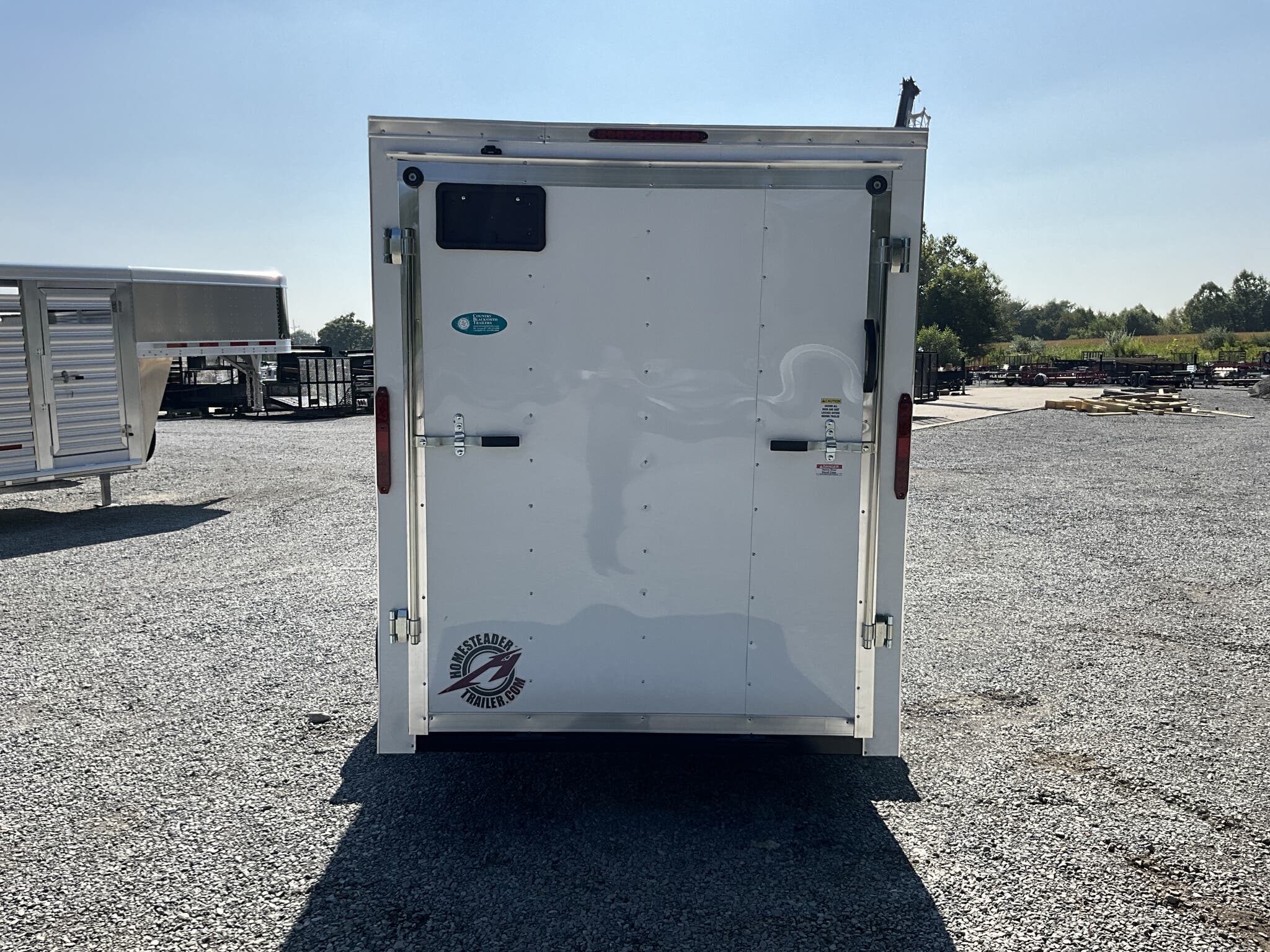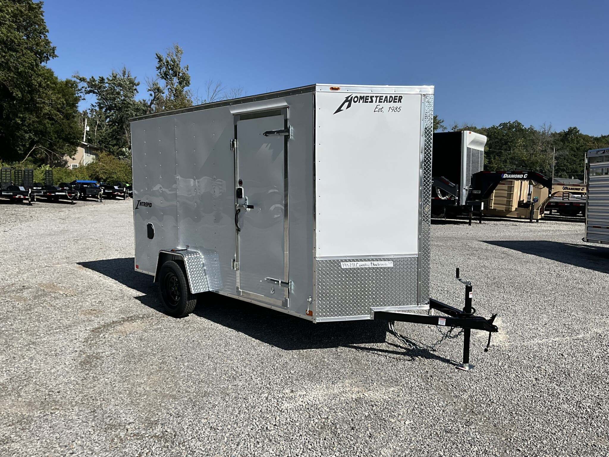 2026 HOMESTEADER 6' x 12' Enclosed Cargo Trailer — 2,990 lb GVWR, White Aluminum, 24" V-Nose (adds length), 32" Bonded Side Door (no bar lock), Rear Ramp w/ Extended Wood Flap, 6.5' Interior Height — For Sale in Illinois