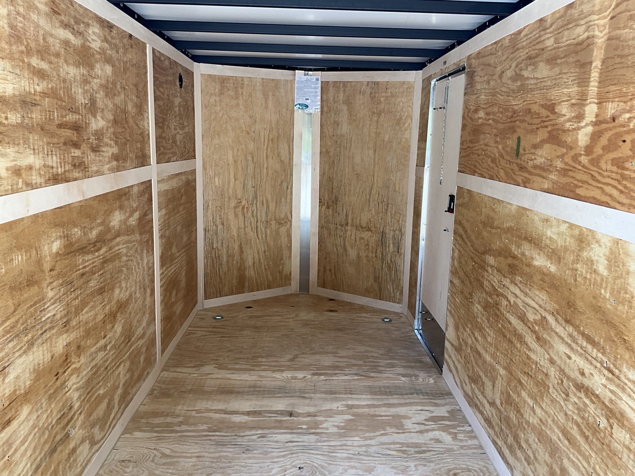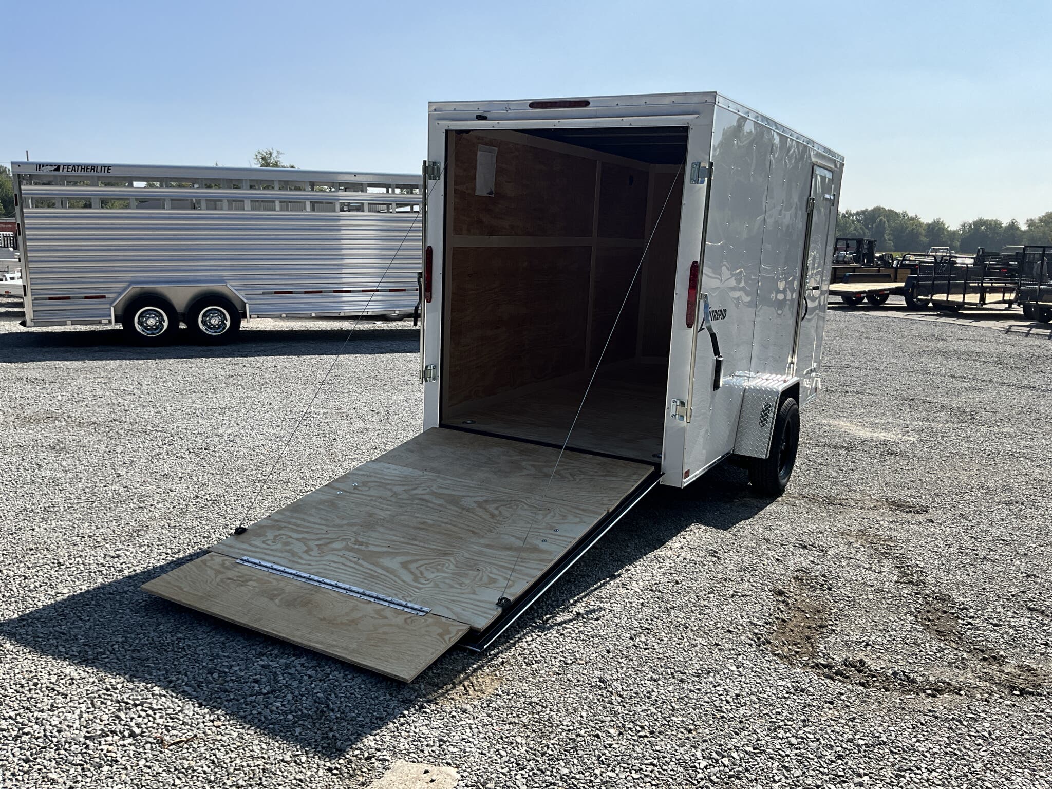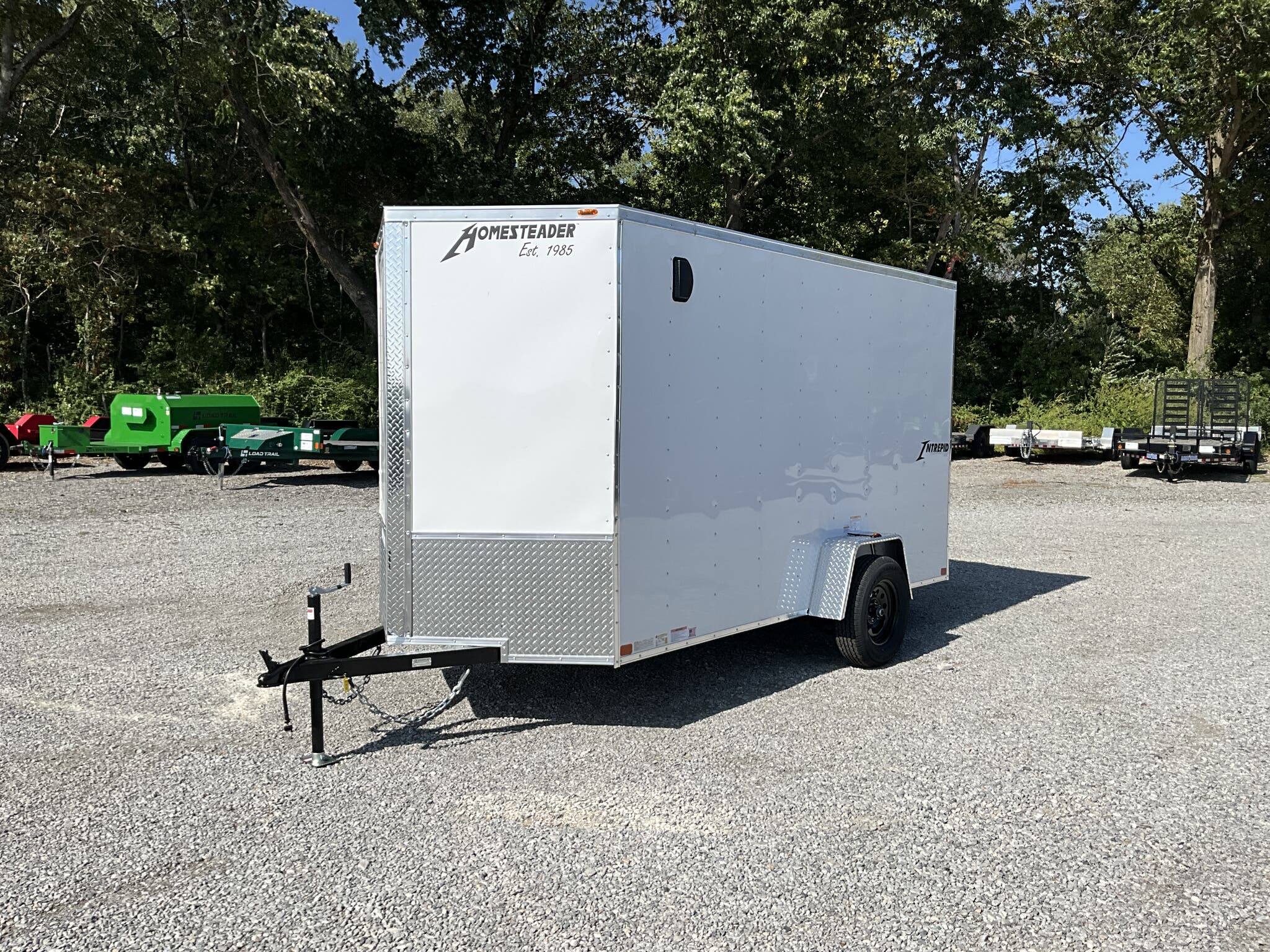 Search Tags: Homesteader 6x12 specs; 6.5 ft interior height; enclosed cargo trailer ramp door; single axle 2990 GVWR; 24" V-nose; 32" side door; Illinois cargo trailer for sale