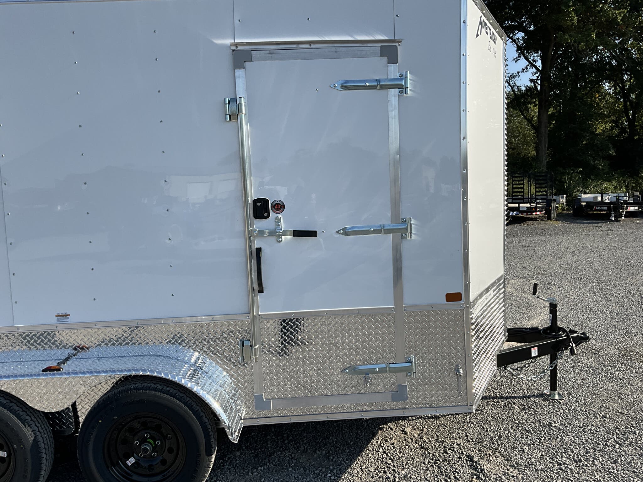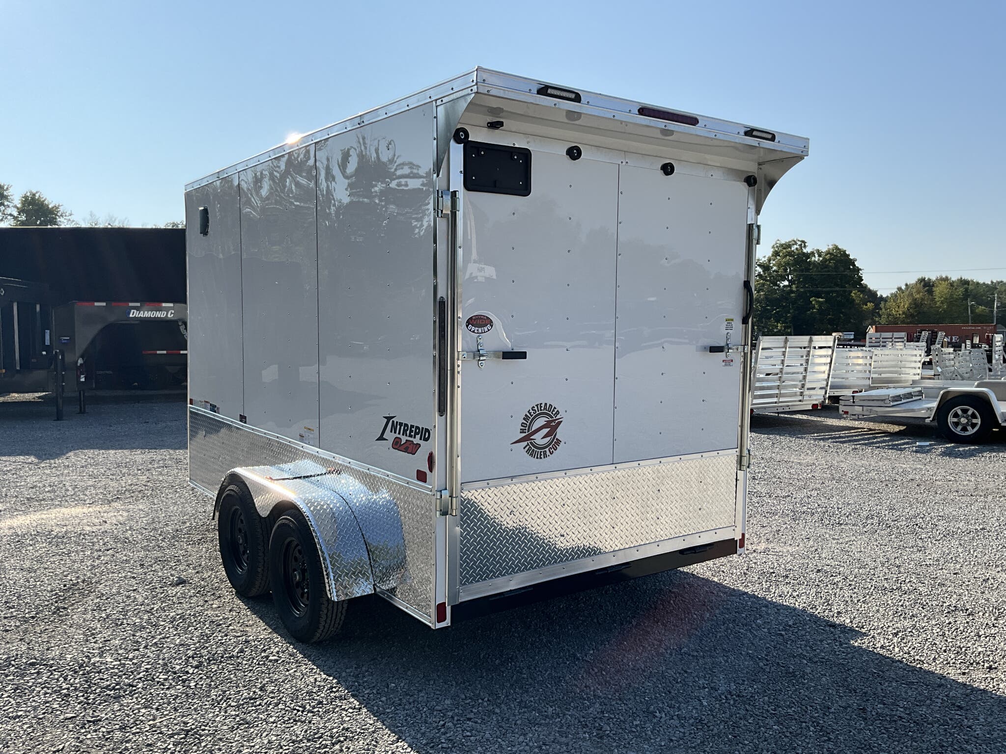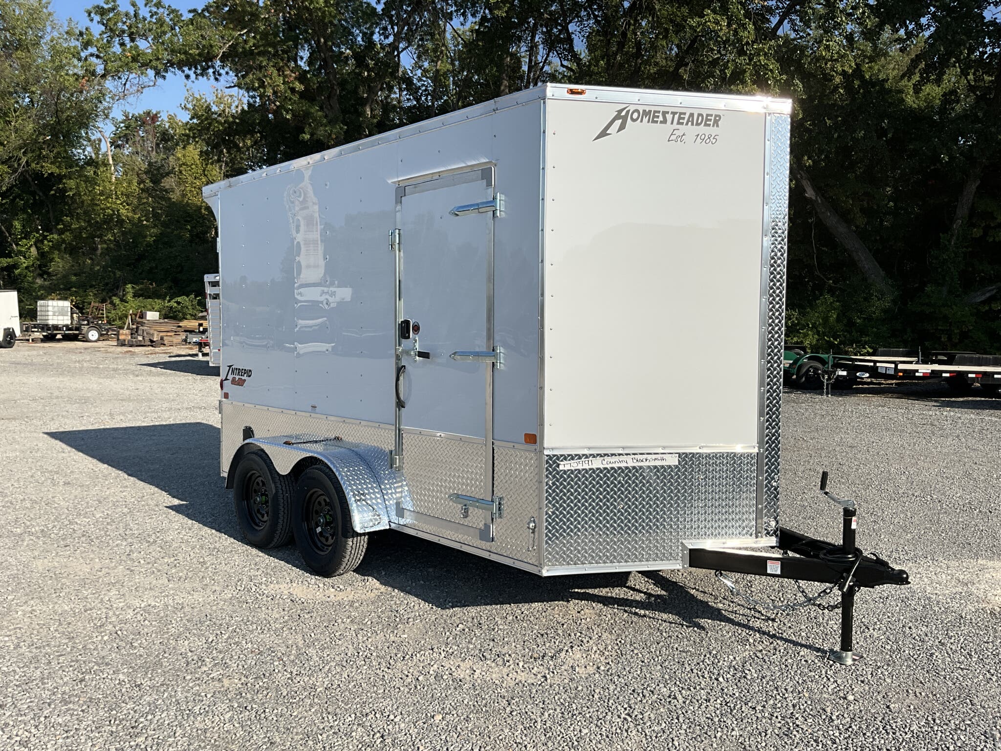 2026 HOMESTEADER INTREPID 7 X 12 X 7 TALL TANDEM AXLE ENCLOSED CARGO TRAILER WITH RAMP DOOR OHV PACKAGE WHITE FOR SALE IN ILLINOIS The 2026 Homesteader Intrepid 7x12x7 tall tandem axle enclosed cargo trailer with ramp door is engineered for CONTRACTORS, LANDSCAPERS, and UTV OWNERS needing a compact but heavy duty trailer with extra height. Outfitted with the OHV PACKAGE, this model includes enhanced durability and convenience features that make hauling easier and more secure. The OHV PACKAGE upgrades this unit with a 78 WIDE RAMP DOOR OPENING, a 7 INTERIOR HEIGHT for tall equipment and UTV clearance, and ALUMINUM TREADPLATE 2 HIGH ON THE SIDEWALLS AND REAR for added protection. A 32 SIDE DOOR WITH FLUSH LOCK AND DEADBOLT provides secure side entry, while the REAR RAMP DOOR WITH EXTENDED WOOD FLAP allows smooth loading of equipment and UTVs. Inside, this trailer is equipped with a 3/4 PLYWOOD FLOOR, 3/8 PLYWOOD WALL LINER, and (4) RECESSED FLOOR MOUNT D RINGS for tie down security. It also includes a 12V INTERIOR LIGHT and FLOW THRU VENT SYSTEM for airflow and visibility. Built on a 2X4 TUBE STEEL FRAME with UPGRADED 16 ON CENTER WALL POSTS AND FLOOR CROSSMEMBERS FOR EXTRA STRENGTH, this trailer is designed for long term durability. Tandem 3,500 LB SPRING MOUNTED ELECTRIC BRAKE AXLES WITH EZ LUBE HUBS, 15 RADIAL TIRES, and MODULAR STEEL WHEELS provide smooth towing. Standard safety features include a 5,000 LB TONGUE JACK, LED COMPLIANT LIGHTING, ALUMINUM FENDERS, and a BREAKAWAY SWITCH WITH CHARGER. This unit has an EMPTY WEIGHT OF APPROX. 2,050 LBS, a GVWR OF 7,000 LBS, and a PAYLOAD CAPACITY OF ABOUT 4,950 LBS. FEATURE HIGHLIGHTS: 2026 HOMESTEADER INTREPID 7X12X7 TALL TANDEM AXLE ENCLOSED TRAILER WITH RAMP DOOR WHITE EXTERIOR OHV PACKAGE 7 INTERIOR HEIGHT, 78 WIDE RAMP DOOR, 2 TALL ALUMINUM TREADPLATE ON SIDES & REAR 32 SIDE DOOR WITH FLUSH LOCK AND DEADBOLT + EXTRA SECURITY REAR RAMP DOOR WITH EXTENDED WOOD FLAP 3/4 PLYWOOD FLOOR, 3/8 PLYWOOD WALLS, (4) RECESSED D RINGS 2X4 TUBE STEEL FRAME, UPGRADED 16 ON CENTER WALL POSTS & FLOOR CROSSMEMBERS TANDEM 3,500 LB ELECTRIC BRAKE AXLES, 15 RADIAL TIRES, MODULAR WHEELS LED LIGHTING, FLOW THRU VENTS, INTERIOR LIGHT EMPTY WEIGHT 2,050 LBS GVWR 7,000 LBS PAYLOAD 4,950 LBS SEO KEYWORDS: Homesteader Intrepid 7x12x7 tall enclosed trailer OHV package for sale Illinois, 2026 Homesteader 7x12 tandem axle cargo trailer white, 7x12 enclosed trailer with ramp door and 7ft interior height, OHV package enclosed trailer 7x12 7k GVWR, UTV hauler 7x12 tandem axle enclosed trailer