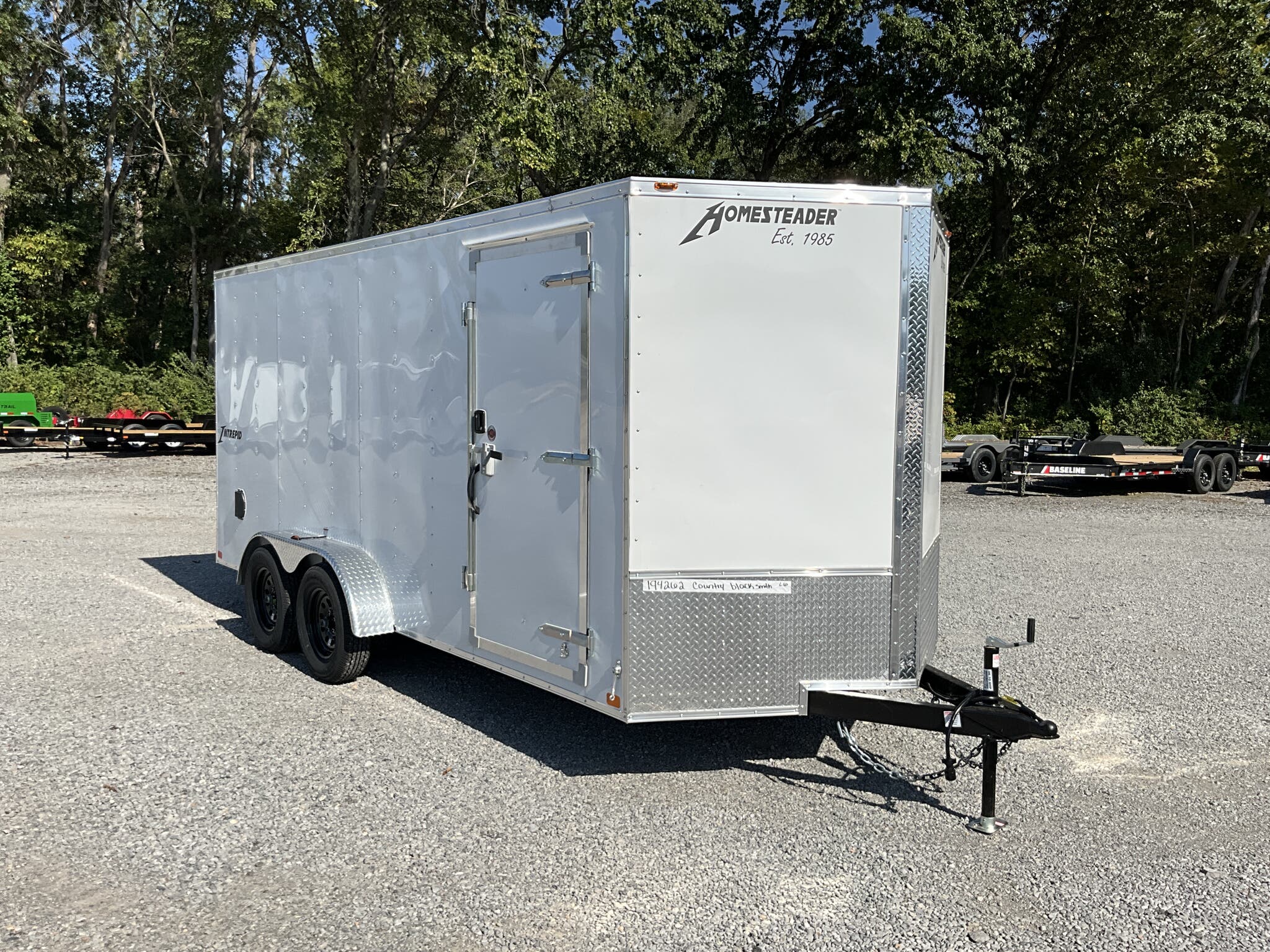 2026 Homesteader Intrepid 7x16x6’6” Tall Tandem Axle Enclosed Cargo Trailer With Ramp Door – White – For Sale in Illinois