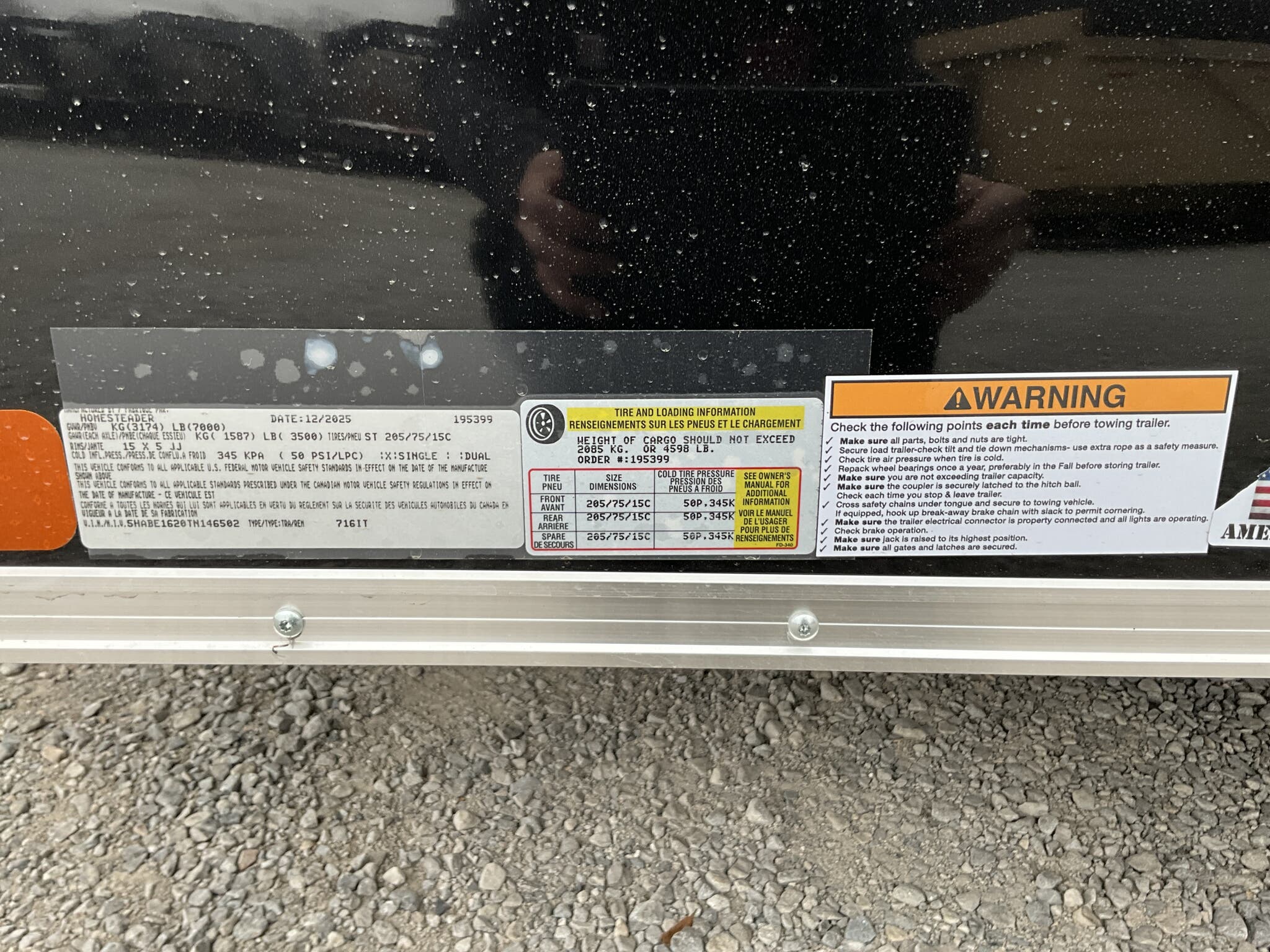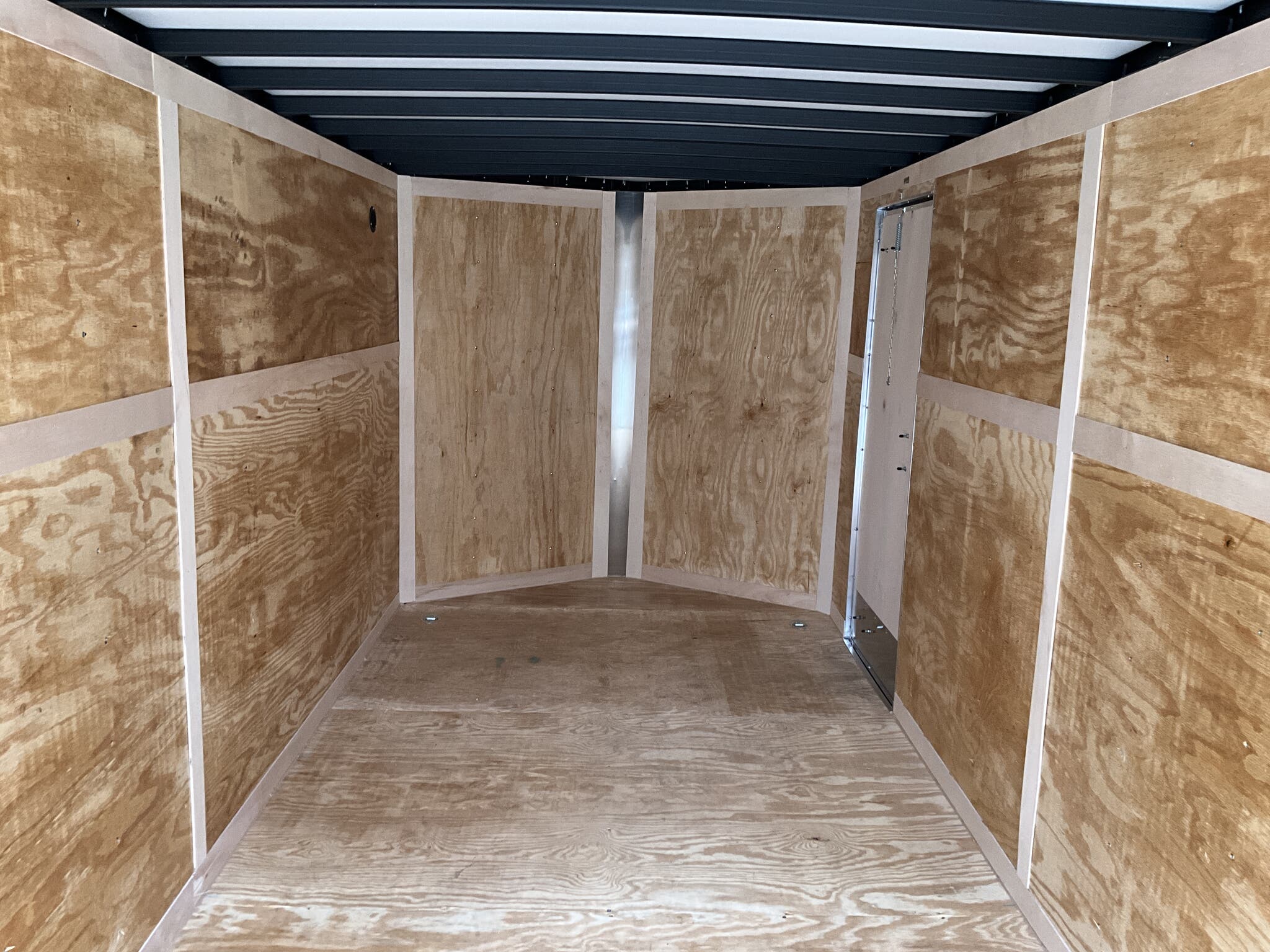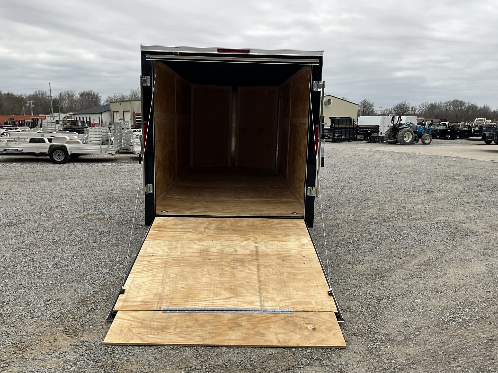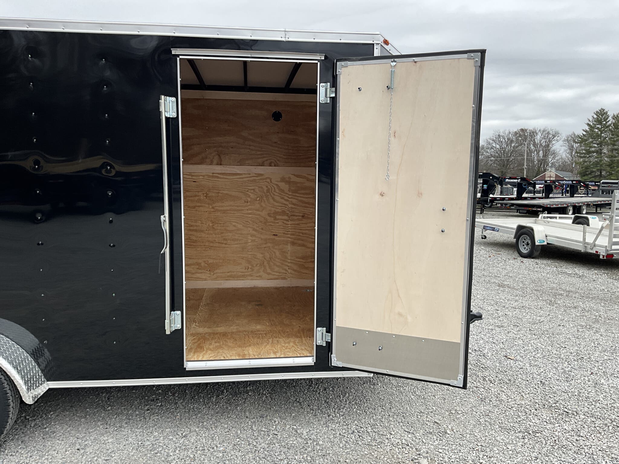2026 HOMESTEADER 7' X 16' ENCLOSED CARGO TRAILER, V-NOSE WITH FRONT STONEGUARD, 78" INTERIOR HEIGHT, BLACK ALUMINUM EXTERIOR, 2-3.5K ELECTRIC BRAKE AXLES, SPRING SUSPENSION, 15" RADIAL TIRES, 32" SIDE DOOR WITH BAR LOCK, REAR RAMP DOOR WITH EXTENDED WOOD FLAP, 3/4" PLYWOOD FLOOR, 3/8" PLYWOOD WALLS, 16" ON CENTER FLOOR CROSSMEMBERS AND WALL POSTS, (4) FLOOR MOUNT D-RINGS, FLOW THRU VENTS - SIDEWALL, DOME LIGHT, LED EXTERIOR LIGHTS, 2-5/16" COUPLER, A-FRAME JACK.