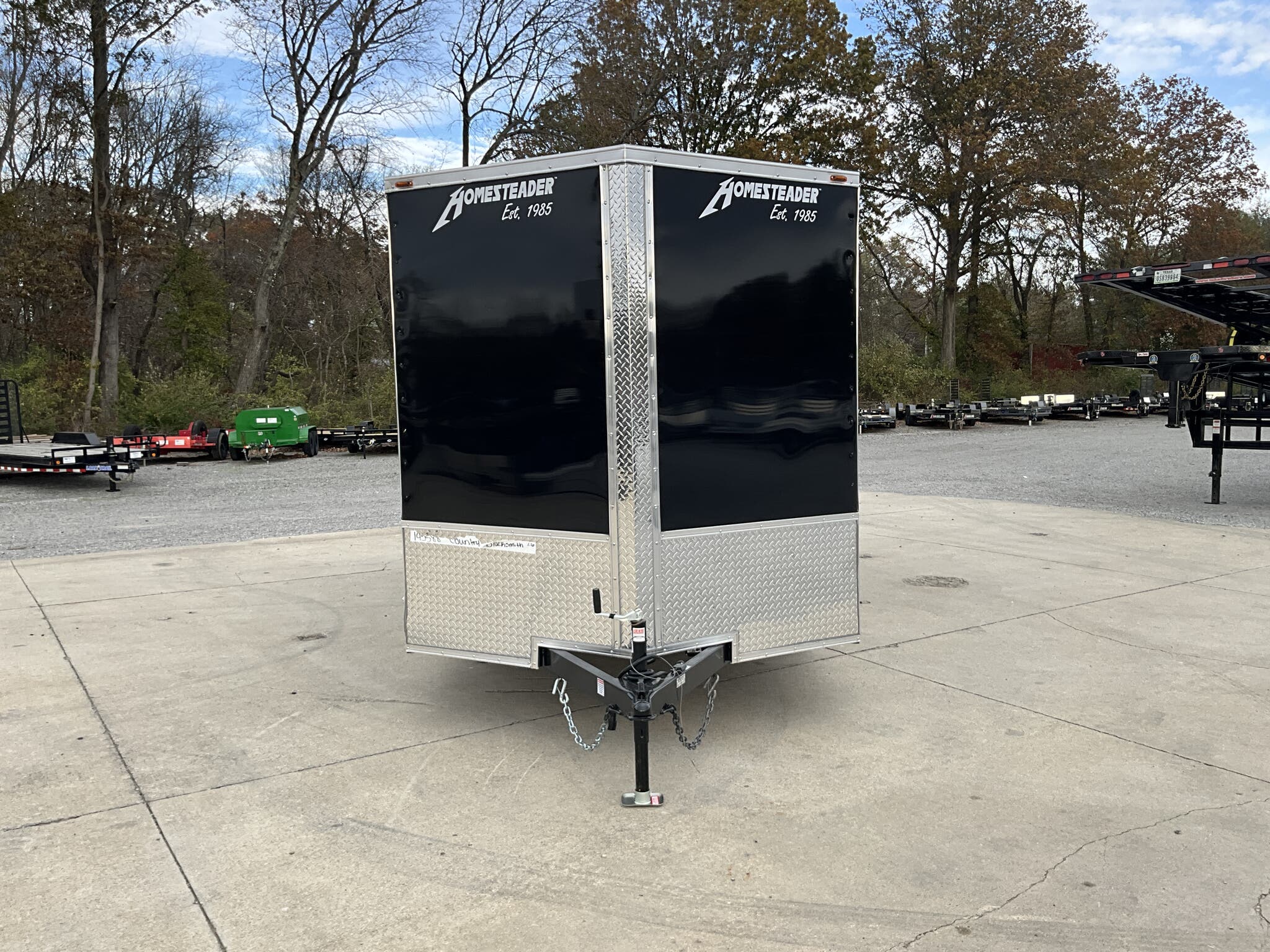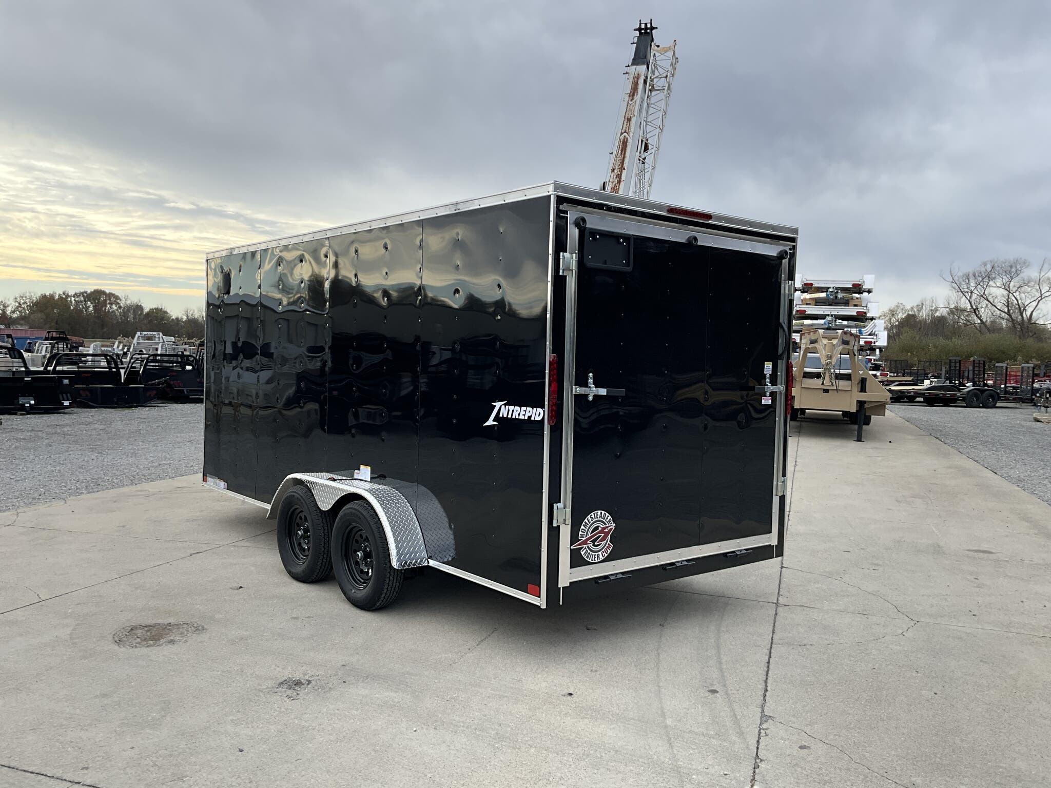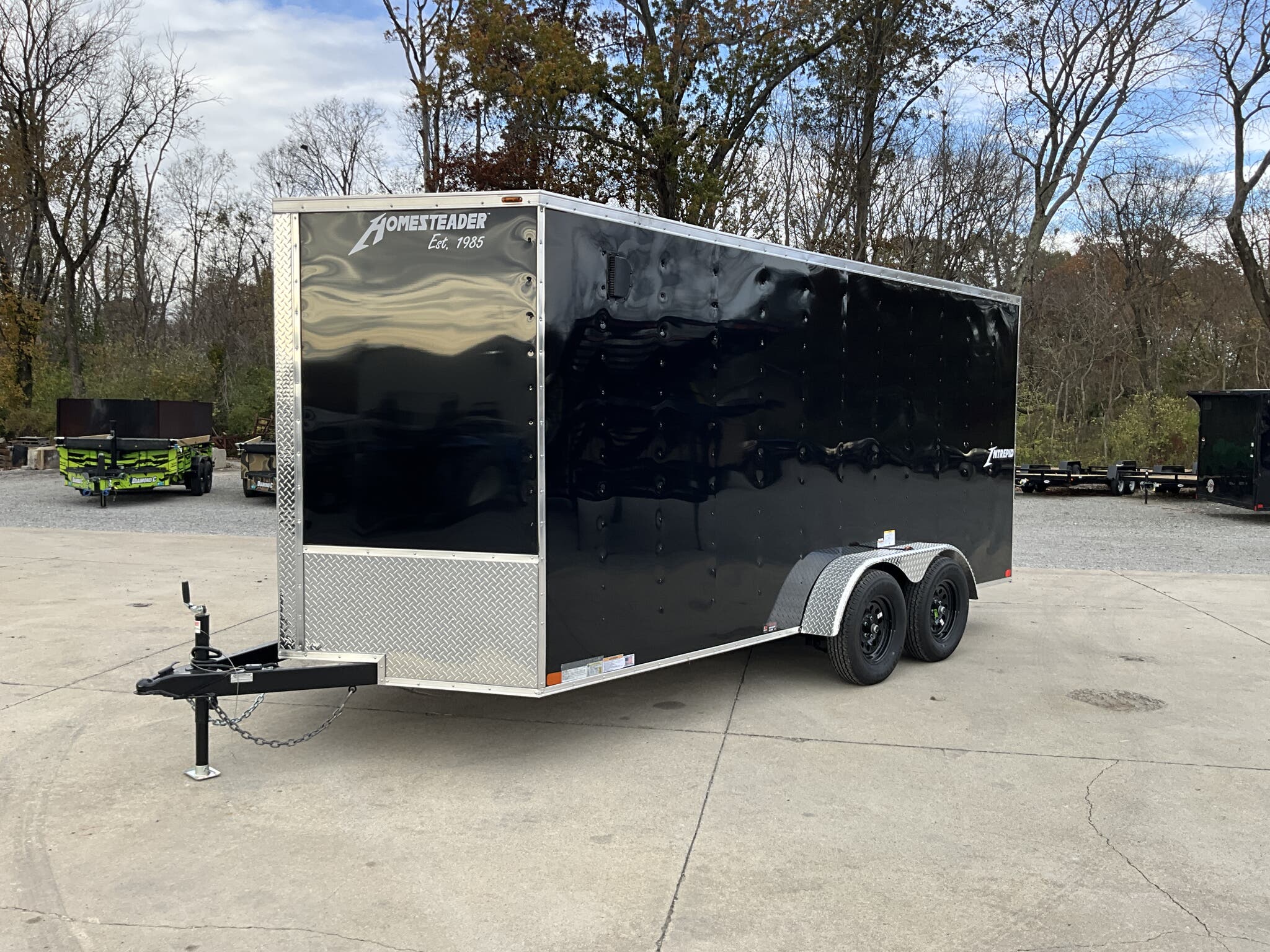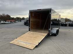 2026 HOMESTEADER INTREPID 7' x 16' x 6.5' Tall Enclosed Cargo Trailer 7,000 lb GVWR, Black Aluminum Exterior, 24" V Nose w/ Front Stoneguard, 36" Bonded Side Door w/ Flushlock, Rear Ramp Door w/ Extended Wood Flap For Sale in Illinois Standout Options: 36" bonded side door with flushlock (no bar lock) Standout Options: Rear ramp door with extended wood flap Standout Options: (4) floor mounted D rings Specs Interior Height: 78" (6.5') Specs Axles/Brakes: (2) 3.5K electric brake axles Specs Suspension: Spring suspension Specs Tires/Wheels: 15" radial tires; steel wheels Specs Exterior: Black aluminum Specs Doors: 36" bonded side door w/ flushlock; rear ramp door with extended wood flap Specs Floor/Walls: 3/4" plywood floor; 3/8" plywood walls Specs Framing: 16" O.C. floor crossmembers; 16" O.C. wall posts Specs Vents/Lighting: Flow thru sidewall vents; interior dome light; LED exterior lights Specs Coupler/Jack: 2 5/16" coupler; A frame tongue jack Specs Roof/Structure: One piece aluminum roof; tubular roof supports; undercoated frame; NATM compliant Specs Warranty: 3 year limited manufacturer warranty Weights & Capacities GVWR: 7,000 lb Weights & Capacities Empty/Trailer Weight: 2,390 lb Weights & Capacities Payload on Axles: 7,000 2,390 = 4,610 lb Weights & Capacities Target Tongue Load (10% of GVWR): 700 lb Weights & Capacities Total Payload Including Tongue Support: 4,610 + 700 = 5,310 lb Delivery from 62864 (Lower 48): Up to 100 miles: $150 Delivery from 62864 (Lower 48): 101 300 miles: $2.00/mile Delivery from 62864 (Lower 48): 301 1200 miles: $3.00/mile Delivery from 62864 (Lower 48): Over 1200 miles: $4.00/mile Search Tags: Homesteader Intrepid 7x16 specs; black enclosed cargo trailer; 6.5 ft interior height; tandem axle 7K GVWR; 36" bonded side door flushlock; ramp door with flap; 24" V nose; Illinois cargo trailer for sale