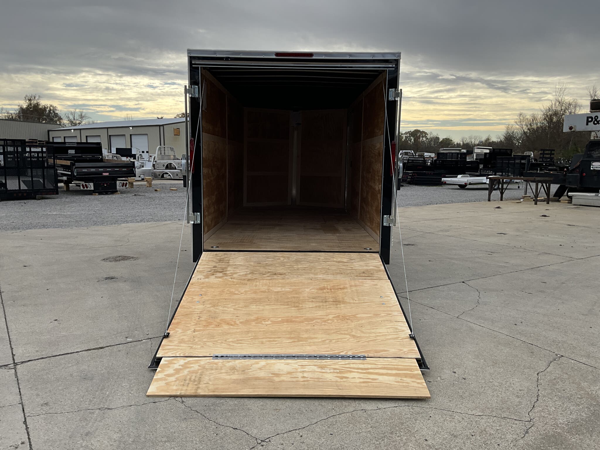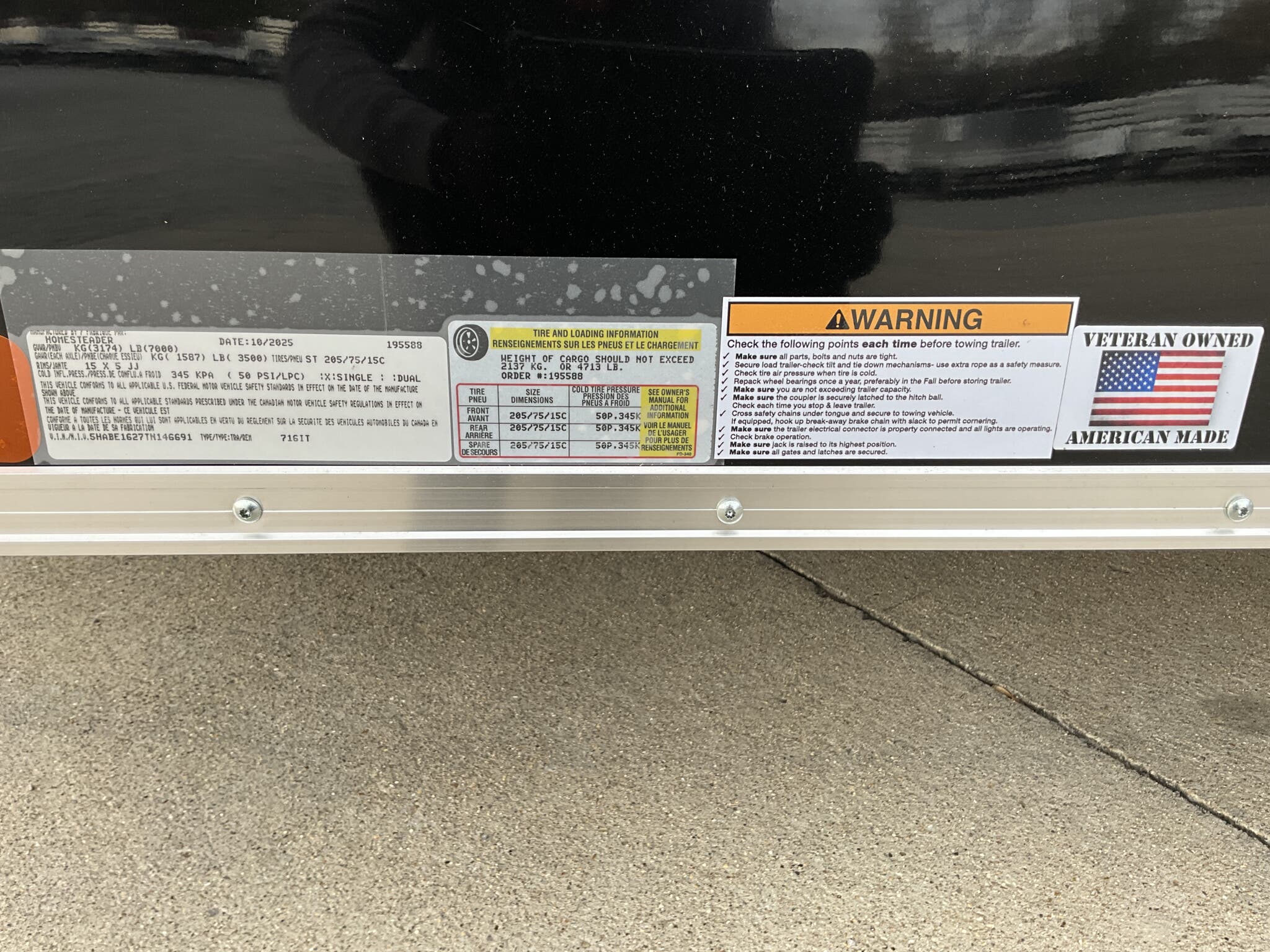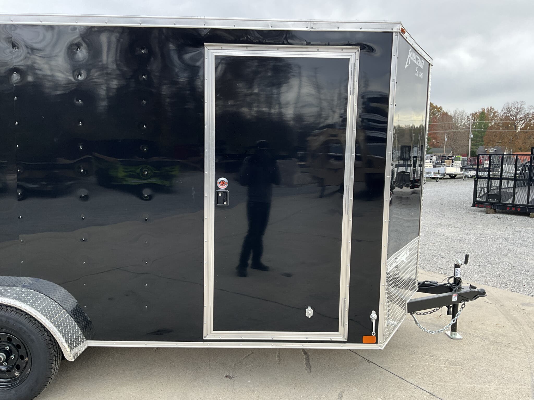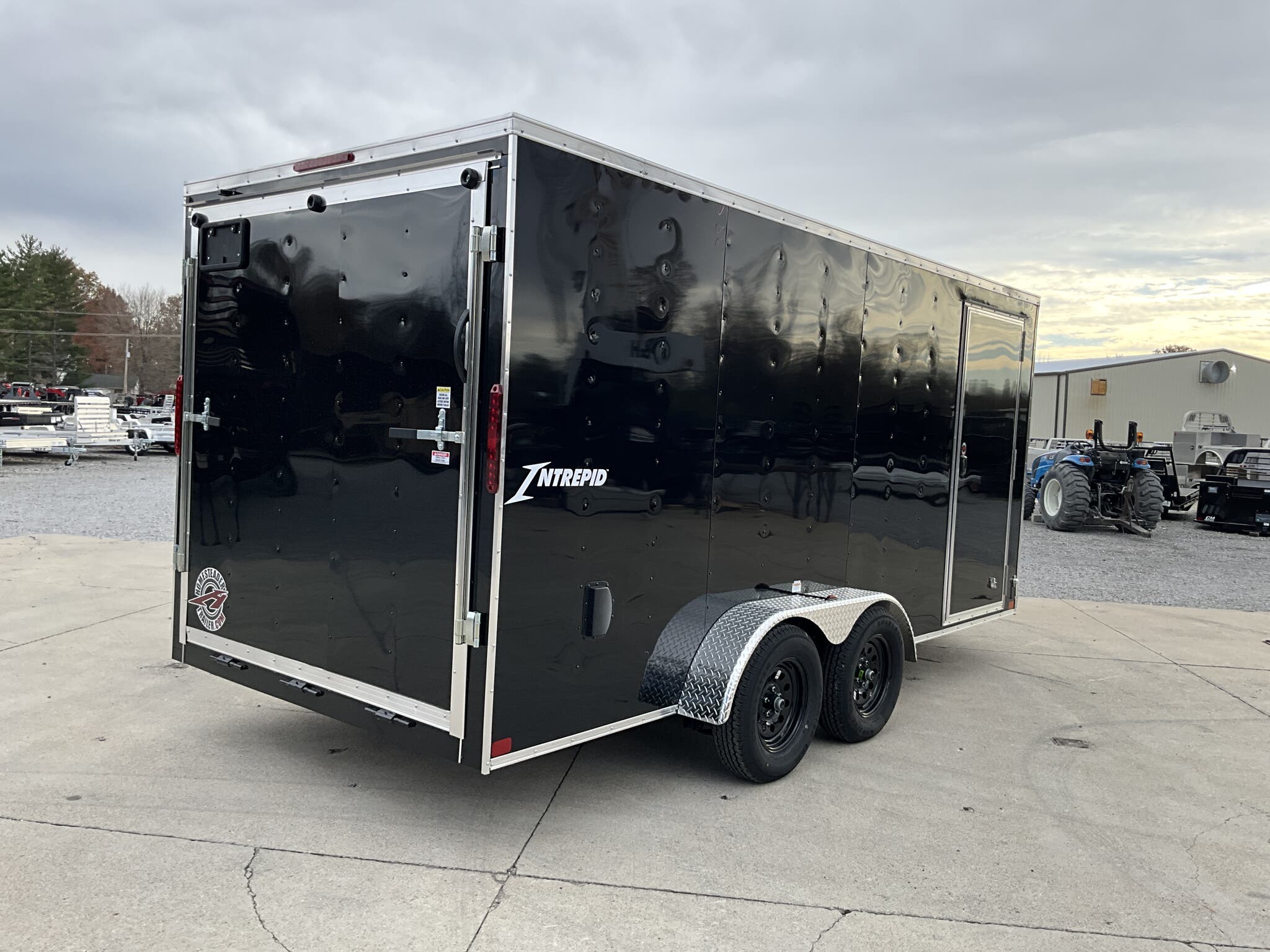 2026 HOMESTEADER INTREPID 7' x 16' x 6.5' Tall Enclosed Cargo Trailer 7,000 lb GVWR, Black Aluminum Exterior, 24" V Nose w/ Front Stoneguard, 36" Bonded Side Door w/ Flushlock, Rear Ramp Door w/ Extended Wood Flap For Sale in Illinois Standout Options: 36" bonded side door with flushlock (no bar lock) Standout Options: Rear ramp door with extended wood flap Standout Options: (4) floor mounted D rings Specs Interior Height: 78" (6.5') Specs Axles/Brakes: (2) 3.5K electric brake axles Specs Suspension: Spring suspension Specs Tires/Wheels: 15" radial tires; steel wheels Specs Exterior: Black aluminum Specs Doors: 36" bonded side door w/ flushlock; rear ramp door with extended wood flap Specs Floor/Walls: 3/4" plywood floor; 3/8" plywood walls Specs Framing: 16" O.C. floor crossmembers; 16" O.C. wall posts Specs Vents/Lighting: Flow thru sidewall vents; interior dome light; LED exterior lights Specs Coupler/Jack: 2 5/16" coupler; A frame tongue jack Specs Roof/Structure: One piece aluminum roof; tubular roof supports; undercoated frame; NATM compliant Specs Warranty: 3 year limited manufacturer warranty Weights & Capacities GVWR: 7,000 lb Weights & Capacities Empty/Trailer Weight: 2,390 lb Weights & Capacities Payload on Axles: 7,000 2,390 = 4,610 lb Weights & Capacities Target Tongue Load (10% of GVWR): 700 lb Weights & Capacities Total Payload Including Tongue Support: 4,610 + 700 = 5,310 lb Delivery from 62864 (Lower 48): Up to 100 miles: $150 Delivery from 62864 (Lower 48): 101 300 miles: $2.00/mile Delivery from 62864 (Lower 48): 301 1200 miles: $3.00/mile Delivery from 62864 (Lower 48): Over 1200 miles: $4.00/mile Search Tags: Homesteader Intrepid 7x16 specs; black enclosed cargo trailer; 6.5 ft interior height; tandem axle 7K GVWR; 36" bonded side door flushlock; ramp door with flap; 24" V nose; Illinois cargo trailer for sale