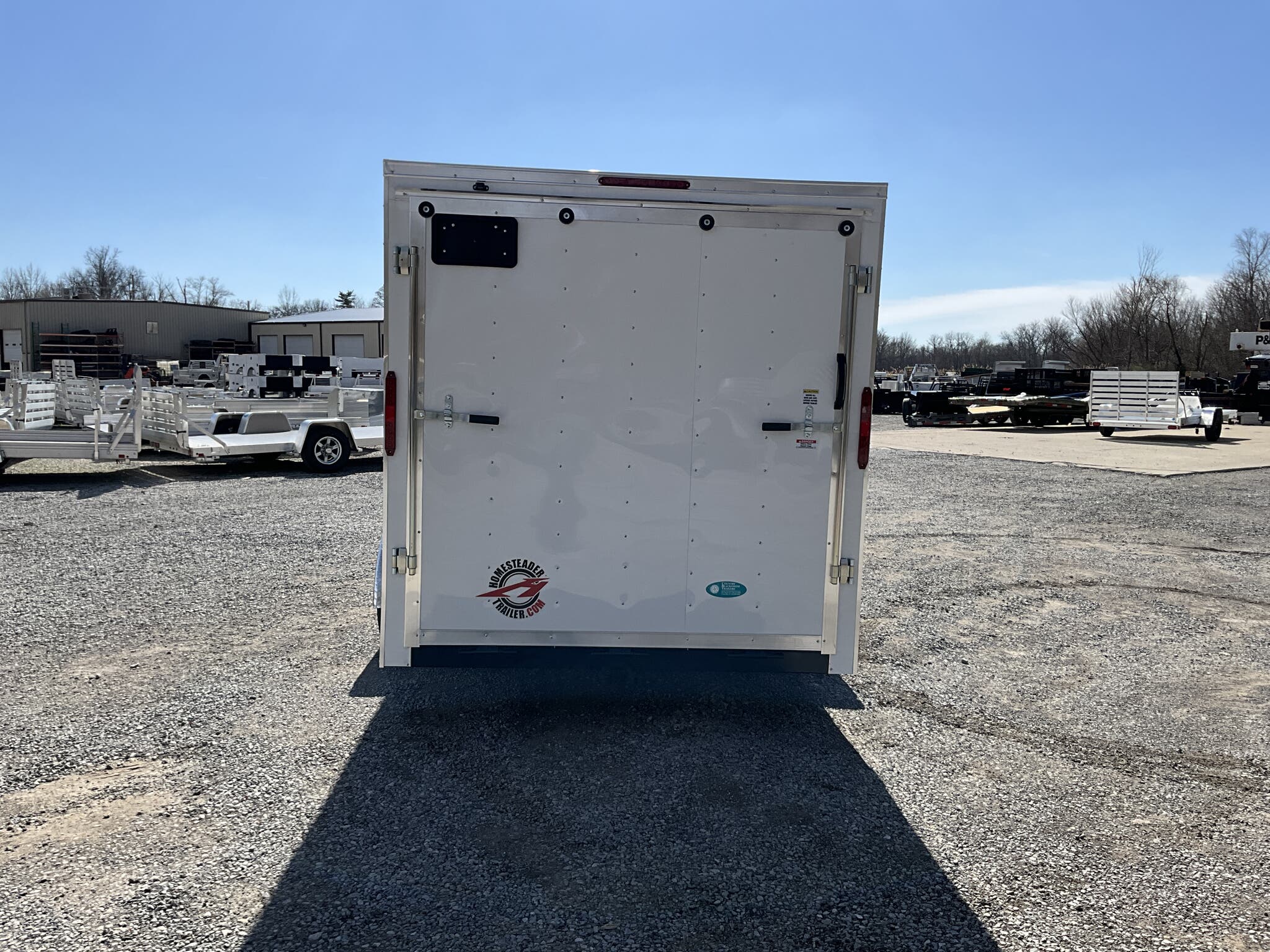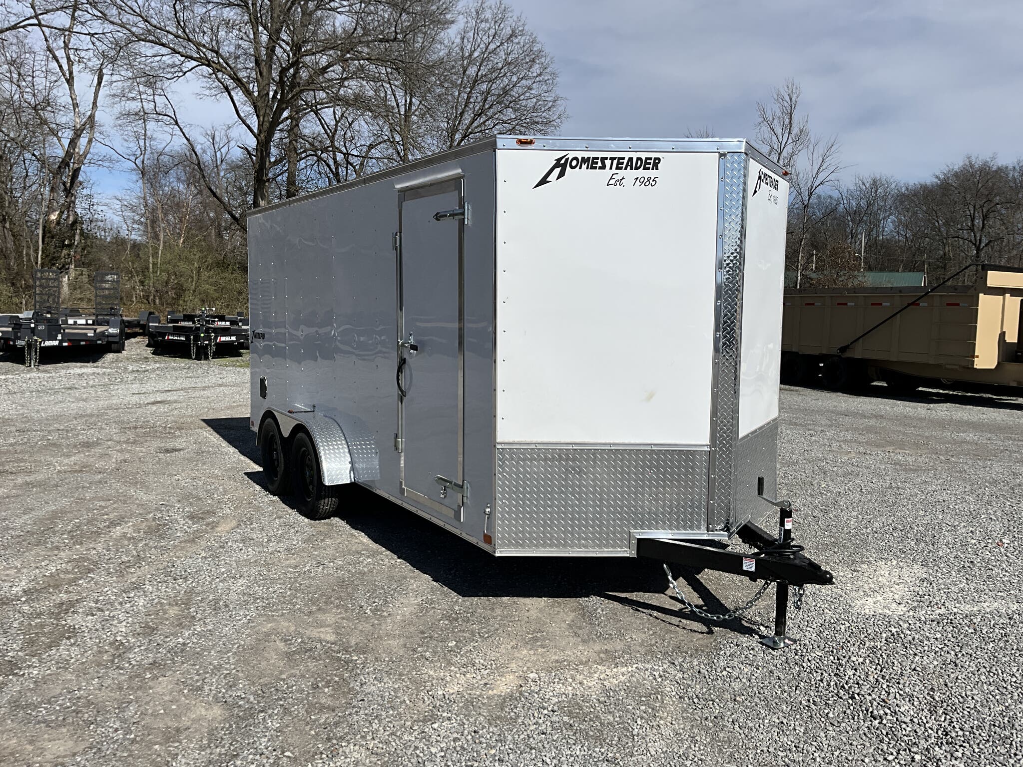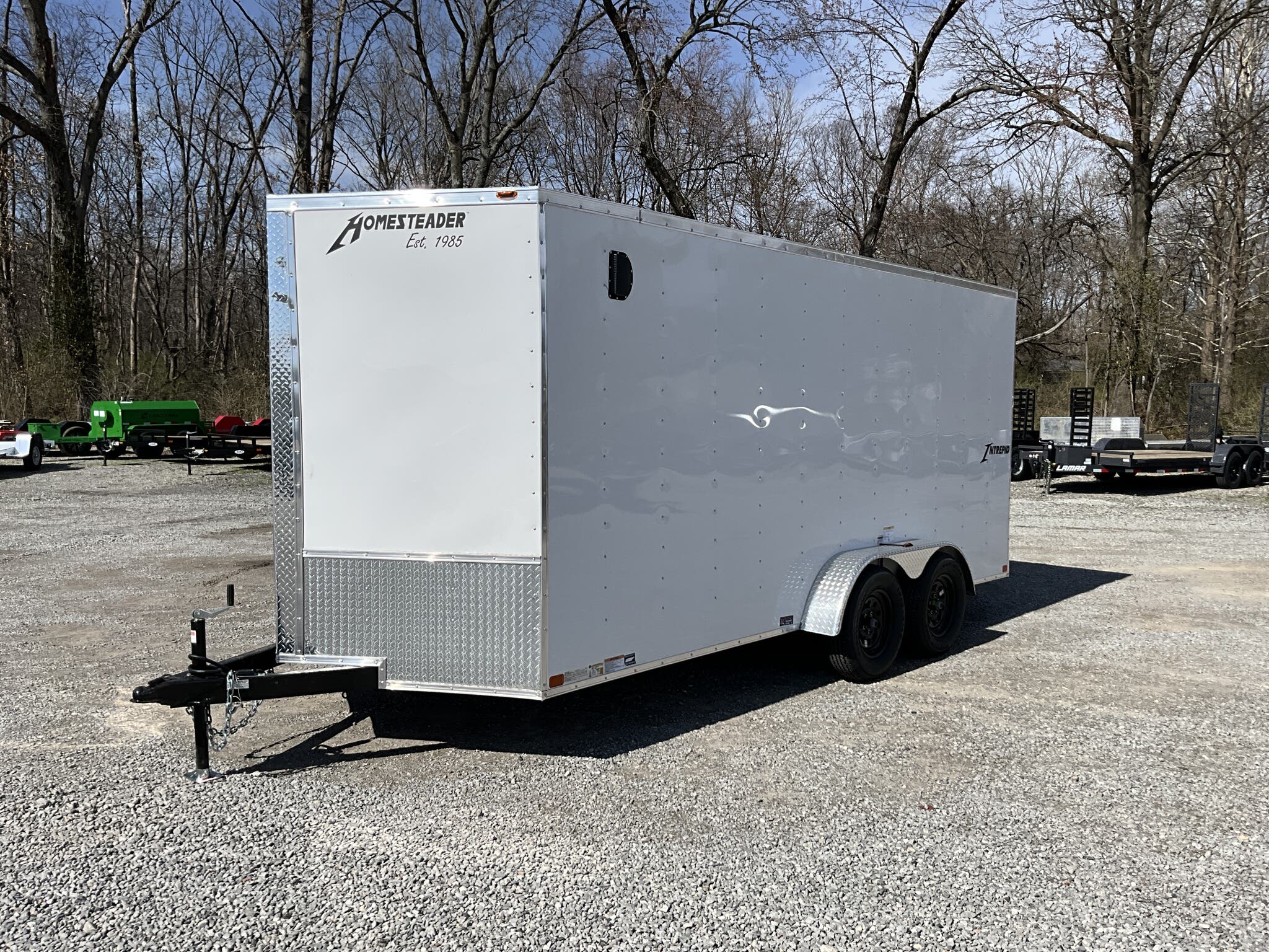2026 HOMESTEADER INTREPID 7' 16' 6'6" TALL ENCLOSED CARGO TRAILER, WHITE .030 ALUMINUM, REAR RAMP DOOR FOR SALE IN MOUNT VERNON, IL 62864 Feature: Rear ramp door with ramp package for easy loading of motorcycles, ATVs, and equipment Feature: 6'6" interior height for increased cargo clearance Feature: (4) recessed floor D rings for secure cargo tie down Feature: V nose front with aluminum treadplate stoneguard Feature: LED exterior lighting package Specs Model: 716IT Intrepid Specs Size: 7' 16' Specs Exterior: White .030 aluminum exterior with aluminum treadplate stoneguard Specs Interior Height: 6'6" interior clearance Specs Axles/Brakes: (2) 3,500 lb spring mounted EZ Lube axles with electric brakes Specs Suspension: Multi leaf spring suspension Specs Frame: Tube steel frame with floor crossmembers and wall posts 16" O.C. Specs Roof: One piece aluminum roof with tubular roof bows Specs Floor/Walls: 3/4" exterior grade plywood floor; 3/8" plywood sidewalls Specs Doors: Rear ramp door Specs Lighting: LED exterior lighting package Specs Coupler: Adjustable 2 5/16" coupler Specs Jack: Top wind tongue jack Specs Certification: NATM compliant Specs Warranty: 3 year Homesteader structural warranty Weights & Capacities GVWR: 7,000 lb Empty Weight: 2,580 lb Payload on Axles: 7,000 2,580 = 4,420 lb Target Tongue Load (10% of GVWR): 700 lb Total Effective Payload: 5,120 lb Delivery from 62864 (Lower 48) Up to 100 miles $150 101 300 miles $2.00/mile 301 1200 miles $3.00/mile Over 1200 miles $4.00/mile