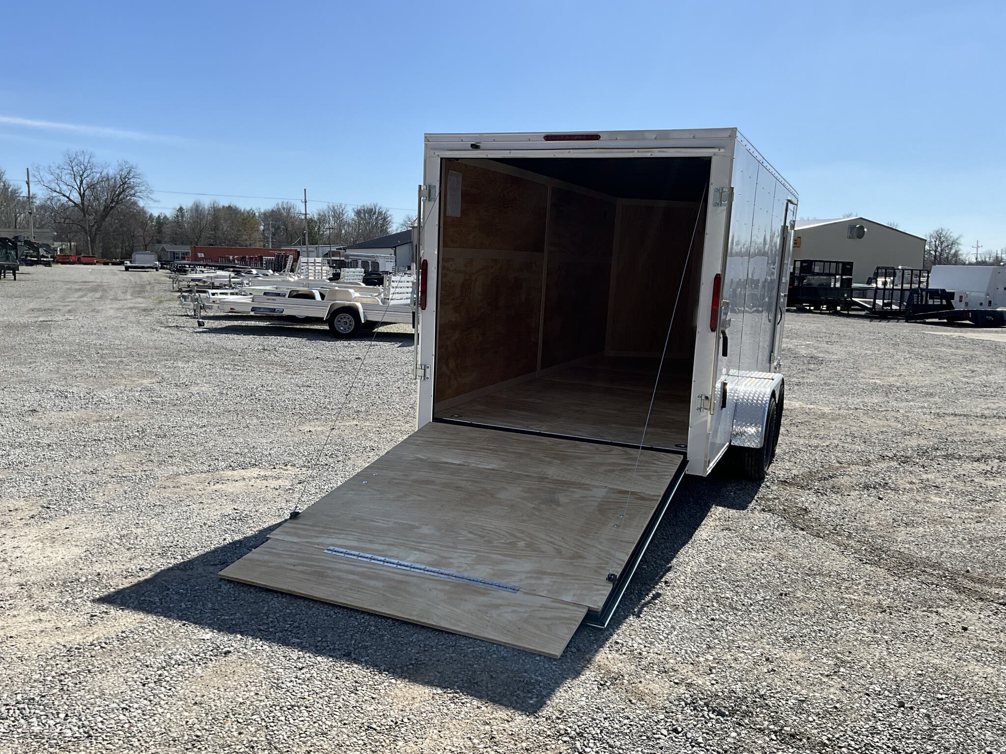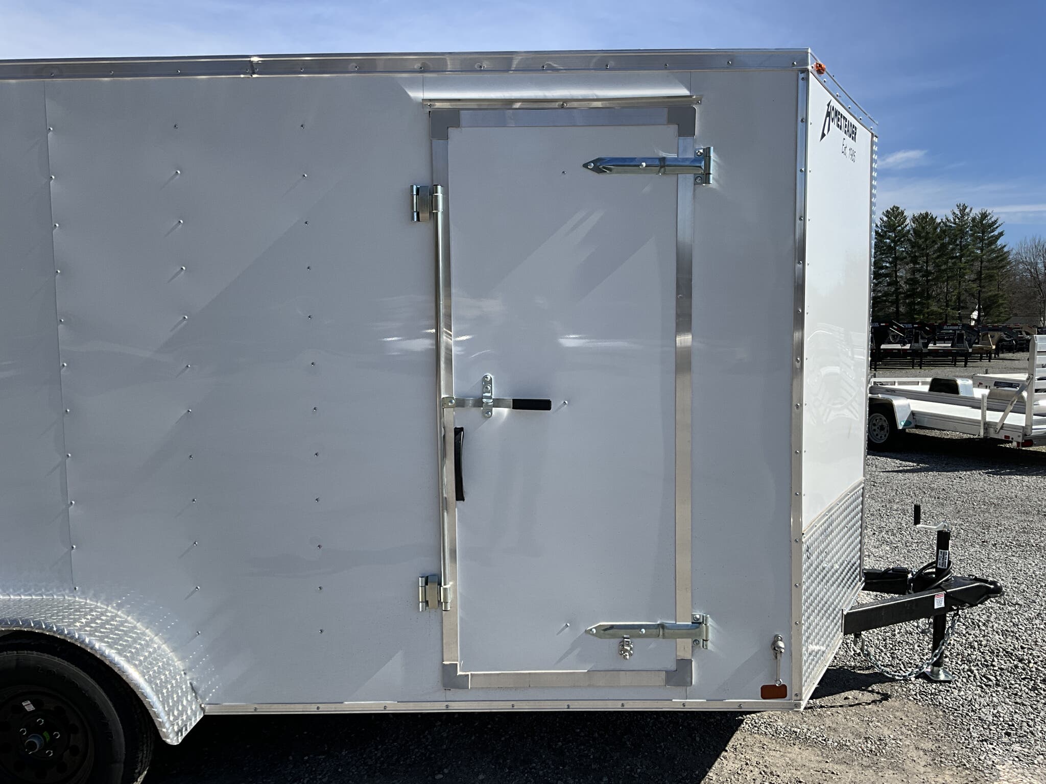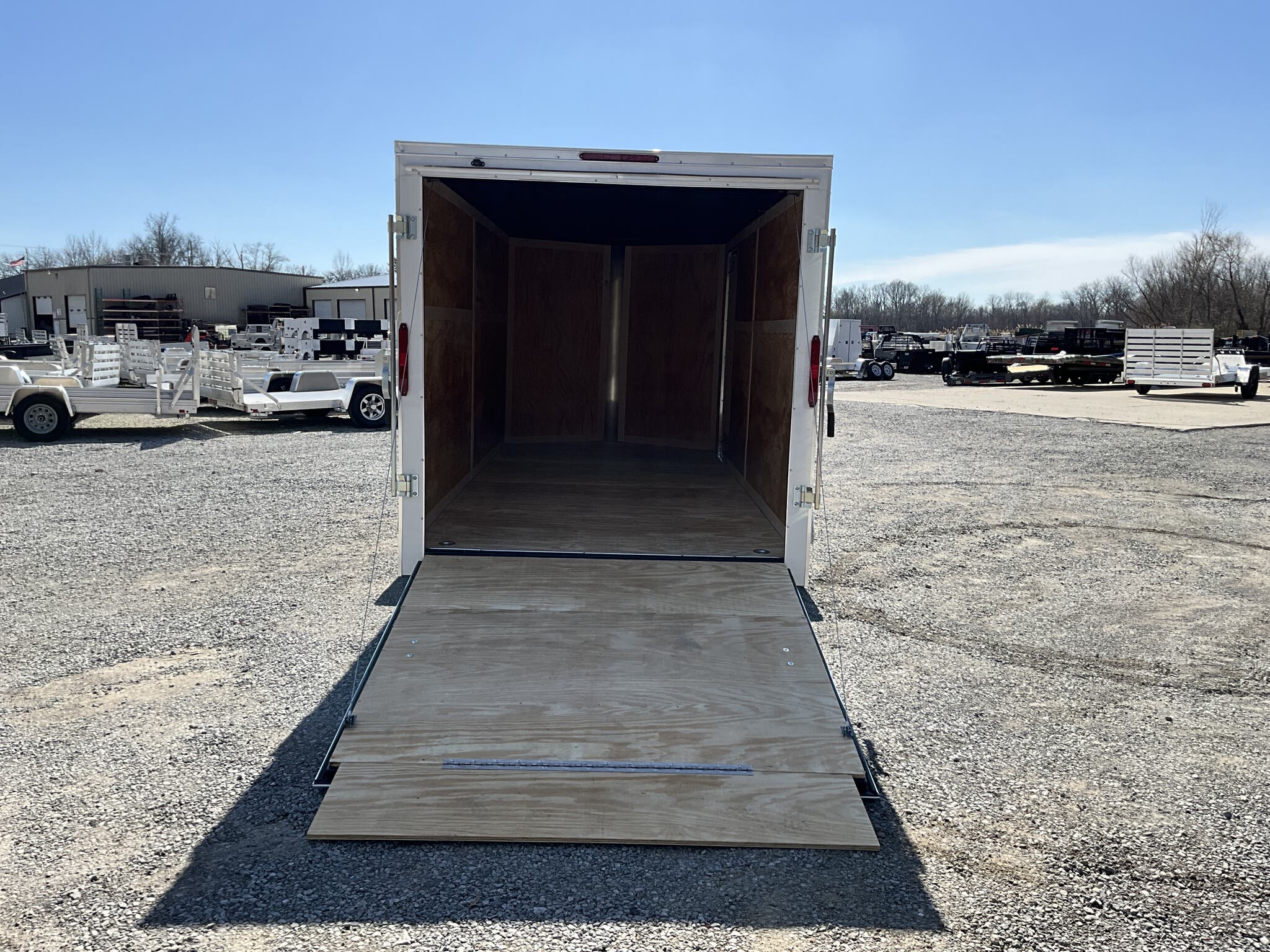 2026 HOMESTEADER INTREPID 7' 16' 6'6" TALL ENCLOSED CARGO TRAILER, WHITE .030 ALUMINUM, REAR RAMP DOOR FOR SALE IN MOUNT VERNON, IL 62864 Feature: Rear ramp door with ramp package for easy loading of motorcycles, ATVs, and equipment Feature: 6'6" interior height for increased cargo clearance Feature: (4) recessed floor D rings for secure cargo tie down Feature: V nose front with aluminum treadplate stoneguard Feature: LED exterior lighting package Specs Model: 716IT Intrepid Specs Size: 7' 16' Specs Exterior: White .030 aluminum exterior with aluminum treadplate stoneguard Specs Interior Height: 6'6" interior clearance Specs Axles/Brakes: (2) 3,500 lb spring mounted EZ Lube axles with electric brakes Specs Suspension: Multi leaf spring suspension Specs Frame: Tube steel frame with floor crossmembers and wall posts 16" O.C. Specs Roof: One piece aluminum roof with tubular roof bows Specs Floor/Walls: 3/4" exterior grade plywood floor; 3/8" plywood sidewalls Specs Doors: Rear ramp door Specs Lighting: LED exterior lighting package Specs Coupler: Adjustable 2 5/16" coupler Specs Jack: Top wind tongue jack Specs Certification: NATM compliant Specs Warranty: 3 year Homesteader structural warranty Weights & Capacities GVWR: 7,000 lb Empty Weight: 2,580 lb Payload on Axles: 7,000 2,580 = 4,420 lb Target Tongue Load (10% of GVWR): 700 lb Total Effective Payload: 5,120 lb Delivery from 62864 (Lower 48) Up to 100 miles $150 101 300 miles $2.00/mile 301 1200 miles $3.00/mile Over 1200 miles $4.00/mile