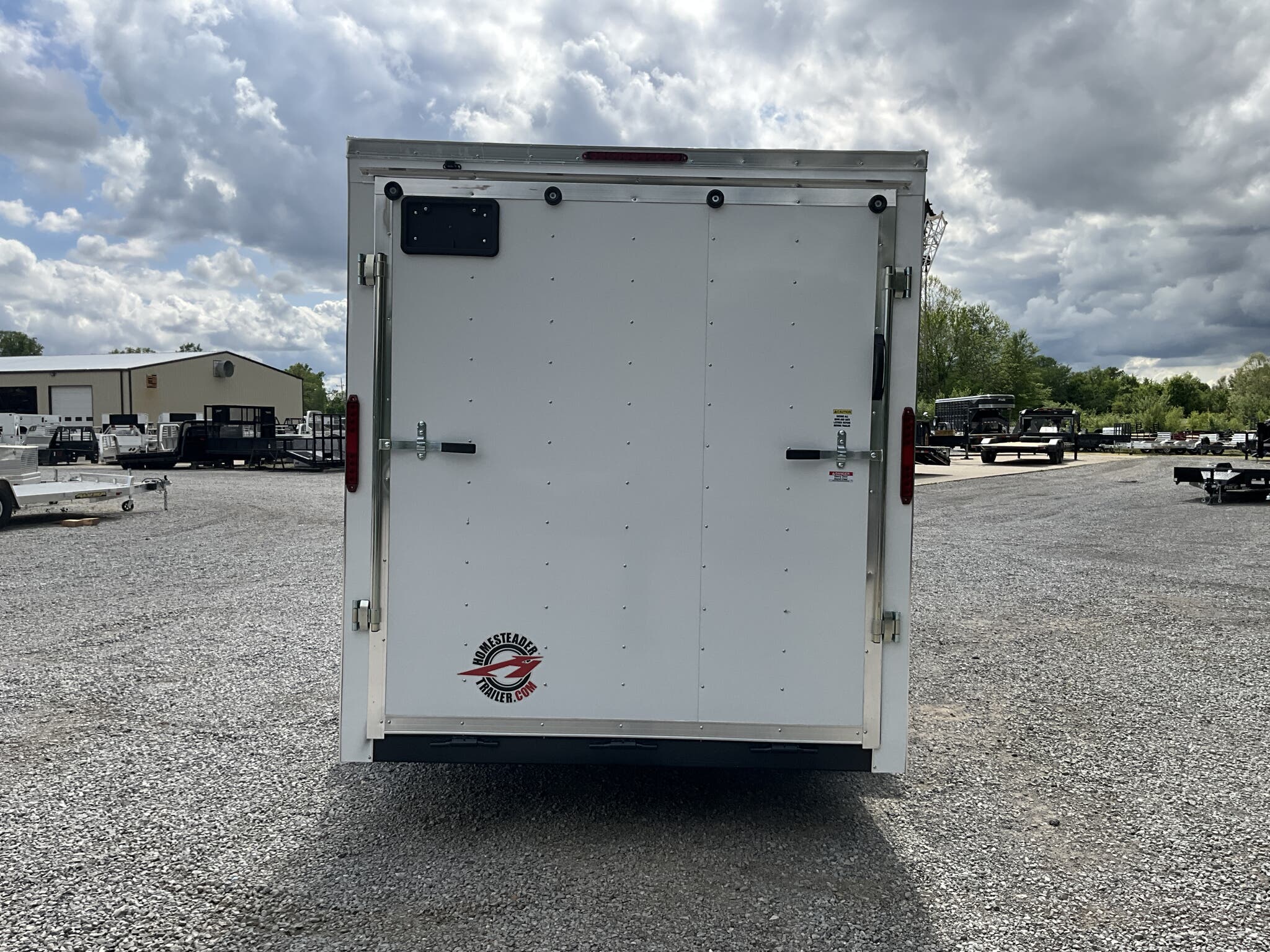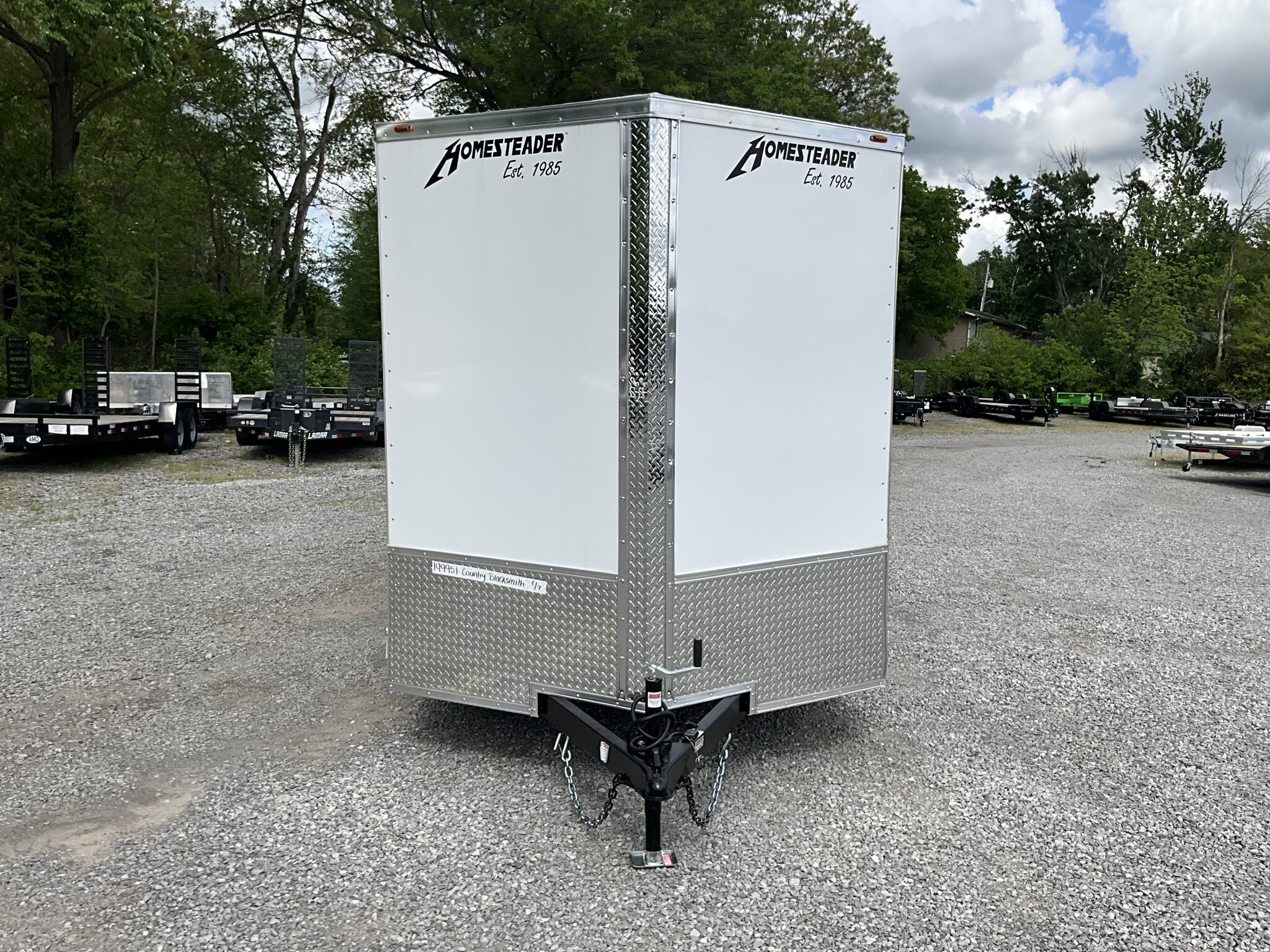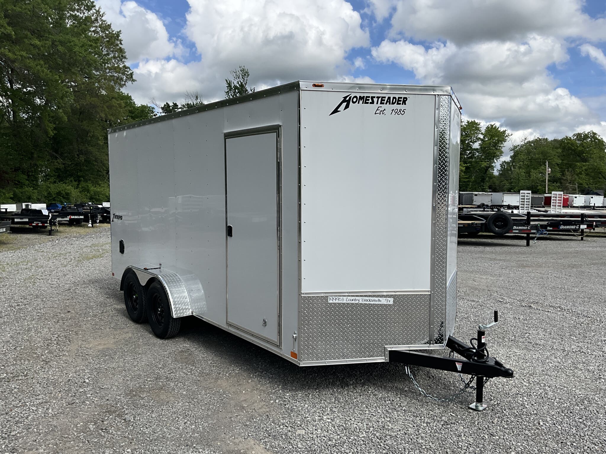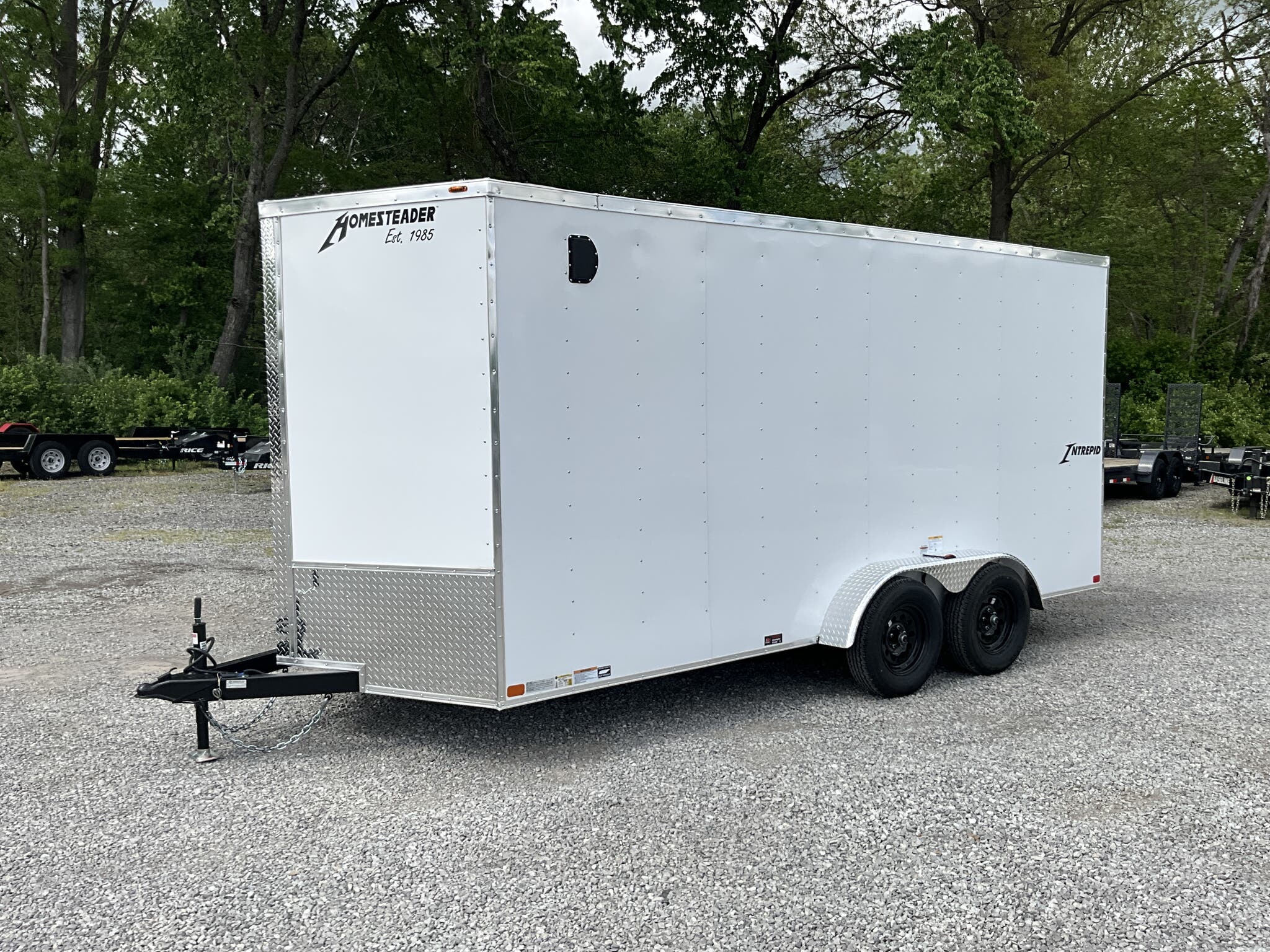 2026 HOMESTEADER INTREPID 7' 16' 7' TALL ENCLOSED CARGO TRAILER, WHITE .030 ALUMINUM, REAR RAMP DOOR FOR SALE IN MOUNT VERNON, IL 62864 Feature: Rear ramp door with ramp package for easy loading of equipment and motorcycles Feature: 36" bonded side door with flush lock Feature: Triple tube tongue upgrade for added strength and stability Feature: (4) recessed floor D rings for secure cargo tie down Feature: (4) LED interior dome lights with wall switch Specs Model: 716IT Intrepid Specs Size: 7' 16' Specs Exterior: White .030 aluminum exterior with aluminum treadplate stoneguard Specs Interior Height: 7' tall interior clearance Specs Axles/Brakes: (2) 3,500 lb spring mounted EZ Lube axles with electric brakes Specs Suspension: Multi leaf spring suspension Specs Frame: Tube steel frame with floor crossmembers and wall posts 16" O.C. Specs Roof: One piece aluminum roof with tubular roof bows Specs Floor/Walls: 3/4" exterior grade plywood floor; 3/8" plywood sidewalls Specs Doors: Rear ramp door with ramp package; 36" bonded side door with flush lock Specs Lighting: LED exterior lighting package; (4) LED interior dome lights with wall switch Specs Coupler: Adjustable 2 5/16" coupler Specs Jack: Top wind tongue jack Specs Certification: NATM compliant Specs Warranty: 3 year Homesteader structural warranty Weights & Capacities GVWR: 7,000 lb Empty Weight: 2,580 lb Payload on Axles: 7,000 2,580 = 4,420 lb Target Tongue Load (10% of GVWR): 700 lb Total Effective Payload: 5,120 lb Delivery from 62864 (Lower 48) Up to 100 miles $150 101 300 miles $2.00/mile 301 1200 miles $3.00/mile Over 1200 miles $4.00/mile
