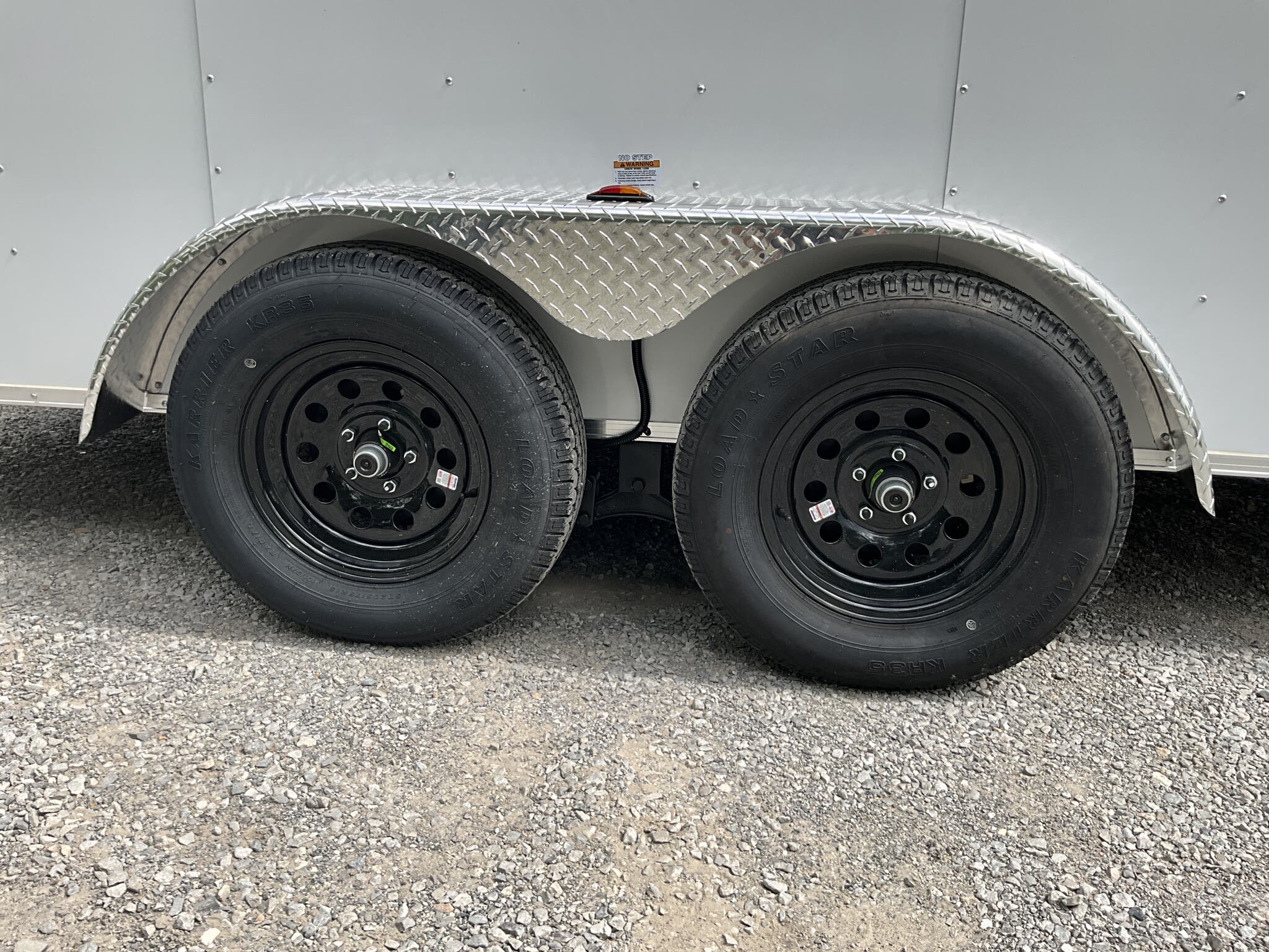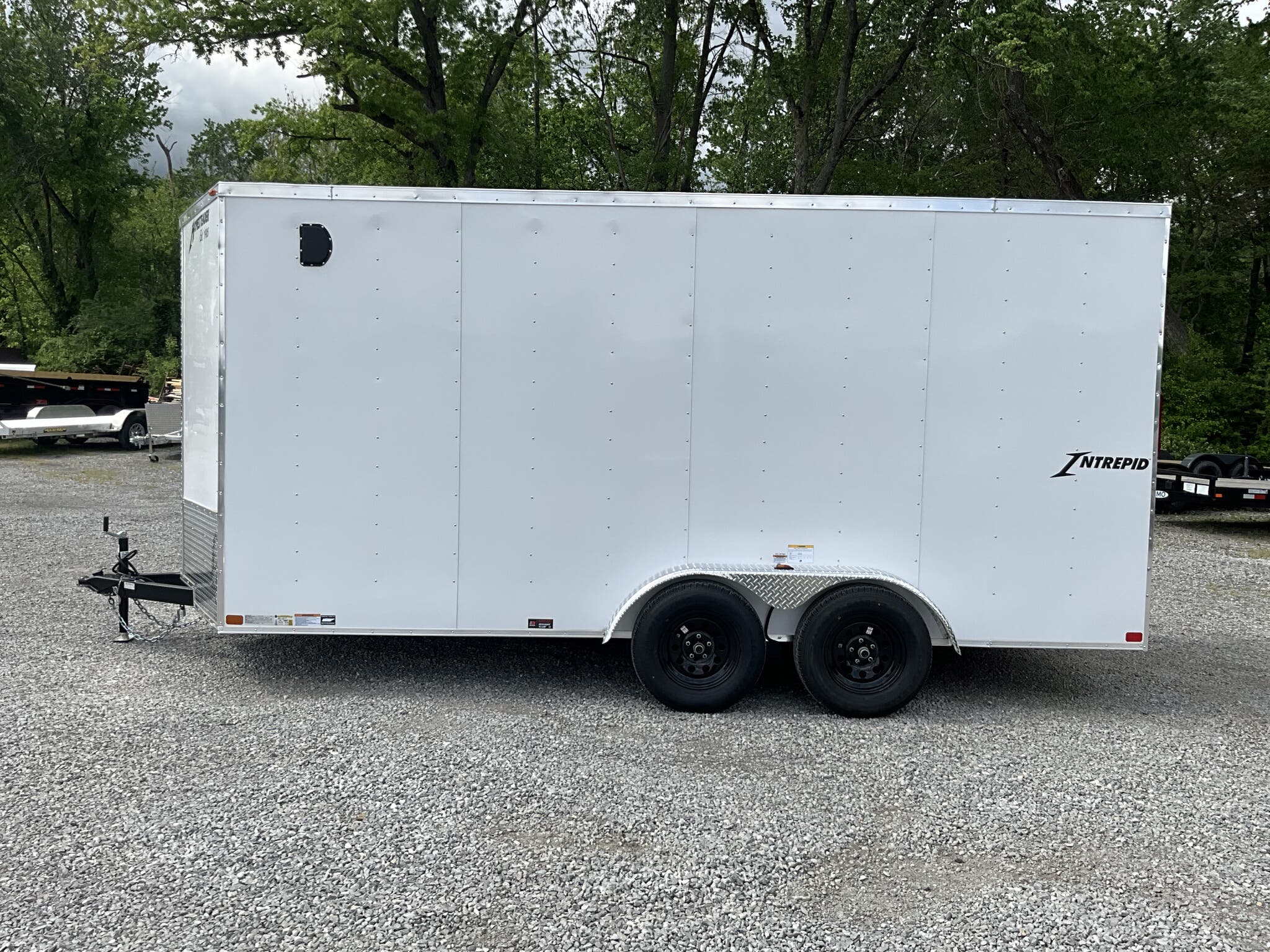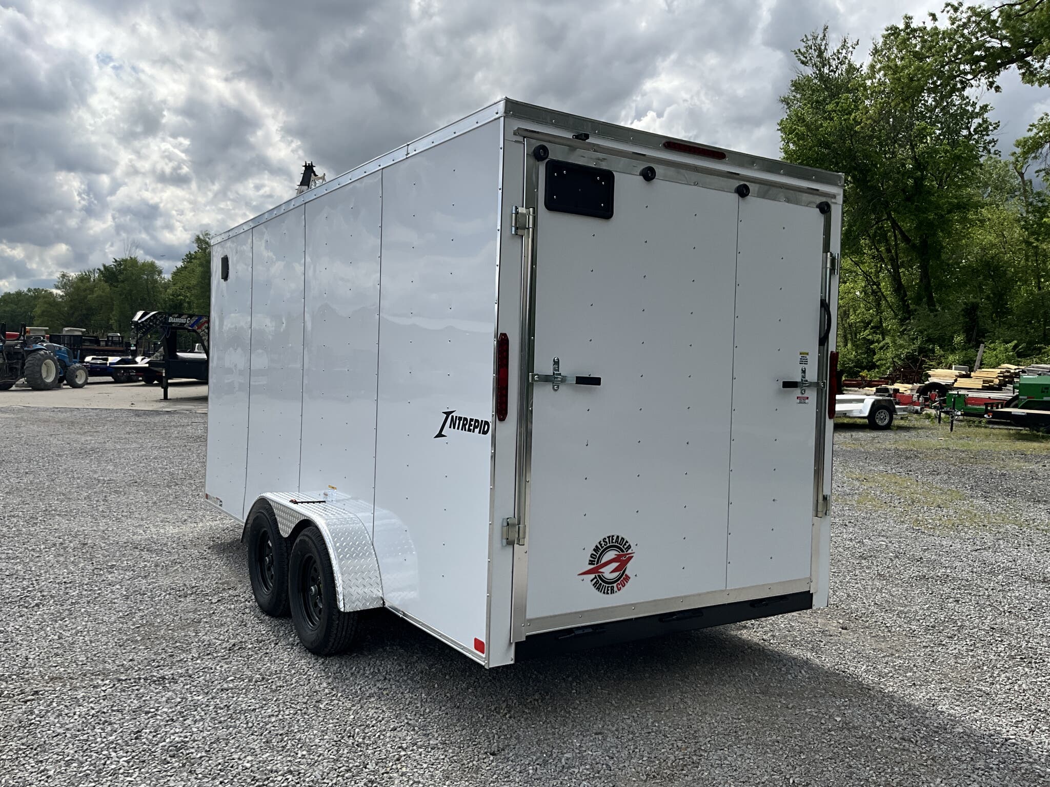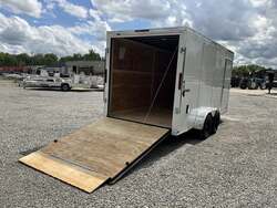 2026 HOMESTEADER INTREPID 7' 16' 7' TALL ENCLOSED CARGO TRAILER, WHITE .030 ALUMINUM, REAR RAMP DOOR FOR SALE IN MOUNT VERNON, IL 62864 Feature: Rear ramp door with ramp package for easy loading of equipment and motorcycles Feature: 36" bonded side door with flush lock Feature: Triple tube tongue upgrade for added strength and stability Feature: (4) recessed floor D rings for secure cargo tie down Feature: (4) LED interior dome lights with wall switch Specs Model: 716IT Intrepid Specs Size: 7' 16' Specs Exterior: White .030 aluminum exterior with aluminum treadplate stoneguard Specs Interior Height: 7' tall interior clearance Specs Axles/Brakes: (2) 3,500 lb spring mounted EZ Lube axles with electric brakes Specs Suspension: Multi leaf spring suspension Specs Frame: Tube steel frame with floor crossmembers and wall posts 16" O.C. Specs Roof: One piece aluminum roof with tubular roof bows Specs Floor/Walls: 3/4" exterior grade plywood floor; 3/8" plywood sidewalls Specs Doors: Rear ramp door with ramp package; 36" bonded side door with flush lock Specs Lighting: LED exterior lighting package; (4) LED interior dome lights with wall switch Specs Coupler: Adjustable 2 5/16" coupler Specs Jack: Top wind tongue jack Specs Certification: NATM compliant Specs Warranty: 3 year Homesteader structural warranty Weights & Capacities GVWR: 7,000 lb Empty Weight: 2,580 lb Payload on Axles: 7,000 2,580 = 4,420 lb Target Tongue Load (10% of GVWR): 700 lb Total Effective Payload: 5,120 lb Delivery from 62864 (Lower 48) Up to 100 miles $150 101 300 miles $2.00/mile 301 1200 miles $3.00/mile Over 1200 miles $4.00/mile