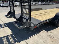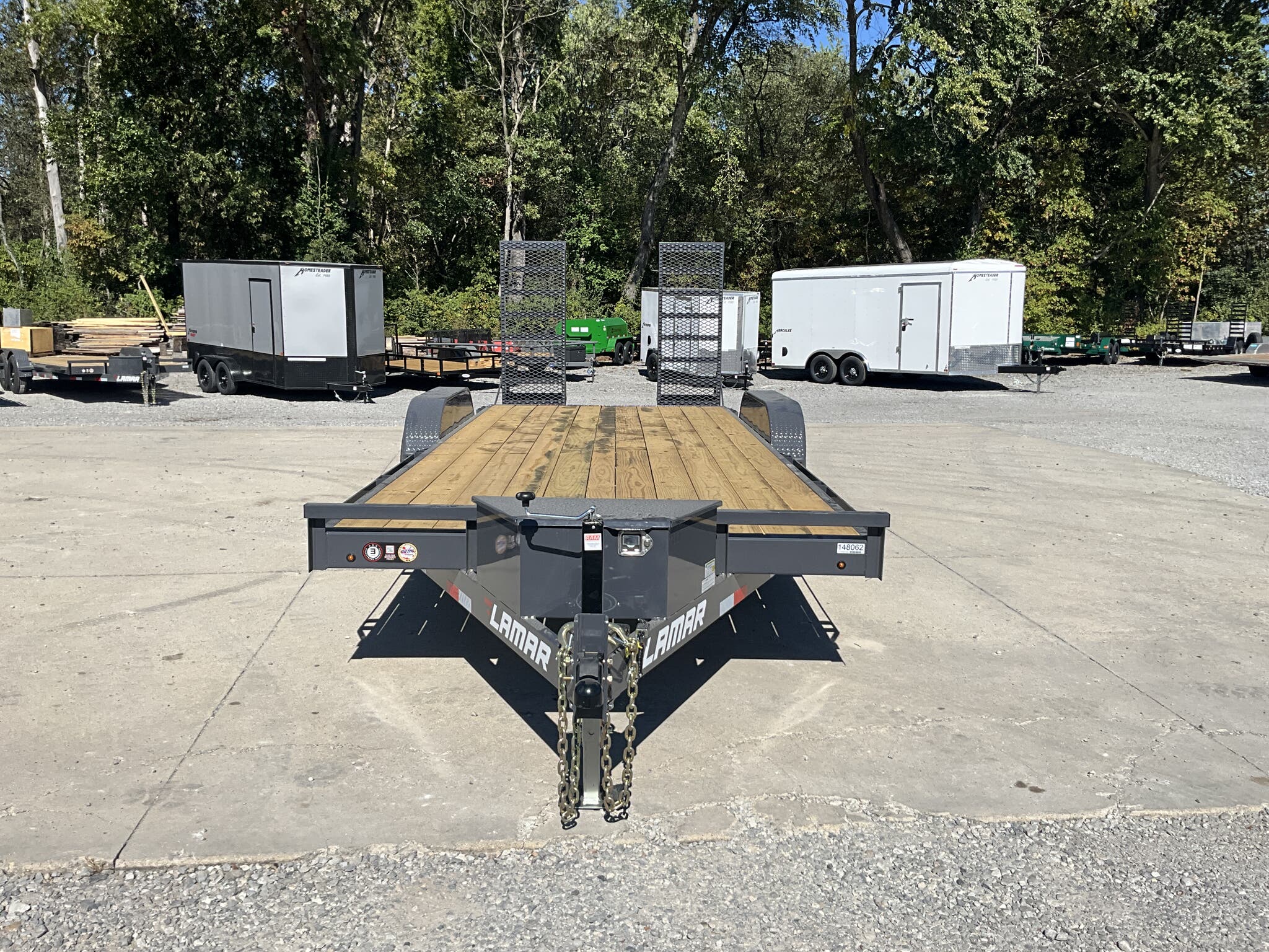2026 Lamar CC832025_571 83 20 Car Hauler Trailer 9,990 GVWR Lamar Gray For Sale in Illinois OVERVIEW: 2026 LAMAR 83 20 10K CAR HAULER TRAILER (MODEL CC832025_571) HEAVY DUTY BUMPER PULL CAR HAULER WITH 2 DOVETAIL AND 24 STAND UP RAMPS LAMAR GRAY POWDER COAT FINISH WITH WRAP TONGUE AND FRONT TOOL BOX SPECIFICATIONS: Model / VIN: CC832025 | 5RVBC2025TP148062 GVWR: 9,990 lbs Axles: (2) 5,200 lb EZ Lube electric brake spring axles Suspension: Multi leaf spring suspension Tires/Wheels: ST225/75R15 Load Range D 8 ply radials on black steel wheels Coupler: 2 5/16 Demco 21K adjustable cast coupler Jack: 7K drop leg jack Frame: 5 channel frame with 24 center to center crossmembers Tongue: Wrap around tongue with front steel tool box Deck/Floor: Treated yellow pine floor with 2 dovetail Ramps: Pair of 24 wide heavy duty stand up ramps Fenders: Round diamond plate teardrop fenders Tie Downs: Standard stake pockets and rub rail (no D rings installed) Lighting: Full LED lighting package Color: Lamar Gray powder coat finish WEIGHTS: Empty Weight: 2,265 lbs GVWR: 9,990 lbs Payload Capacity: 7,725 lbs Tongue Weight Capacity (10 % of GVWR Bumper Pull): 999 lbs Total Effective Payload: 8,724 lbs DELIVERY RATES FROM ZIP CODE 62864: Up to 100 miles $150 101 to 300 miles $2.00 per mile 301 to 1,200 miles $3.00 per mile Over 1,200 miles $4.00 per mile (Lower 48 states only)