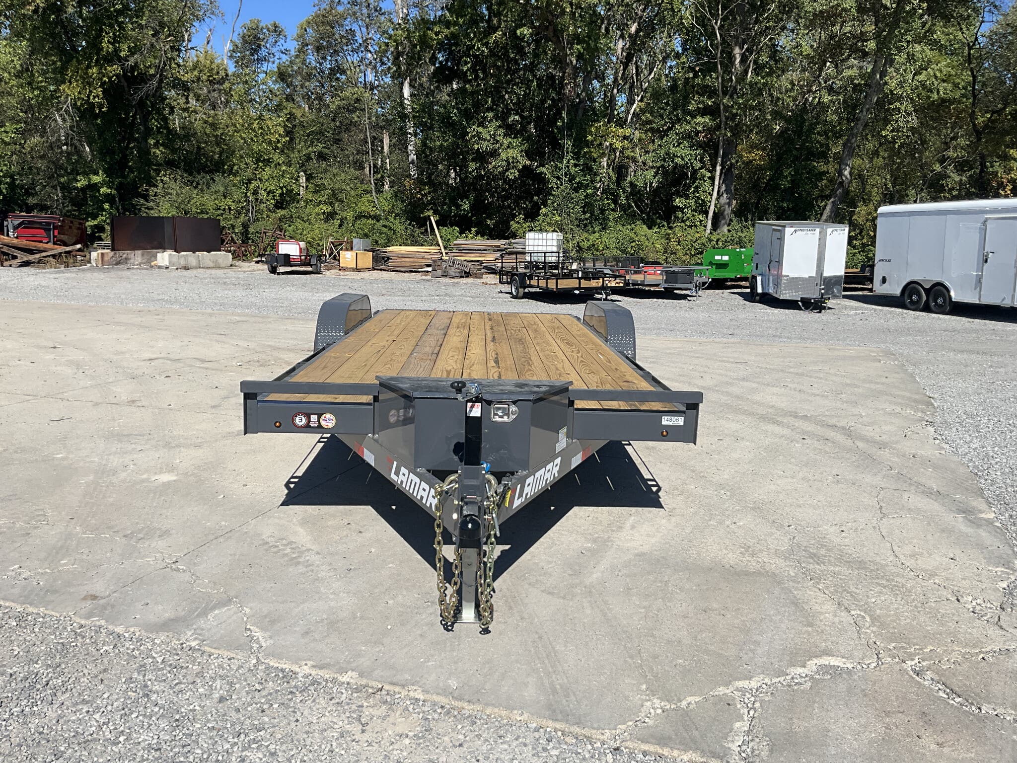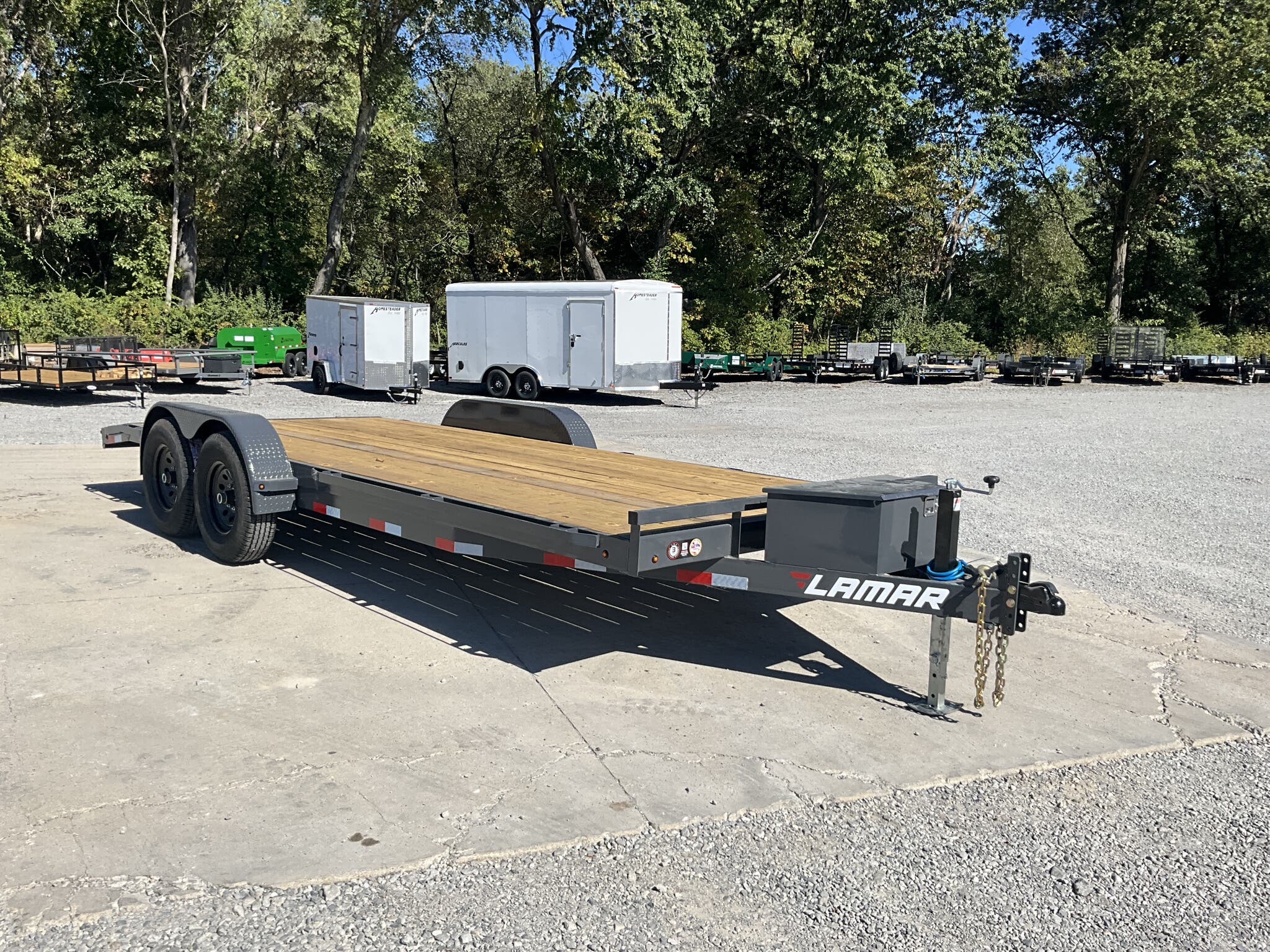 2026 Lamar CC832025_571 83 20 Car Hauler Trailer 9,990 GVWR Lamar Gray For Sale in Illinois OVERVIEW: 2026 LAMAR 83 20 10K CAR HAULER TRAILER (MODEL CC832025_571) HEAVY DUTY BUMPER PULL CAR HAULER WITH 2 DOVETAIL AND SLIDE IN RAMPS LAMAR GRAY POWDER COAT FINISH WITH WRAP TONGUE AND FRONT TOOLBOX SPECIFICATIONS: Model / VIN: CC832025 | 5RVBC2023TP148061 GVWR: 9,990 lbs Axles: (2) 5,200 lb EZ Lube electric brake spring axles Suspension: Multi leaf spring suspension Tires/Wheels: ST225/75R15 Load Range D 8 ply radial tires on black steel wheels Coupler: 2 5/16 Demco 21K adjustable cast coupler Jack: 7K drop leg jack Frame: 5 channel frame with 24 center to center crossmembers Tongue: Wrap around tongue with integrated front steel toolbox Deck/Floor: Treated yellow pine wood floor with 2 dovetail Ramps: Pair of heavy duty slide in ramps Fenders: Round diamond plate teardrop fenders Tie Downs: Standard stake pockets and rub rail (no D rings installed) Lighting: Full LED lighting package Color: Lamar Gray powder coat finish WEIGHTS: Empty Weight: 2,265 lbs GVWR: 9,990 lbs Payload Capacity: 7,725 lbs Tongue Weight Capacity (10 % of GVWR Bumper Pull): 999 lbs Total Effective Payload: 8,724 lbs DELIVERY RATES FROM ZIP CODE 62864: Up to 100 miles $150 101 to 300 miles $2.00 per mile 301 to 1,200 miles $3.00 per mile Over 1,200 miles $4.00 per mile (Lower 48 states only)