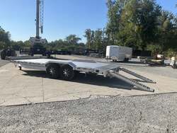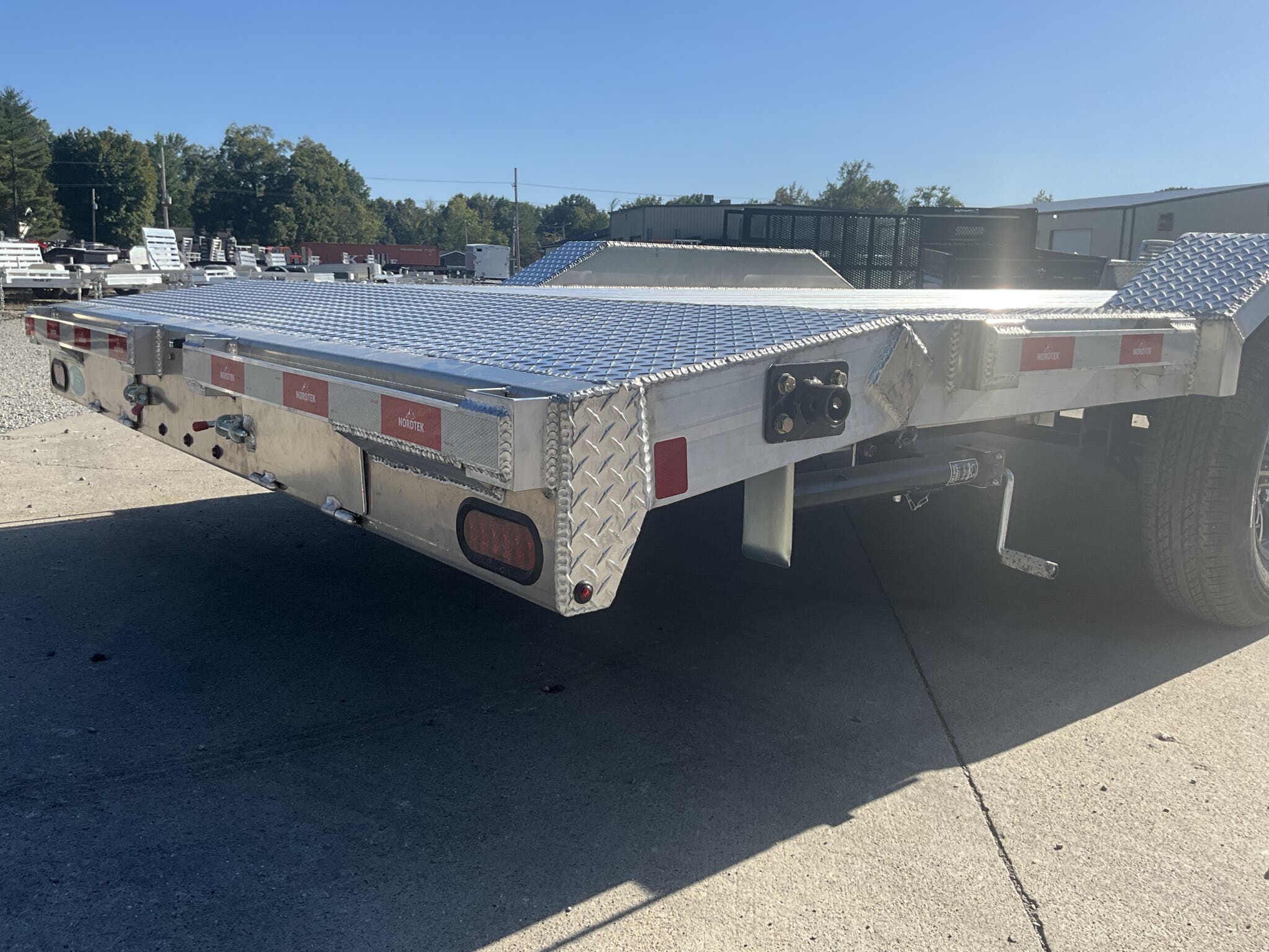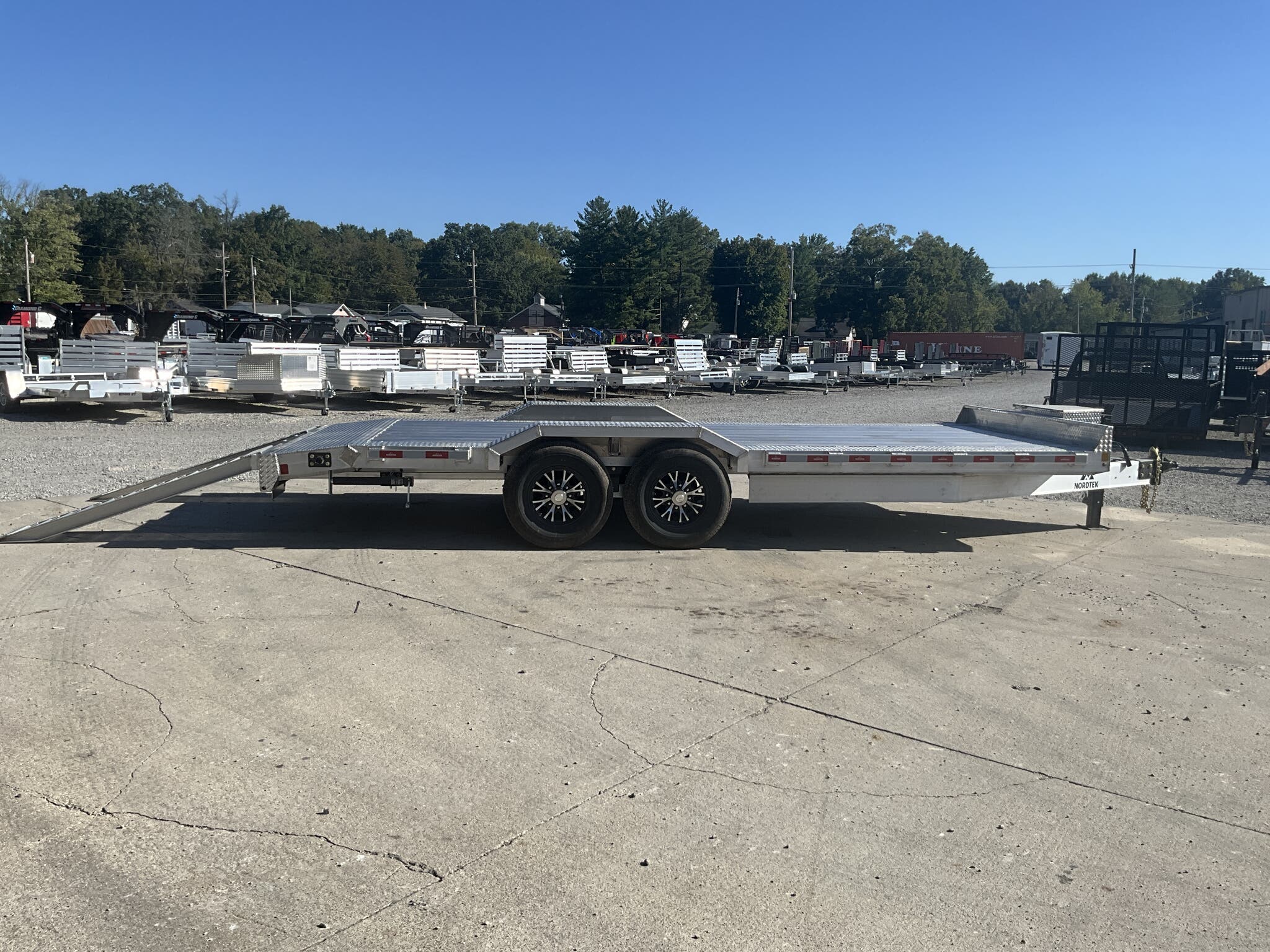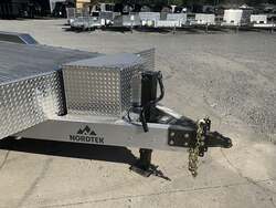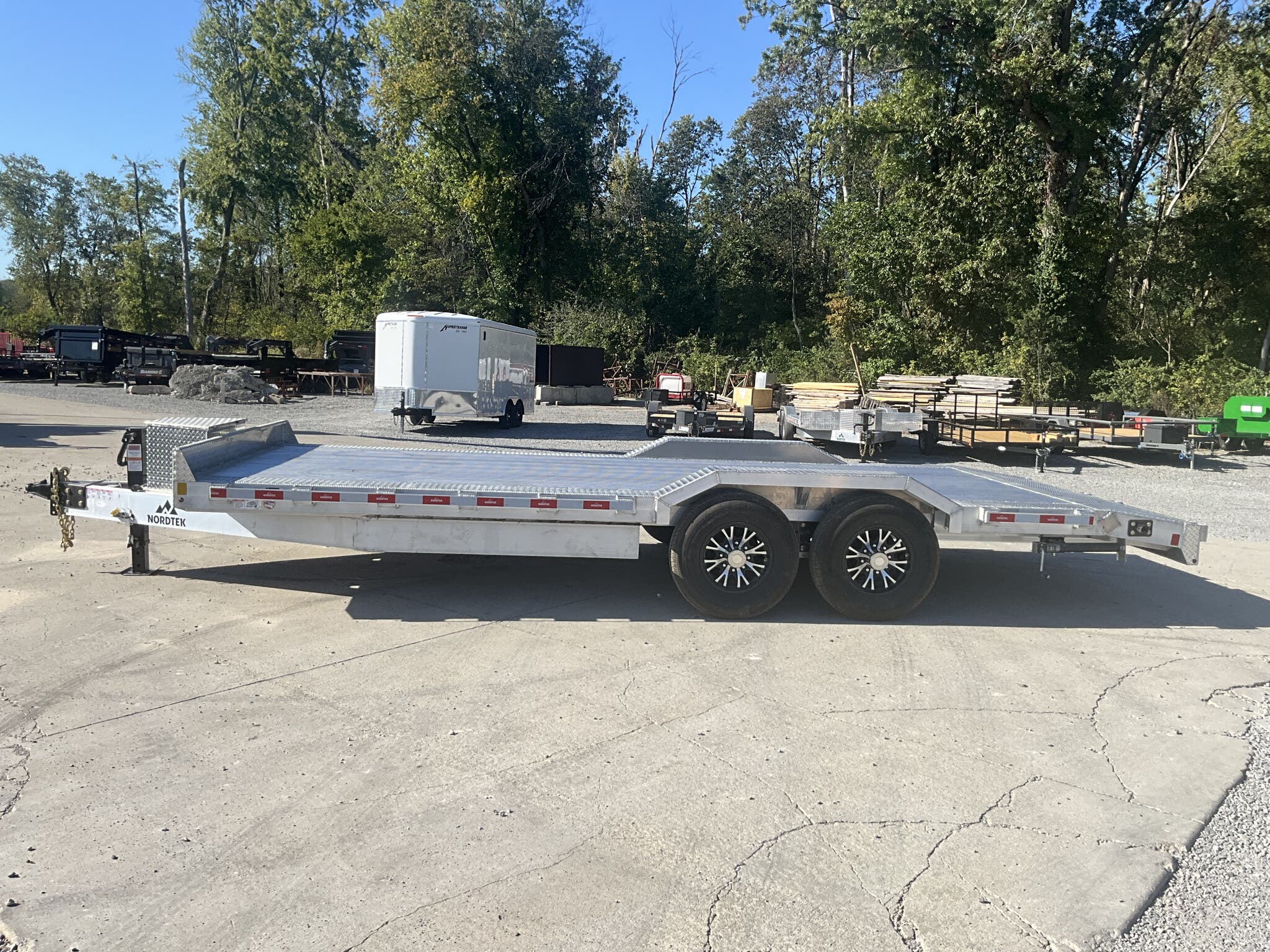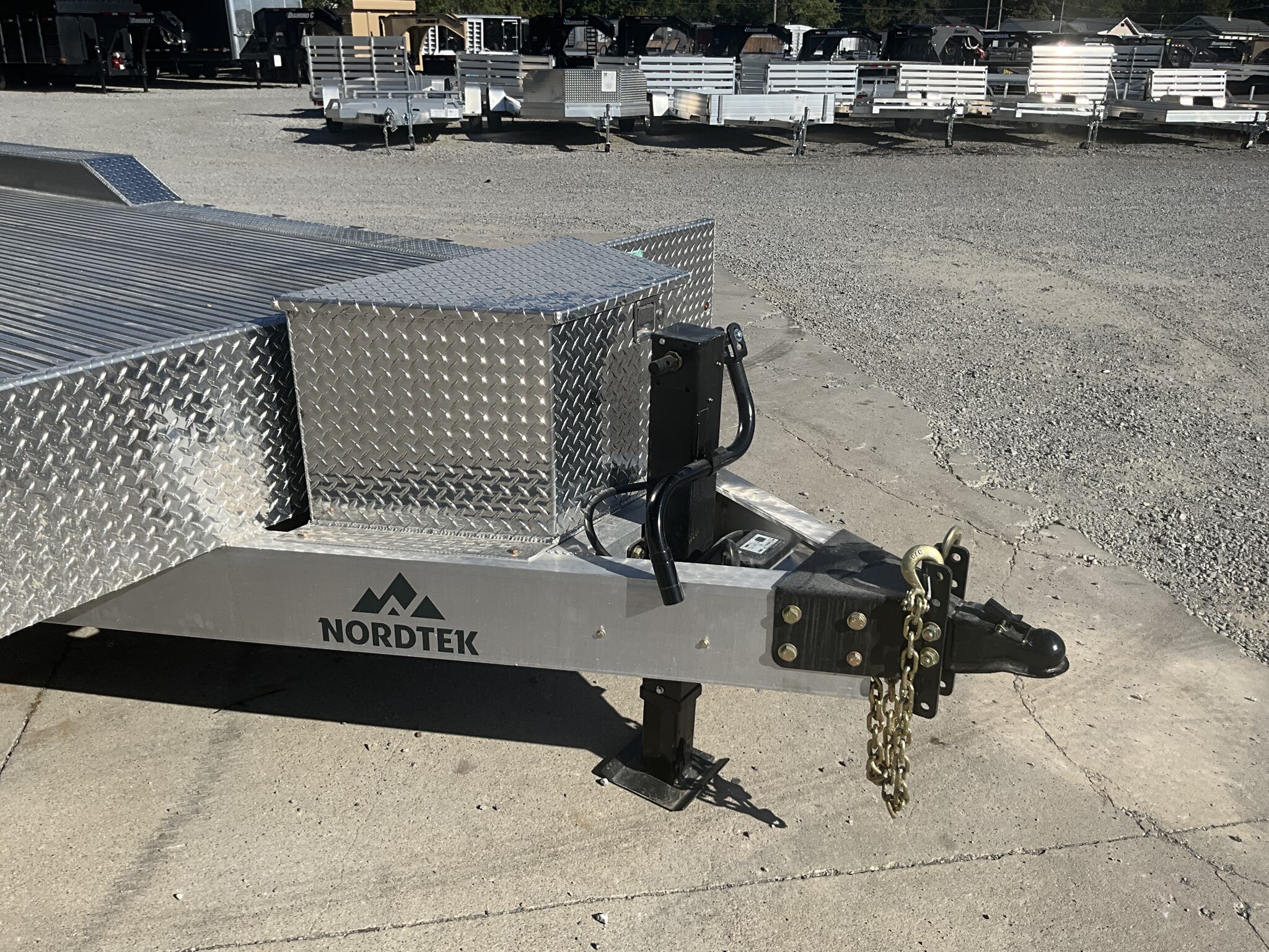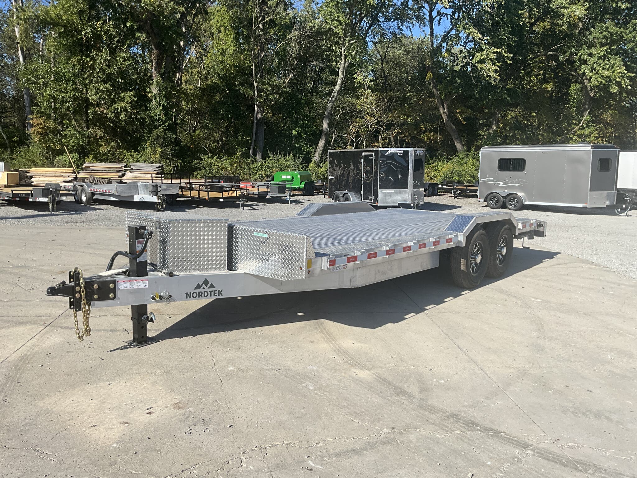 2026 Nordtek 102 20 Aluminum Car Hauler Trailer 14,000 GVWR For Sale in Illinois OVERVIEW: 2026 NORDTEK 102 WIDE ALUMINUM CAR HAULER TRAILER 20 LENGTH INCLUDING 2 DOVETAIL HEAVY DUTY 14K GVWR PACKAGE BUILT FOR COMMERCIAL CAR HAULING, LIGHT EQUIPMENT, AND HEAVIER VEHICLES ALL ALUMINUM CONSTRUCTION FOR MAXIMUM STRENGTH, RUST FREE PERFORMANCE, AND LONG TERM VALUE SPECIFICATIONS: Frame: 8 3 aluminum main frame with 16 on center crossmembers Deck: 102 wide extruded aluminum deck with integrated 2 dovetail Axles: (2) 7,000 lb spring axles with electric brakes Suspension: Multi leaf spring suspension GVWR: 14,000 lbs Tires/Wheels: ST235/80R16 14 ply radial tires on polished aluminum wheels + matching spare Coupler: 2 5/16 adjustable coupler Jack: 7K drop leg jack Ramps: Rear slide in loading ramps for vehicles or equipment Fenders: Heavy duty aluminum drive over fenders for wide vehicles Tongue: Extended aluminum tongue with integrated front toolbox Rub Rail & Stake Pockets: Rub rail with stake pockets along both sides Lighting: Full LED lighting package with sealed braided wiring harness Deck Material: Extruded aluminum deck for durability and traction Finish: Raw aluminum with polished trim Warranty: 5 year Nordtek structural warranty WEIGHTS: Empty Weight: 2,772 lbs GVWR: 14,000 lbs Payload Capacity: 11,228 lbs Tongue Weight Capacity (10 % of GVWR Bumper Pull): 1,400 lbs Total Effective Payload: 12,628 lbs DELIVERY RATES FROM ZIP CODE 62864: Up to 100 miles $150 101 to 300 miles $2.00 per mile 301 to 1,200 miles $3.00 per mile Over 1,200 miles $4.00 per mile (Lower 48 states only)