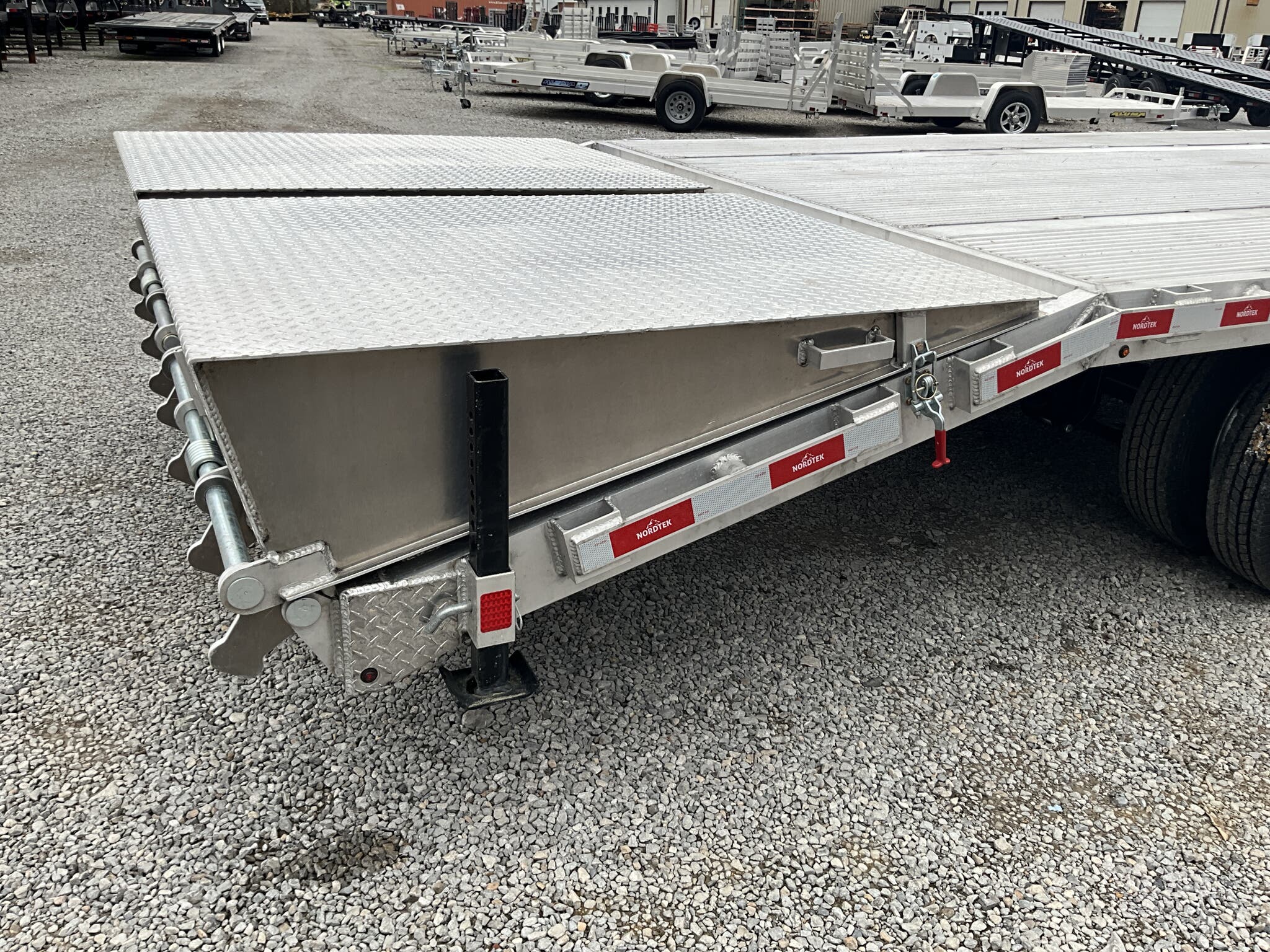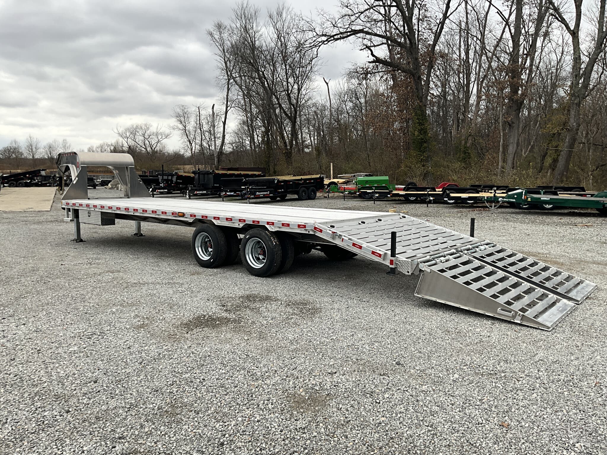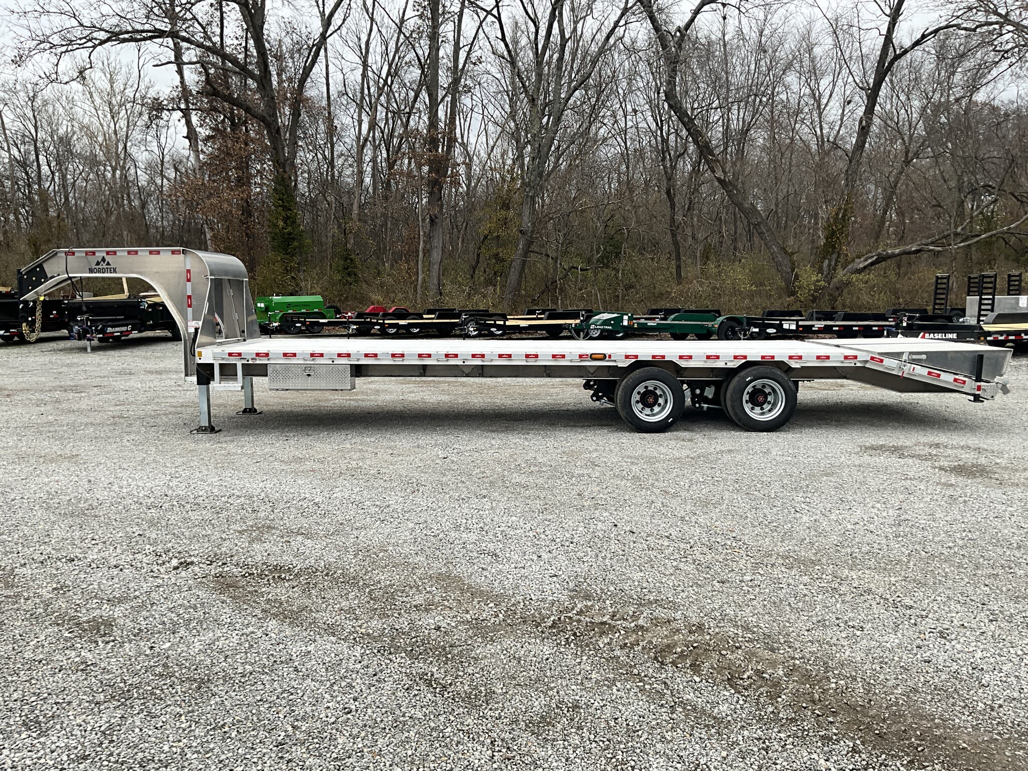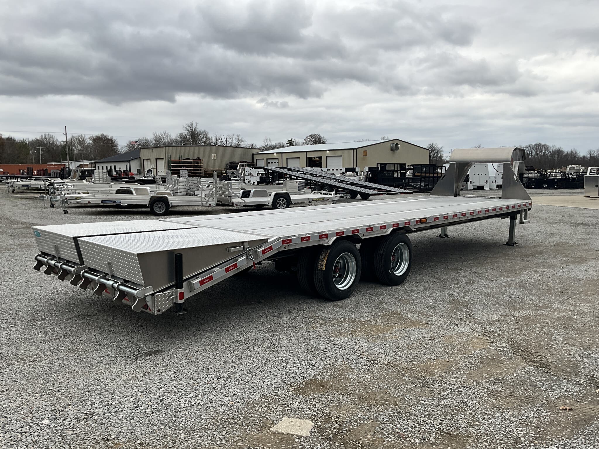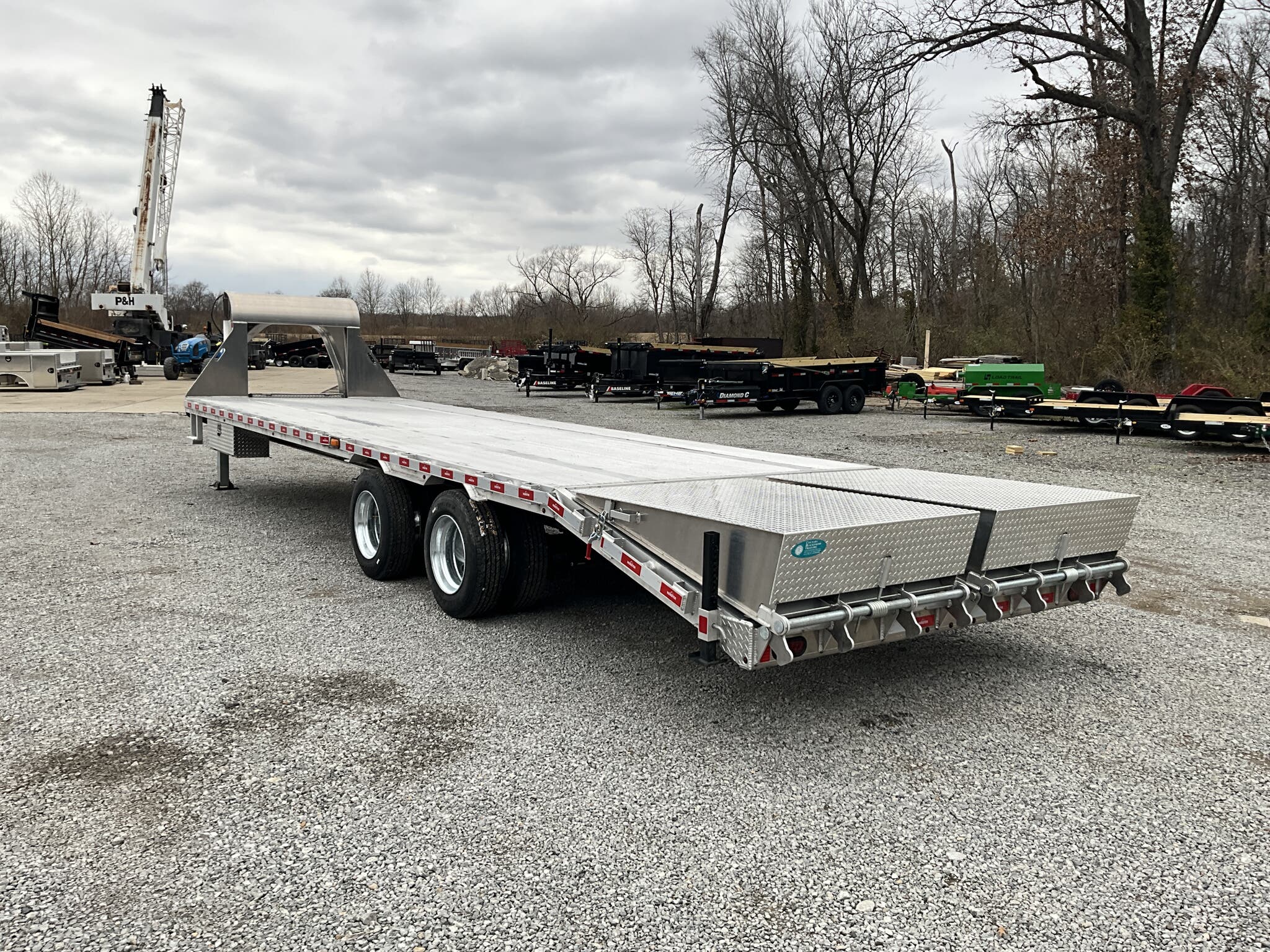2026 NORDTEK 25+5 Gooseneck Deckover 24,000 lb GVWR, 25' Flat + 5' Wedge Ramps, 102" Wide, 12" Fabricated Beam, Hydraulic Jacks, Extruded Aluminum Deck For Sale in Illinois Feature: 12" fabricated main frame & neck (heavy duty commercial build) Feature: Extruded aluminum decking (superior traction, lifetime durability) Feature: Hydraulic jacks (dual) Feature: 5' wedge ramps for low angle loading Feature: Hutch style suspension (fleet grade durability) Feature: Front gooseneck toolbox Feature: 8 extra LED marker lights (high visibility safety package) Feature: Pipe spools between stake pockets for professional tie down flexibility Specs Deck Size: 25' flat + 5' wedge tail (30' overall) Specs GVWR: 24,000 lb Specs Axles: Tandem 12K axles with hydraulic drum brakes Specs Suspension: Hutch style suspension Specs Wheels/Rims: 17.5" galvanized wheels, 8 on 275mm heavy bolt pattern Specs Tires: 17.5" commercial grade radials (load range per axle spec) Specs Frame: 12" fabricated I beam frame and neck Specs Crossmembers: 4" channel crossmembers on 16" centers Specs Rail/Tie Downs: 6" channel lace rail; 2.5" rub rail; pipe spools and 4" stake pockets down both sides Specs Decking: Extruded aluminum deck boards Specs Coupler: 2 5/16" adjustable gooseneck coupler Specs Jacks: Hydraulic dual jacks Specs Toolbox: Large front gooseneck toolbox Specs Lights/Wiring: Full LED lighting; 8 extra LED marker lights; braided wiring harness Specs Fenders: Checker plated wheel covers Specs Stands: Rear drop stands (both corners) Specs Step: Driver side front corner step Specs Spare: Removable spare tire mount Specs Warranty: Manufacturer limited warranty Weights & Capacities Total Axle Capacity: 24,000 lb Weights & Capacities Empty/Trailer Weight: 5,400 lb Weights & Capacities Payload on Axles: 24,000 5,400 = 18,600 lb Weights & Capacities Target Tongue Load (Gooseneck @ ~20%): 4,800 lb Weights & Capacities Total Payload Including Tongue Support: 18,600 + 4,800 = 23,400 lb Delivery from 62864 (Lower 48): Up to 100 miles: $150 101 300 miles: $2.00/mile 301 1200 miles: $3.00/mile Over 1200 miles: $4.00/mile