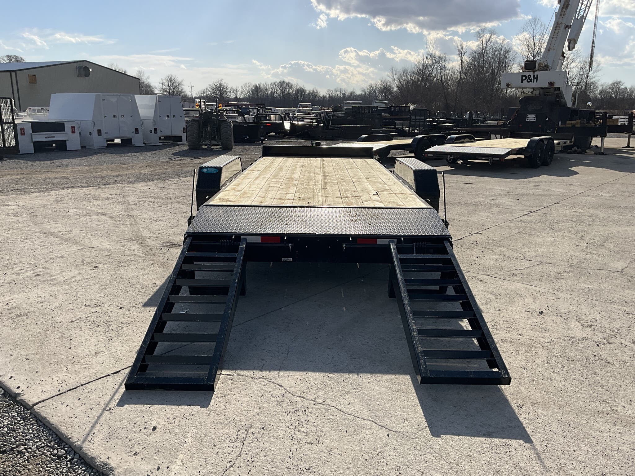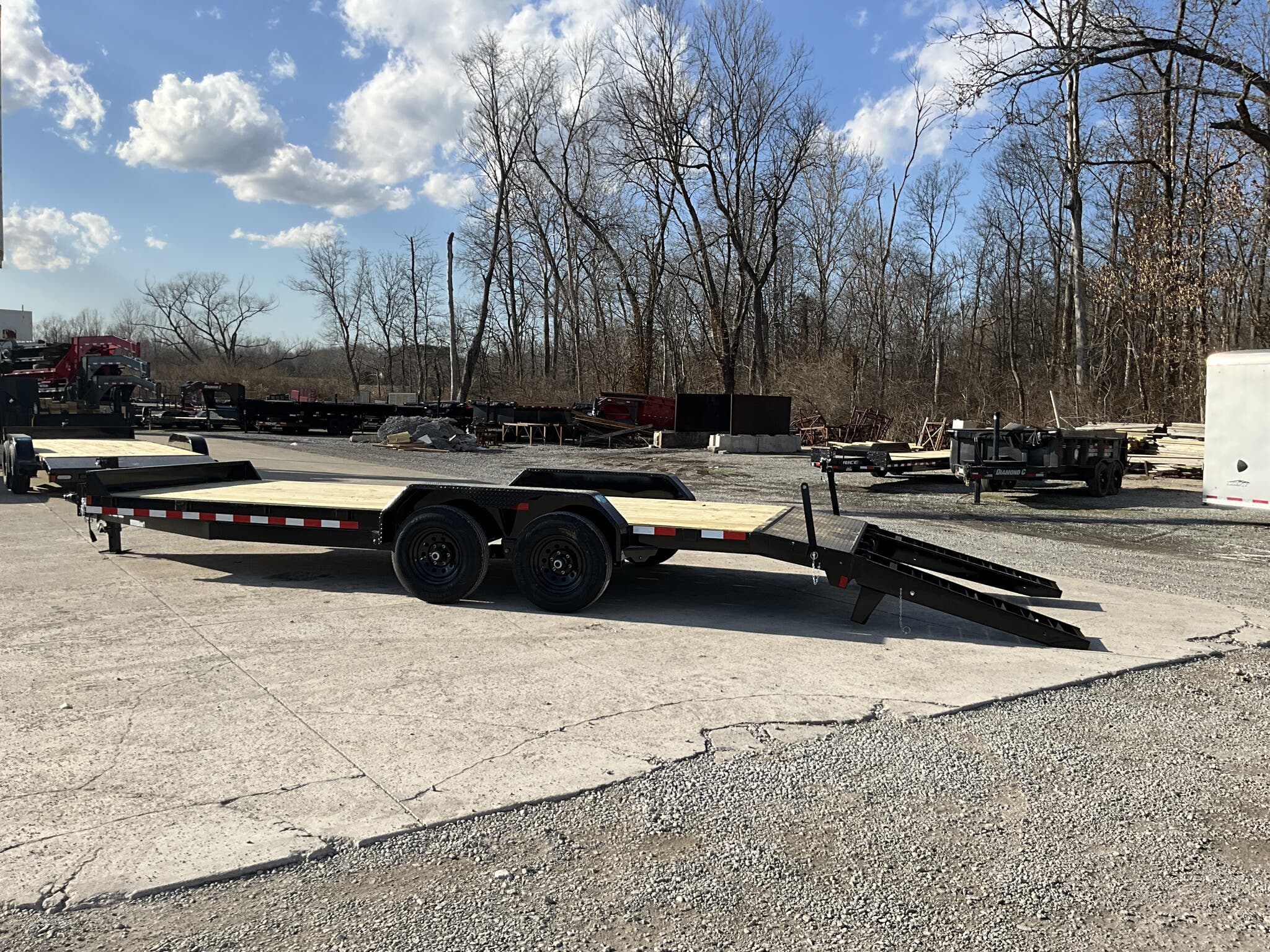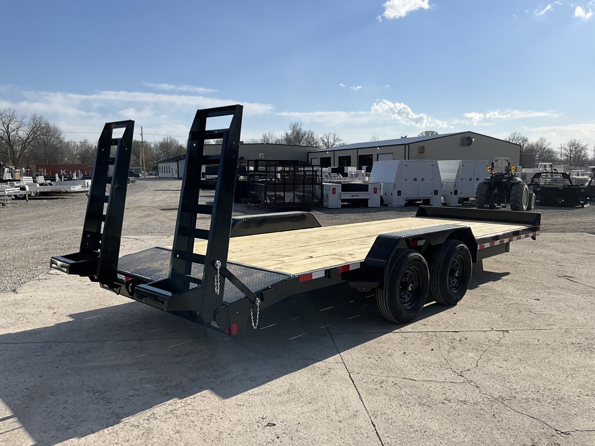 2026 RICE FMEMR8220 MAGNUM EQUIPMENT (ROBOTIC SERIES) 20' (18' Deck + 2' Dovetail) 6'10" Wide, 9,990 GVWR, Black For Sale in Illinois Feature: Magnum 9,900# robotic series equipment trailer Feature: 5' equipment style spring assist fold up ramps with kickers Feature: Stealth Magnum tool box Feature: Complete powder coat finish Specs Size: 20' long (18' flat + 2' dovetail) 6'10" wide Specs GVWR: 9,990 lb Specs Frame: 5" channel cold formed wrap tongue; 6" channel main frame Specs Crossmembers: 3" formed channel on 16" centers Specs Floor: Pressure treated 2 8 wood deck Specs Axles/Brakes: (2) 5,200 lb cambered EZ Lube axles; electric brakes Specs Tires/Wheels: ST235/75R15 8 ply radial tires on black mod wheels Specs Coupler: 2 5/16" adjustable coupler (14,000 lb rated) Specs Jack: 7,000 lb drop leg jack Specs Ramps: 5' spring assist fold up equipment ramps with kickers Specs Fenders: Hard steel fenders Specs Wiring: Fully sealed modular wiring harness Specs Lighting: All LED lighting; emergency breakaway kit Specs Finish: Steel grit blasted, degreased, phosphatized, sealed and powder coated; Black Weights & Capacities GVWR: 9,990 lb Weights & Capacities Empty Weight: 3,075 lb Weights & Capacities Payload on Axles: 9,990 3,075 = 6,915 lb Weights & Capacities Tongue Load (Bumper Pull @ 10%): 999 lb Weights & Capacities Total Payload Including Tongue: 7,914 lb Delivery from 62864 (Lower 48): Up to 100 miles $150 101 300 miles $2.00/mile 301 1200 miles $3.00/mile Over 1200 miles $4.00/mile