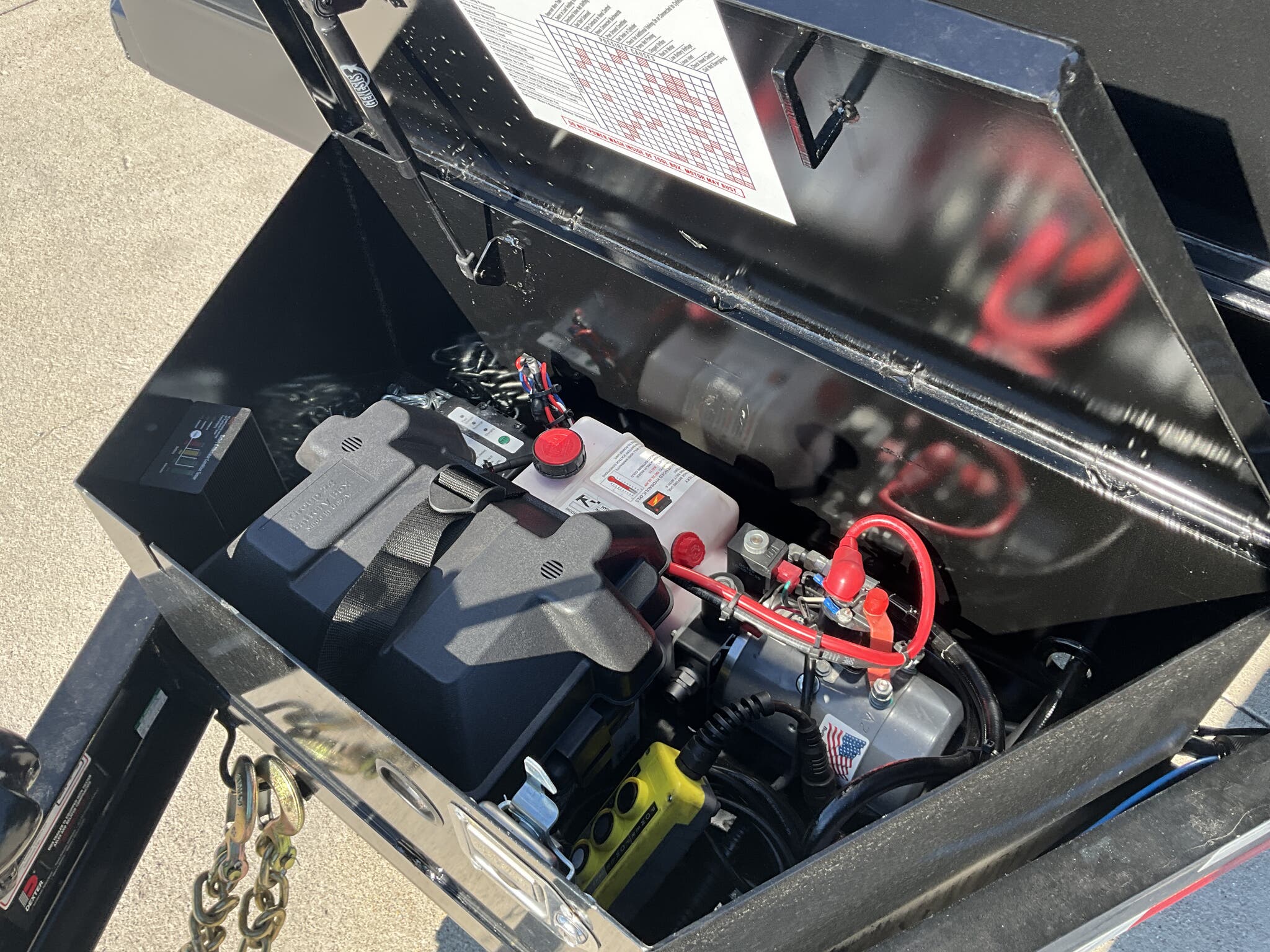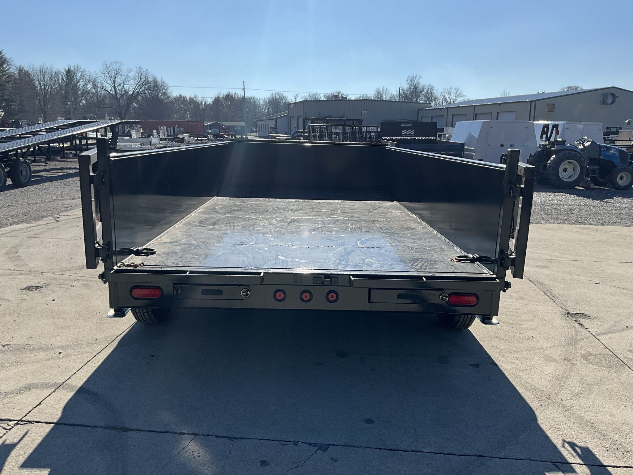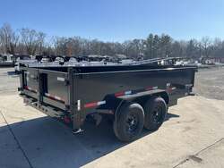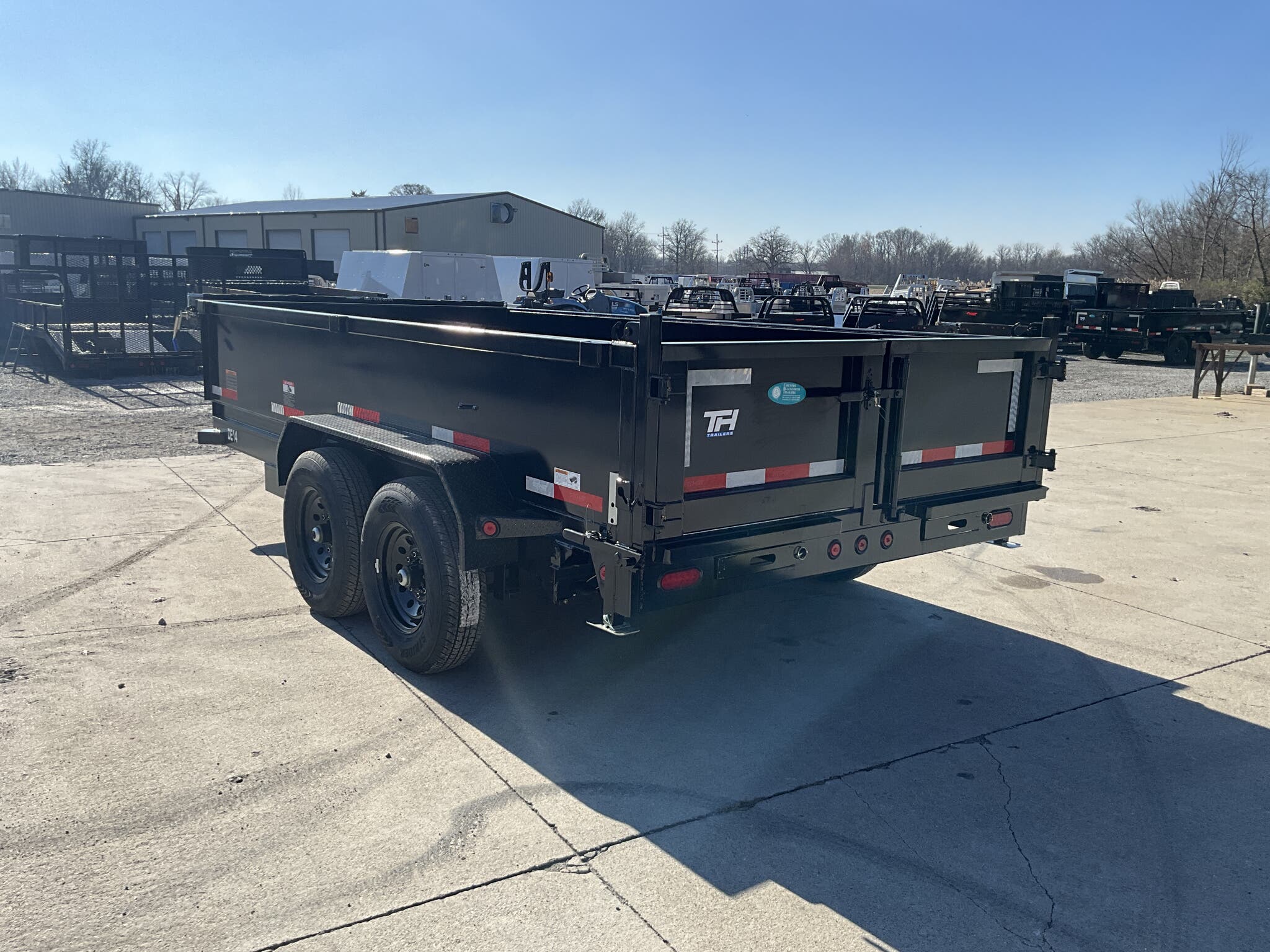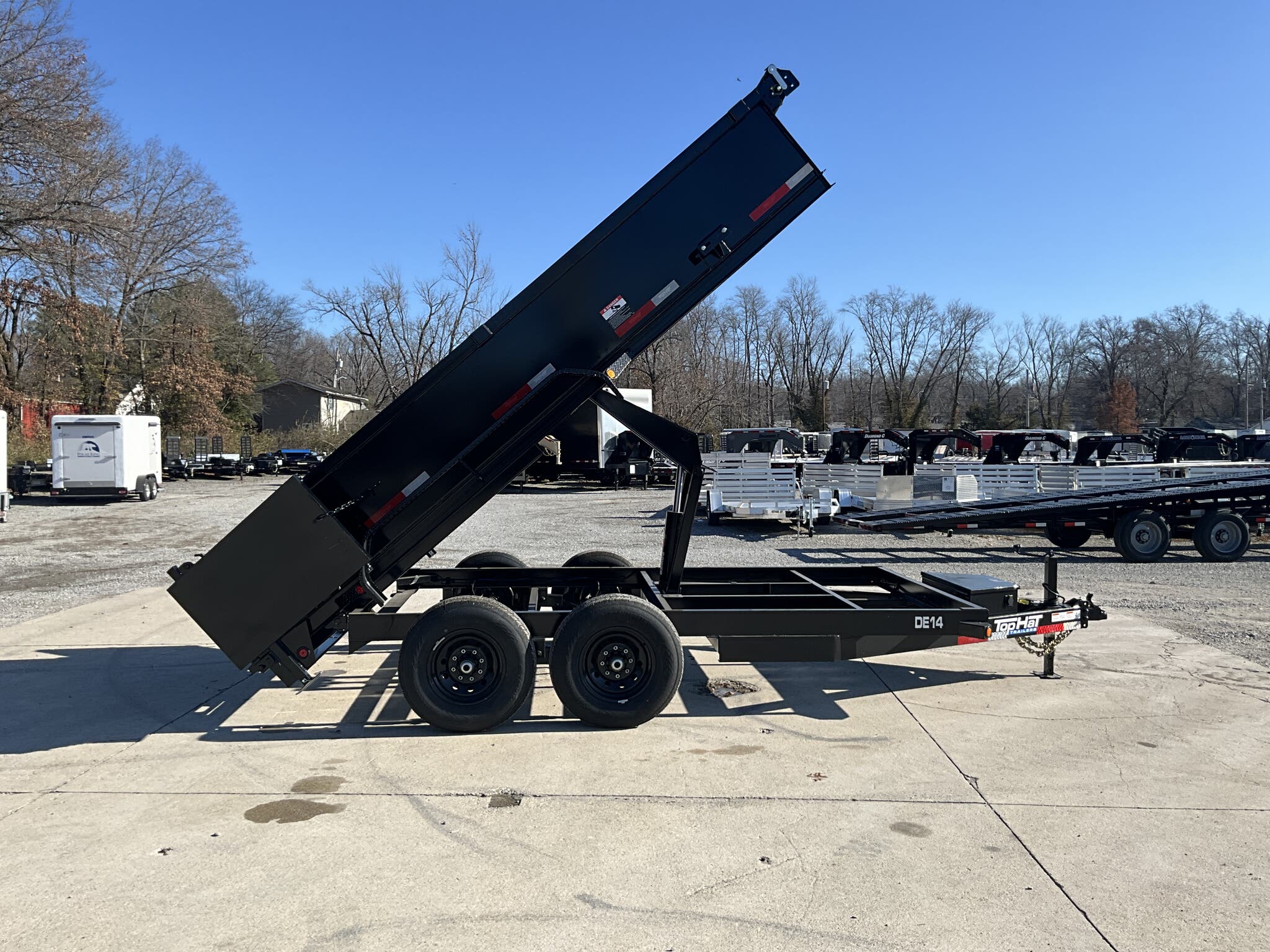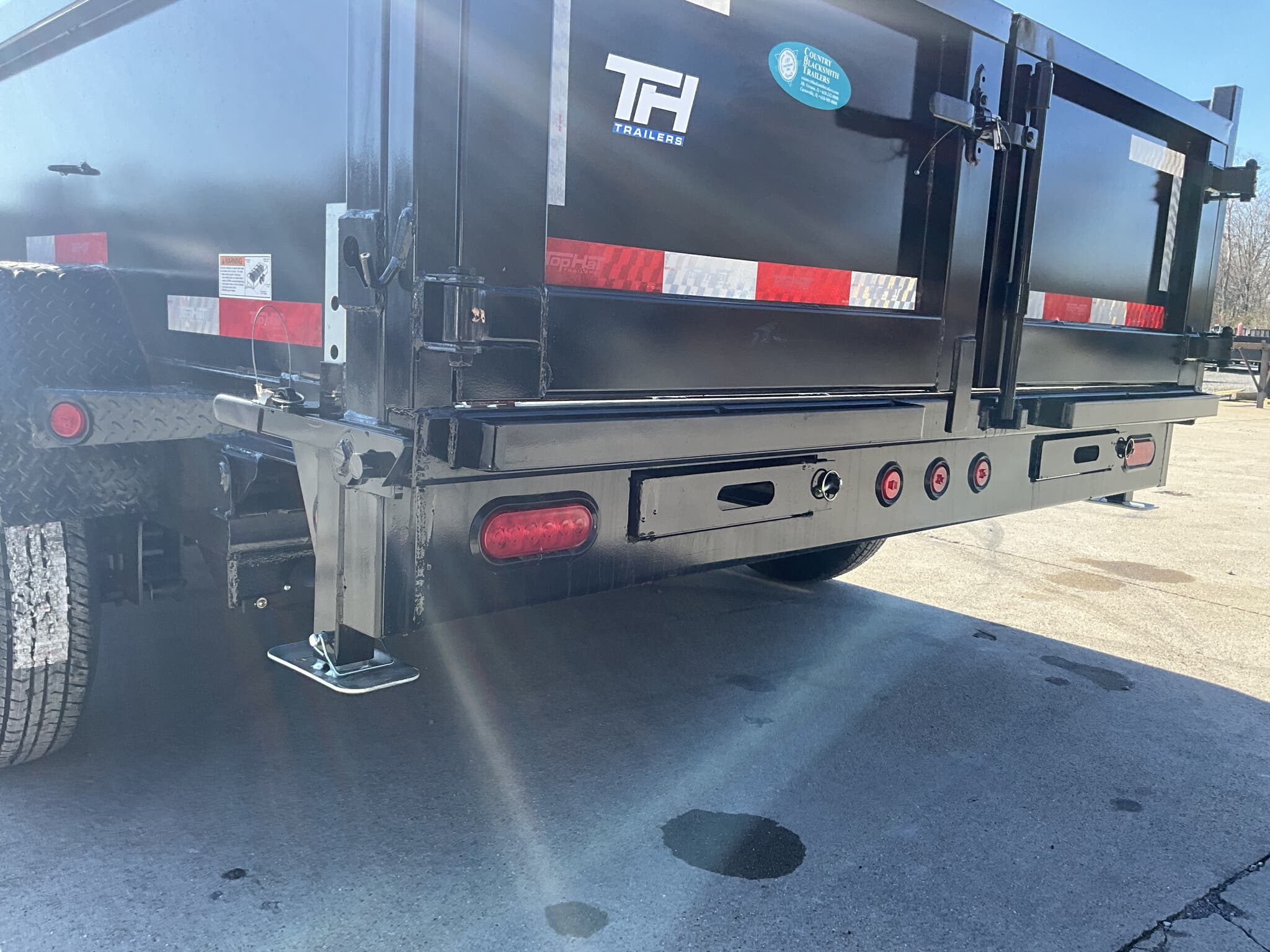 2026 TOP HAT 14' 83" DUMP TRAILER 14,000 lb Axle Capacity, 2' Sides, Scissor Hoist, 6' Slide In Ramps For Sale in Illinois Feature: 516 scissor hoist with power up / power down / gravity down pump Feature: 3 way rear gate (dual swing out & spreader function) Feature: 6' rear slide in ramps with ramp pockets Feature: Tarp kit installed Feature: Rear jack stands Specs Box Size: 14' length; 83" inside width; 24" tall sides Specs Floor: 10 ga steel floor Specs Fenders: 14 ga diamond plate fenders Specs Frame/Construction: Primed & painted underside; heavy duty dump box Specs Axles/Brakes: (2) 7,000 lb Dexter axles; electric brakes Specs Suspension: Multi leaf spring suspension Specs Coupler: 2 5/16" forged adjustable, 5 position Specs Jack: 7,000 lb drop leg jack Specs Tie Downs: (4) 5/8" D rings inside the bed Specs Electrical: Sealed wiring harness; flush mount LED lights; breakaway kit w/ charger Specs Battery/Charger: Deep cycle 12V battery w/ 110V 5 amp charger Specs Pump Box: Lockable battery & pump box Specs Tires/Wheels: ST235/80R16 radial LRE (10 ply) Specs Safety/Equipment: DOT reflective tape; safety prop; spare rack Specs Finish: Black paint Specs Warranty: 1 year Top Hat manufacturer warranty Weights & Capacities Total Axle Capacity: 14,000 lb Weights & Capacities Empty Weight: 4,205 lb Weights & Capacities Payload on Axles: 14,000 4,205 = 9,795 lb Weights & Capacities Tongue Load (10%): 1,400 lb Weights & Capacities Total Payload Including Tongue: 11,195 lb Delivery from 62864 (Lower 48): Up to 100 miles $150 101 300 miles $2.00/mile 301 1200 miles $3.00/mile Over 1200 miles $4.00/mile