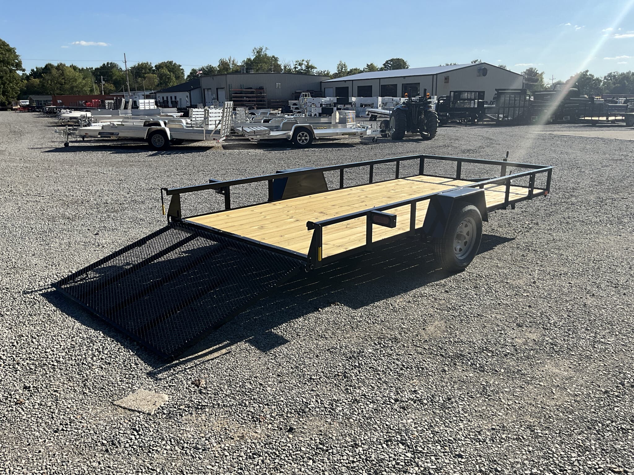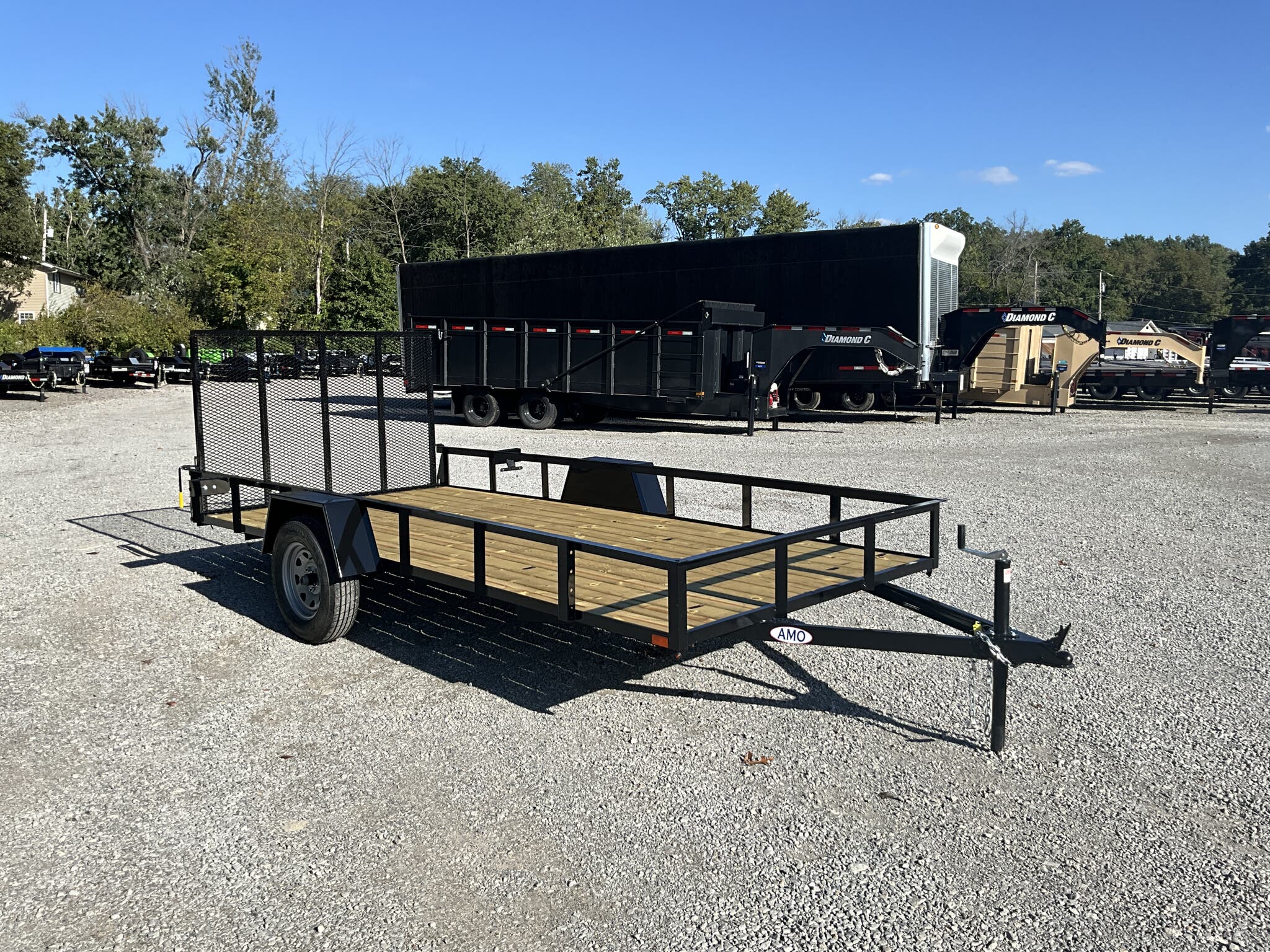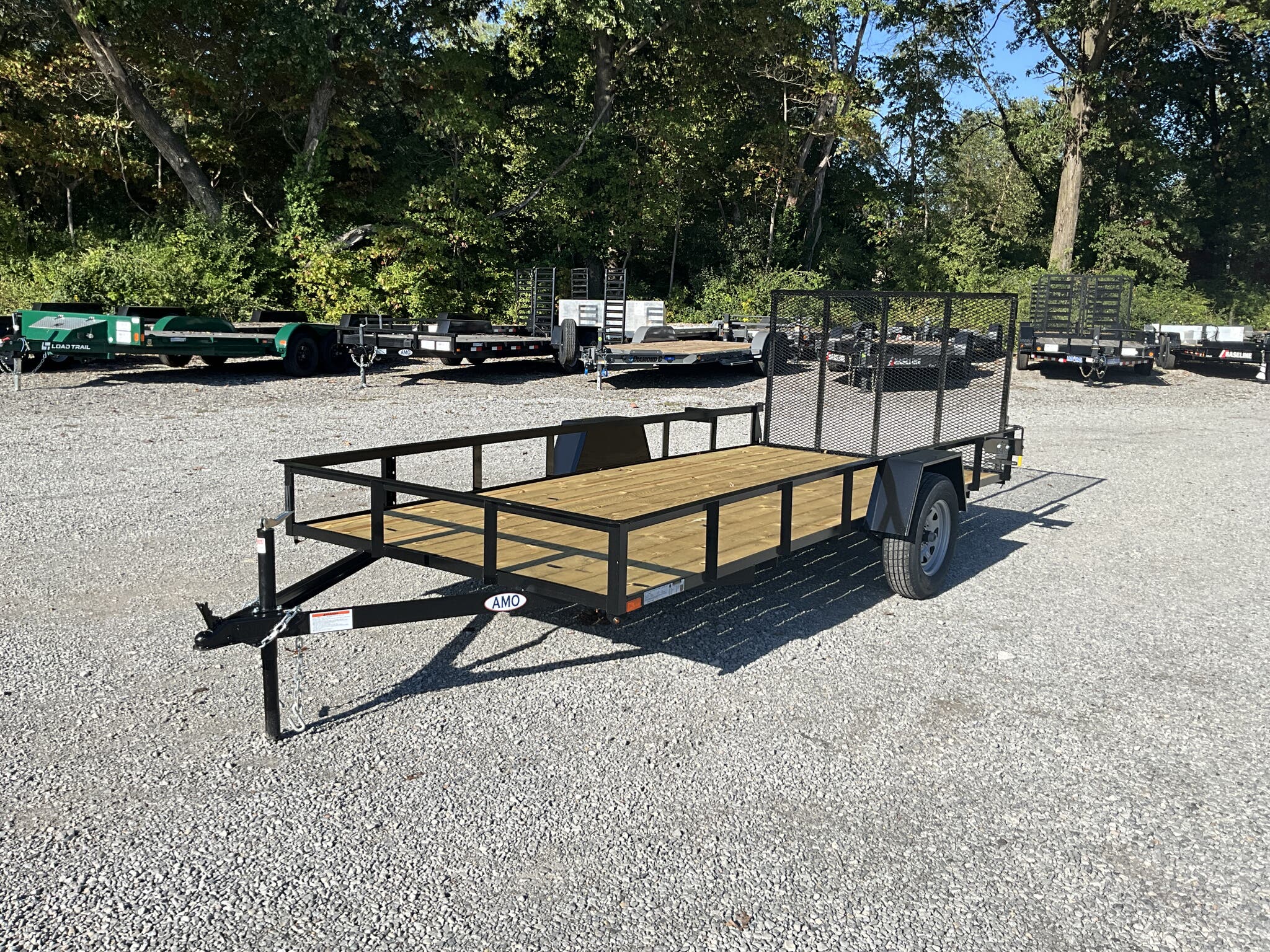 2026 AMO SINGLE AXLE UTILITY 14 FT X 76 INCHES WIDE 3KREAR RAMP GATEGATE IS SPRINGLOADEDTREATED WOOD FLOORLED LIGHTSBLACK PAINT3K IDLER AXLE ON SPRING SUSPENSION15 INCH TRAILER RADIAL TIRES