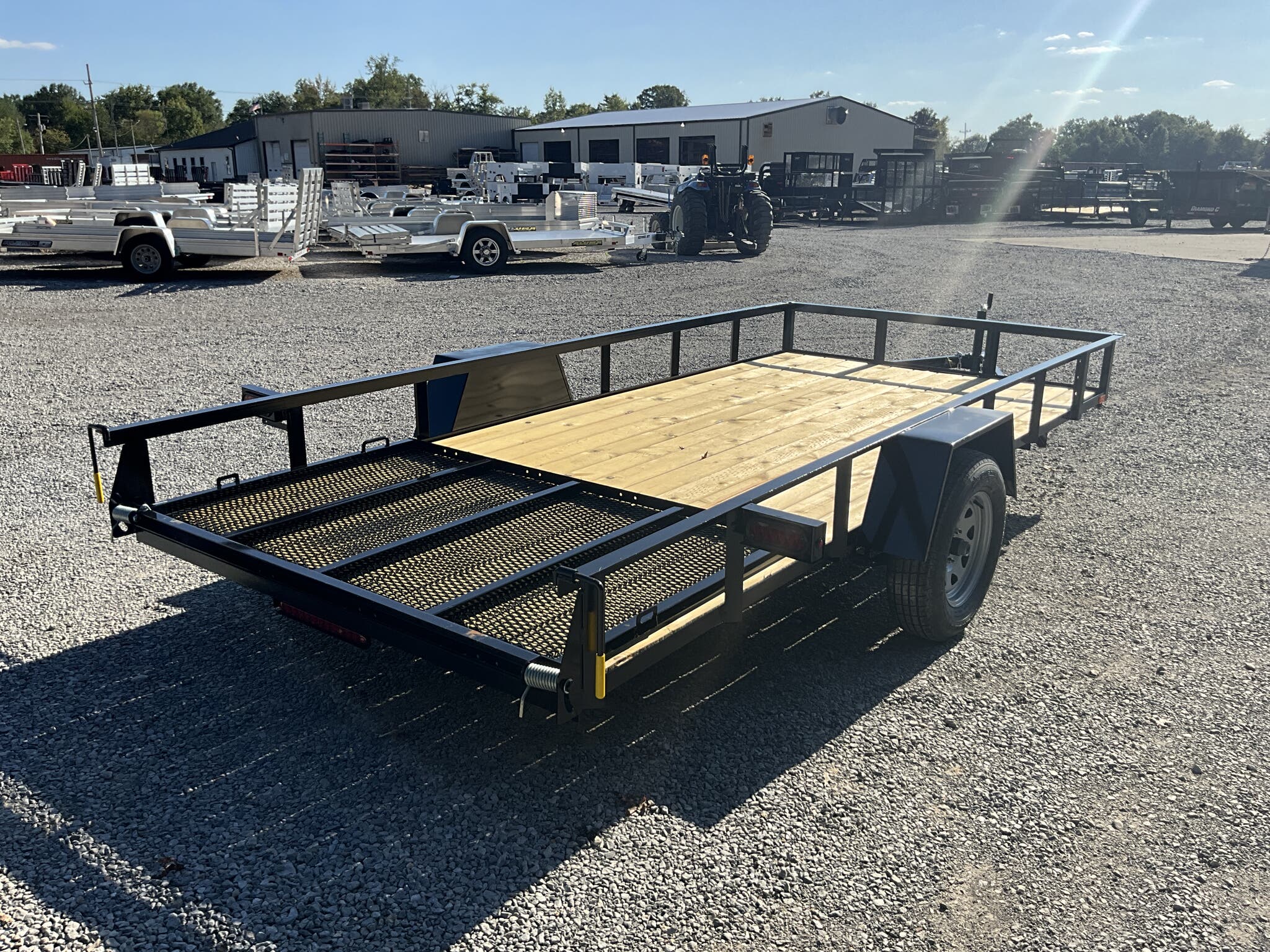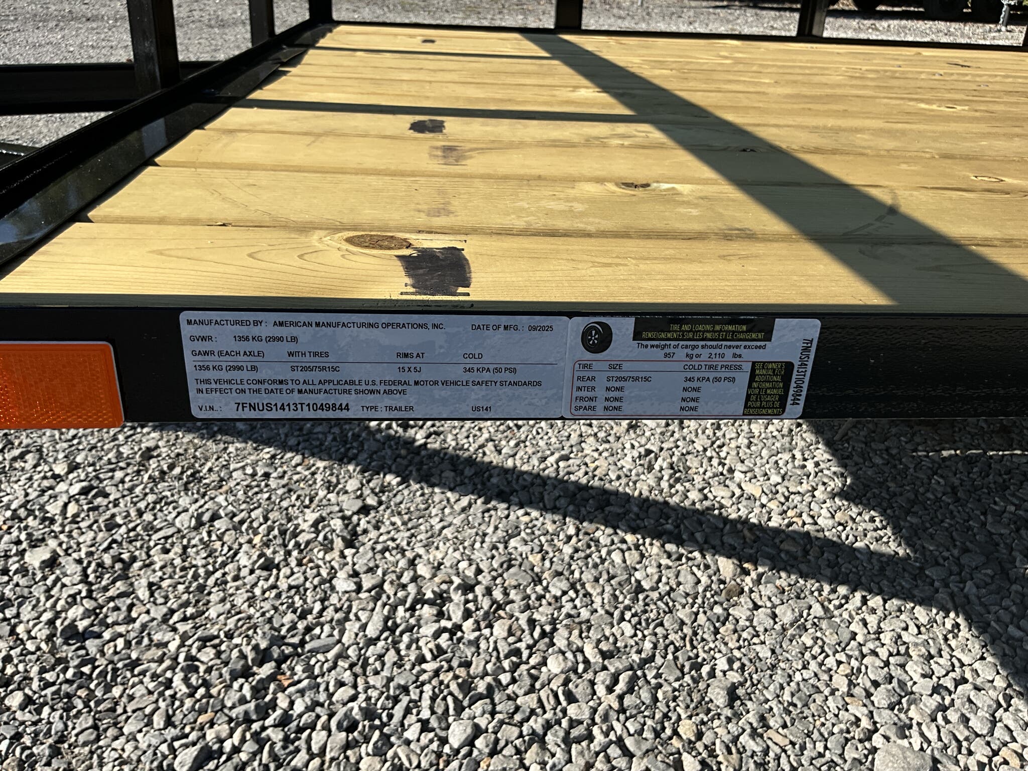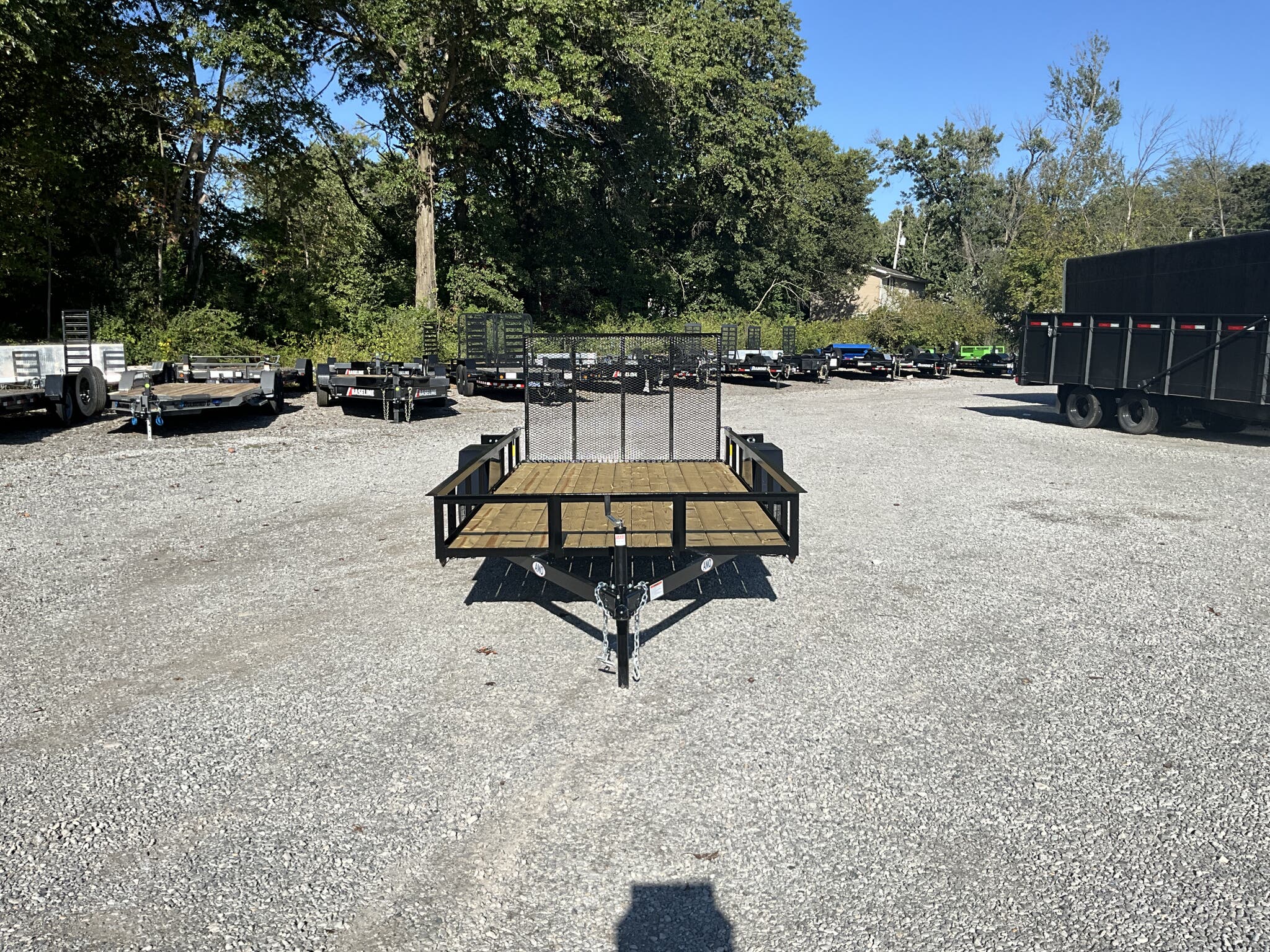 2026 AMO SINGLE AXLE UTILITY 14 FT X 76 INCHES WIDE 3KREAR RAMP GATEGATE IS SPRINGLOADEDTREATED WOOD FLOORLED LIGHTSBLACK PAINT3K IDLER AXLE ON SPRING SUSPENSION15 INCH TRAILER RADIAL TIRES