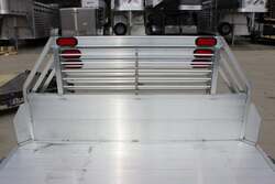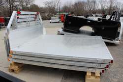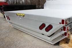 2023 ALUMA FLATBED FOR TRUCK FOR SALE, ALL ALUMINUM CONSTRUCTION, NO HITCHES, RUB RAIL WITH STAKE POCKETS, LIGHTED HEADACHE RACK, TAIL LIGHTS, BACK-UP LIGHTS, EXTRUDED ALUMINUM FLOOR WITH DROP REAR SKIRT, 3" CHANNEL MAIN STRINGERS - ADJUSTABLE TO FIT DIFFERENT TRUCK MODELS, 96" WIDE, 106" LONG.