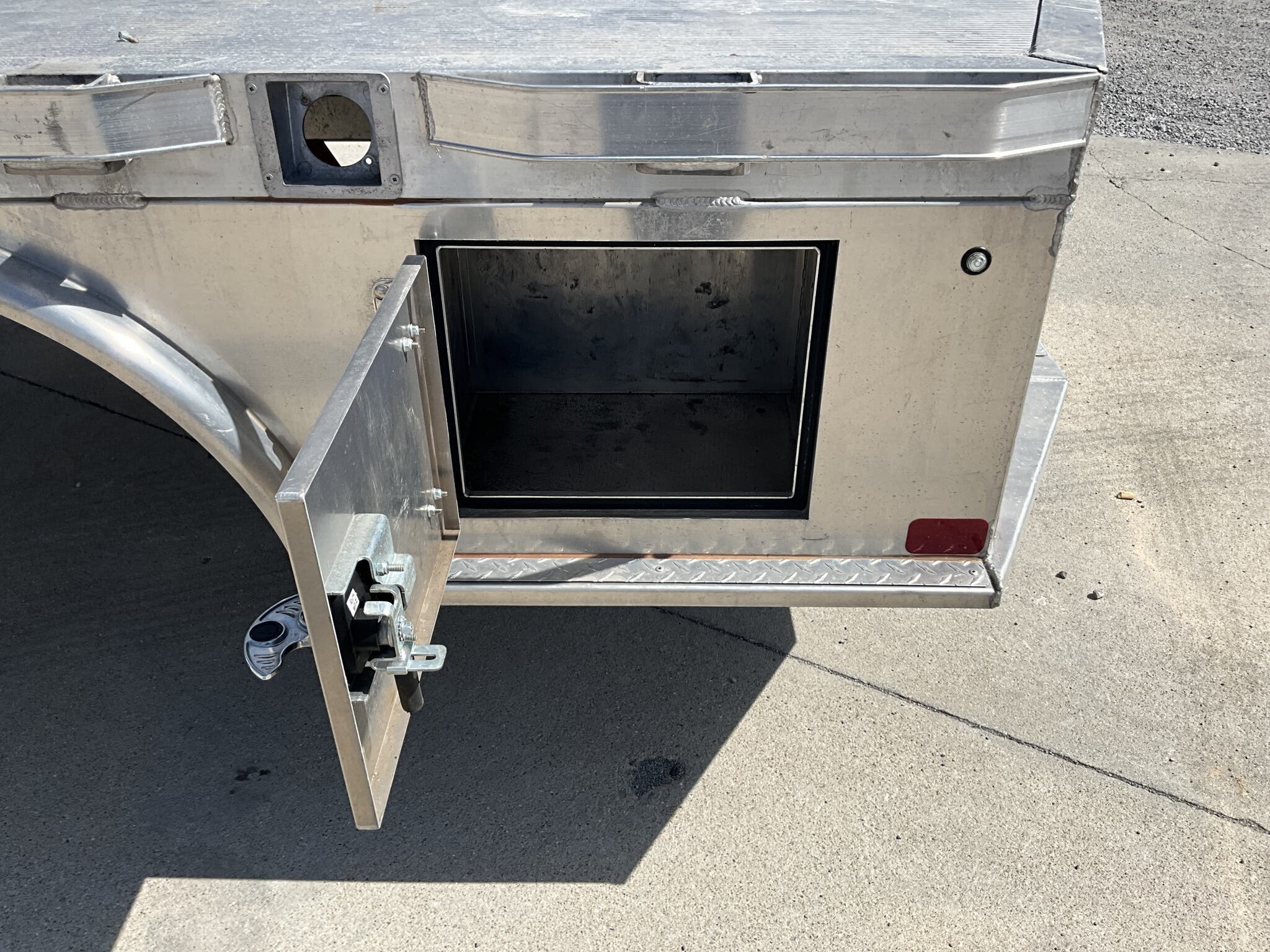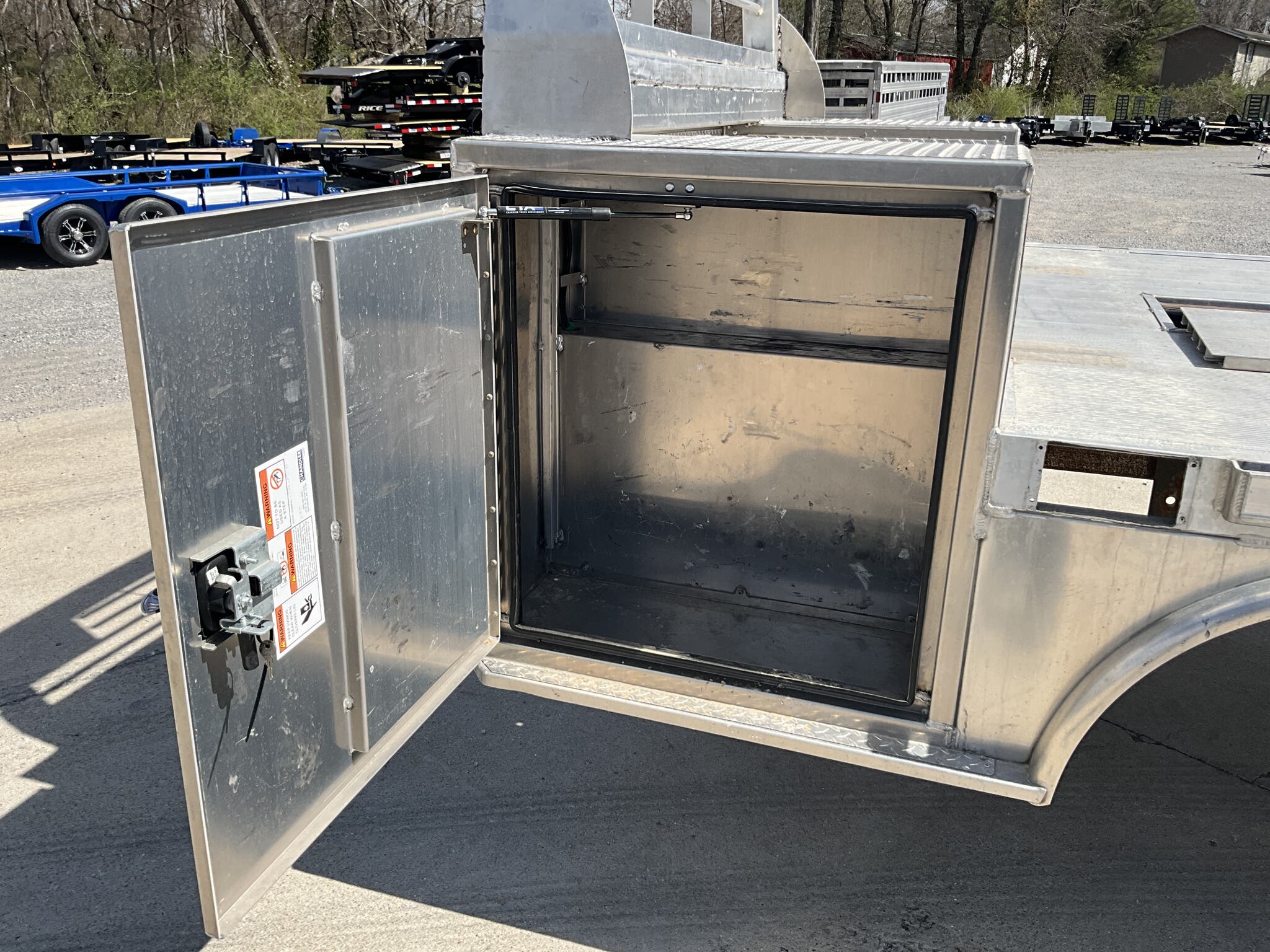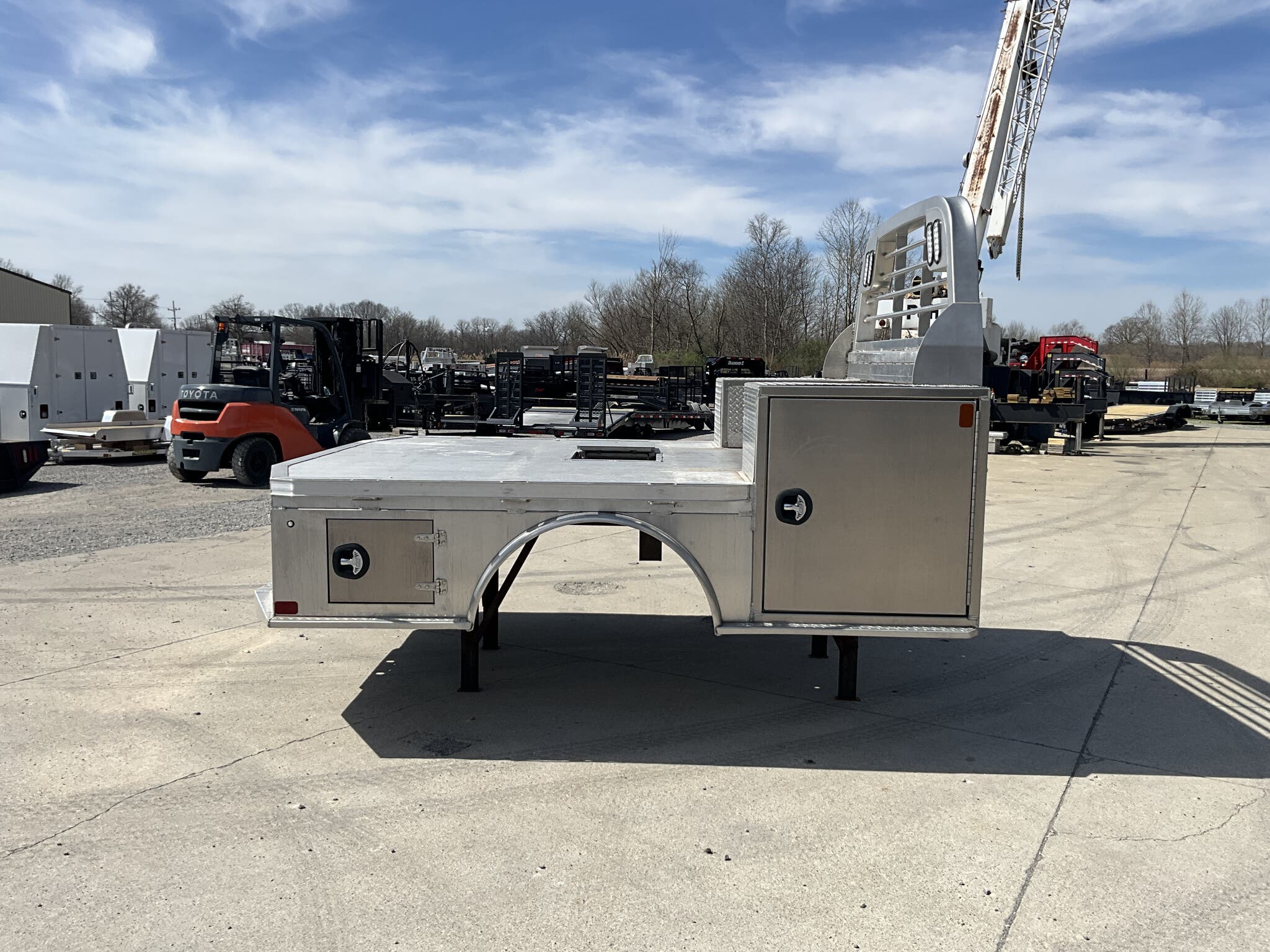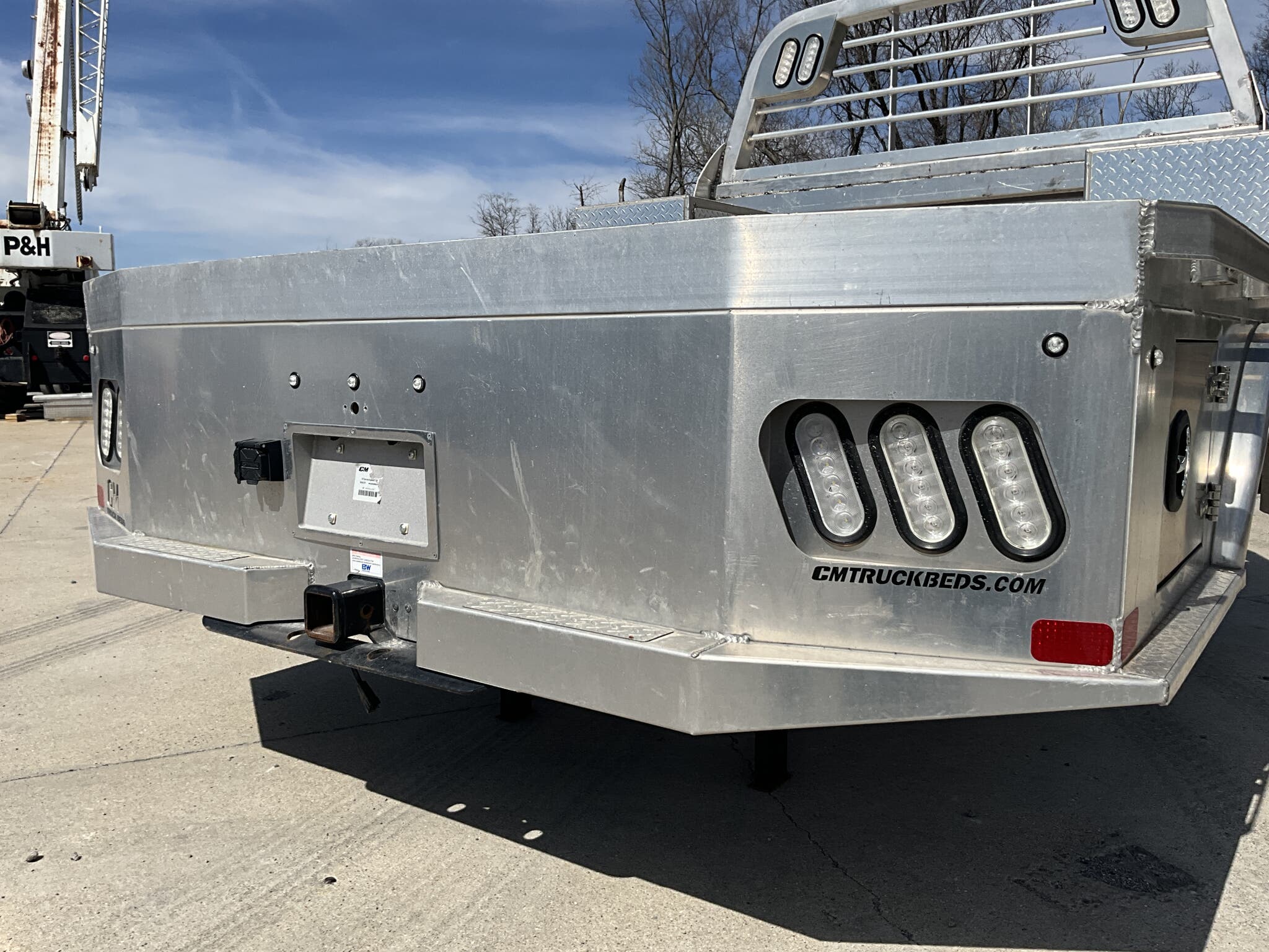 LIGHTLY USED 2023 CM SK DELUXE MODEL ALUMINUM UTILITY BED, TALL HEADACHE RACK FOR GMC 6500 TRUCK!!, SKIRTED BED WITH 4 TOOLBOXES, (2) STANDARD TOOLBOXES INTEGRATED IN REAR AND (2) TALL TOOLBOXES INTEGRATED IN FRONT, RUB RAIL WITH STAKE POCKETS, LIGHTED HEADACHE RACK, LED LIGHTS, SMOOTH ALUMINUM SIDES, EXTRUDED ALUMINUM FLOOR, STEEL SUB FRAME, ALUMINUM TOOLBOXES WITH T-HANDLE LATCHES, 94" X 112", 60" CAB TO AXLE, 34" FRAME WIDTH, THIS BED FITS A DUALLY WHEEL CAB AND CHASSIS TRUCK (9' FRAME). Please check with us for exact fitment as makes vary slightly.
