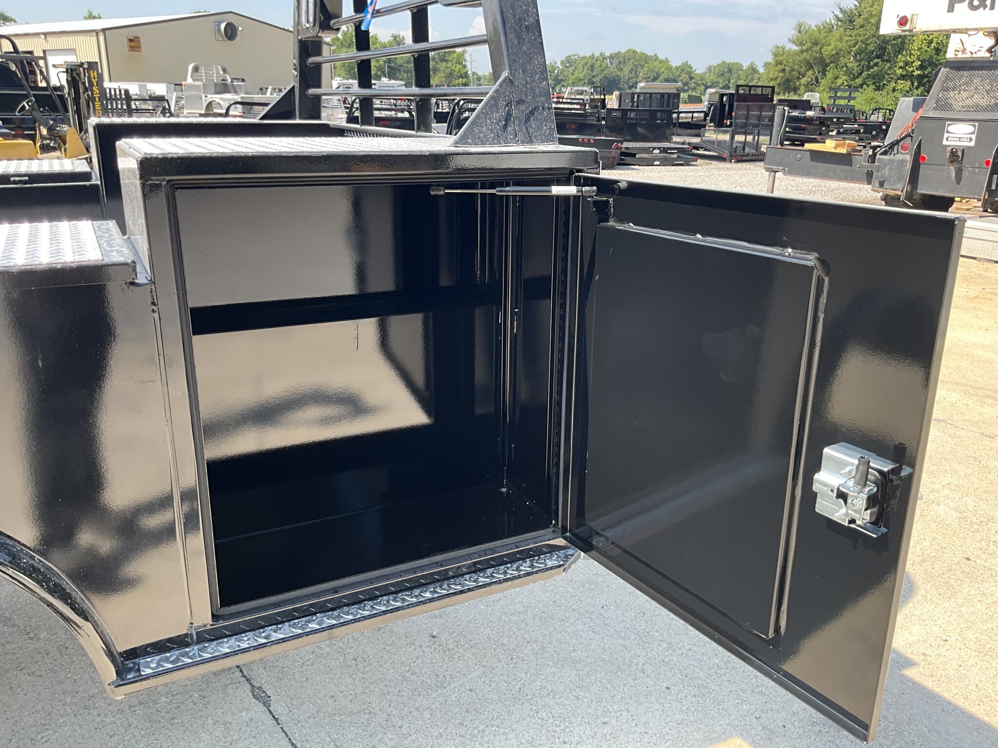 CM TM MODEL CONTRACTOR BED, 112" X 94", 60" CAB TO AXLE, FITS DUAL WHEEL CAB CHASSIS PICKUP WITH 9 FT FRAME, 34 INCH FRAME WIDTH, LED FLUSH MOUNTED TAIL, BRAKE, AND BACK UP LIGHTS, 2 REAR WORK LIGHTS, MODULAR SEALED WIRING HARNESS, 1/8 INCH STEEL TREADPLATE FLOOR, 4 SLIDING FLOOR MOUNT TIE DOWNS, TAPERED REAR CORNERS, DROP DOWN REAR TAILGATE WITH CENTER HANDLE, 18,500 LB RATED B&W BUMPER PULL HITCH, 30,000 LB RATED B&W GOOSENECK HITCH WITH 7-WAY ELECTRICAL PLUG, 2 FRONT LARGE TOOLBOXES (ONE ON EACH SIDE), 2 REAR TOOLBOXES (ONE ON EACH SIDE), ONE LONG UPPER TOOLBOX ON EACH SIDE, BLACK POWDER-COAT FINISH. Please check with us for exact fitment as makes vary slightly.