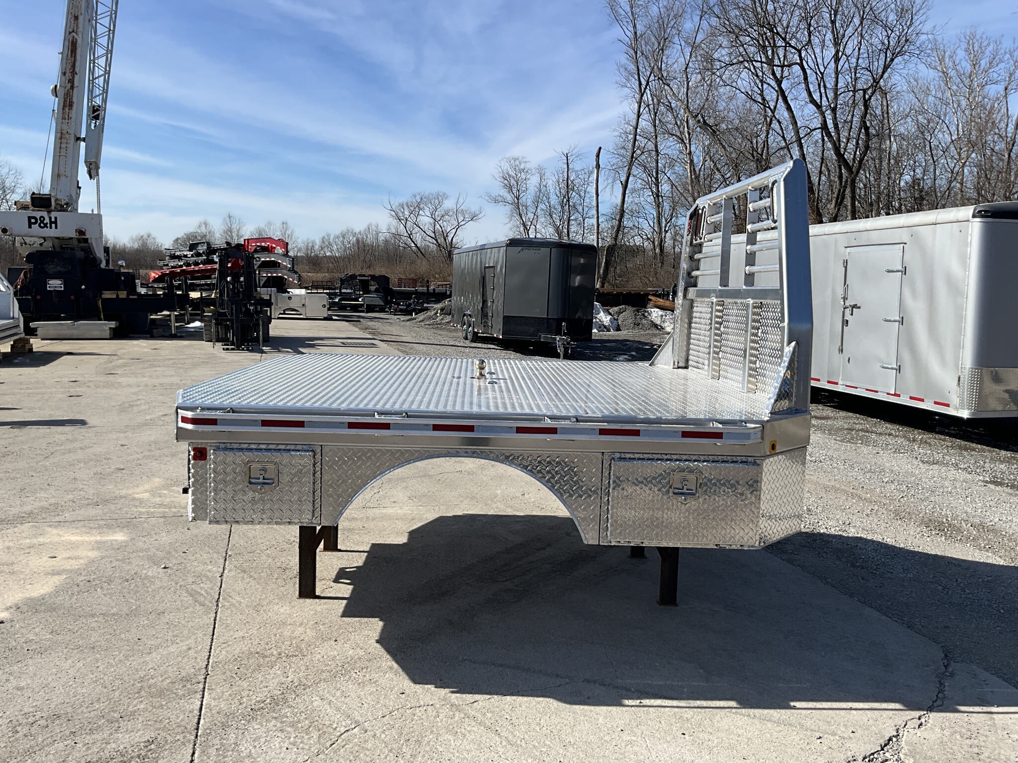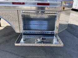 2026 6000XL SERVICE BODY PACKAGE 97" Wide 102" Long, Complete Aluminum Box & Skirt Package, Fits Dual Wheel Longbed Bed Takeoff (Ford / Ram / GMC) For Sale in Illinois Feature: Complete 6000XL body with aluminum toolbox and skirt package Feature: Dual 34" front aluminum toolboxes Feature: Dual 16" rear aluminum toolboxes Feature: Aluminum short side skirt set Feature: 2 1/2" rear receiver hitch included Specs Body Size: 97" wide 102" long Specs Fitment: Dual rear wheel longbed bed takeoff pickup (Ford, Ram, GMC) Specs Construction: Heavy duty steel service body Specs Front Toolboxes: (2) 34" aluminum toolboxes, 1/8" tread plate, side open doors; 34" W 14" T 16" H Specs Rear Toolboxes: (2) 16" aluminum toolboxes, 1/8" tread plate, side open doors; 16" W 12" T 12" H Specs Skirts: Aluminum short side skirt set mounted between front and rear toolboxes Specs Hitch: 2 1/2" receiver Specs Lighting: CF oval light configuration Specs Installation: U fit boxes and skirts installed Specs Finish: Factory finish Specs Warranty: Manufacturer warranty Delivery from 62864 (Lower 48): Up to 100 miles $150 101 300 miles $2.00/mile 301 1200 miles $3.00/mile Over 1200 miles $4.00/mile