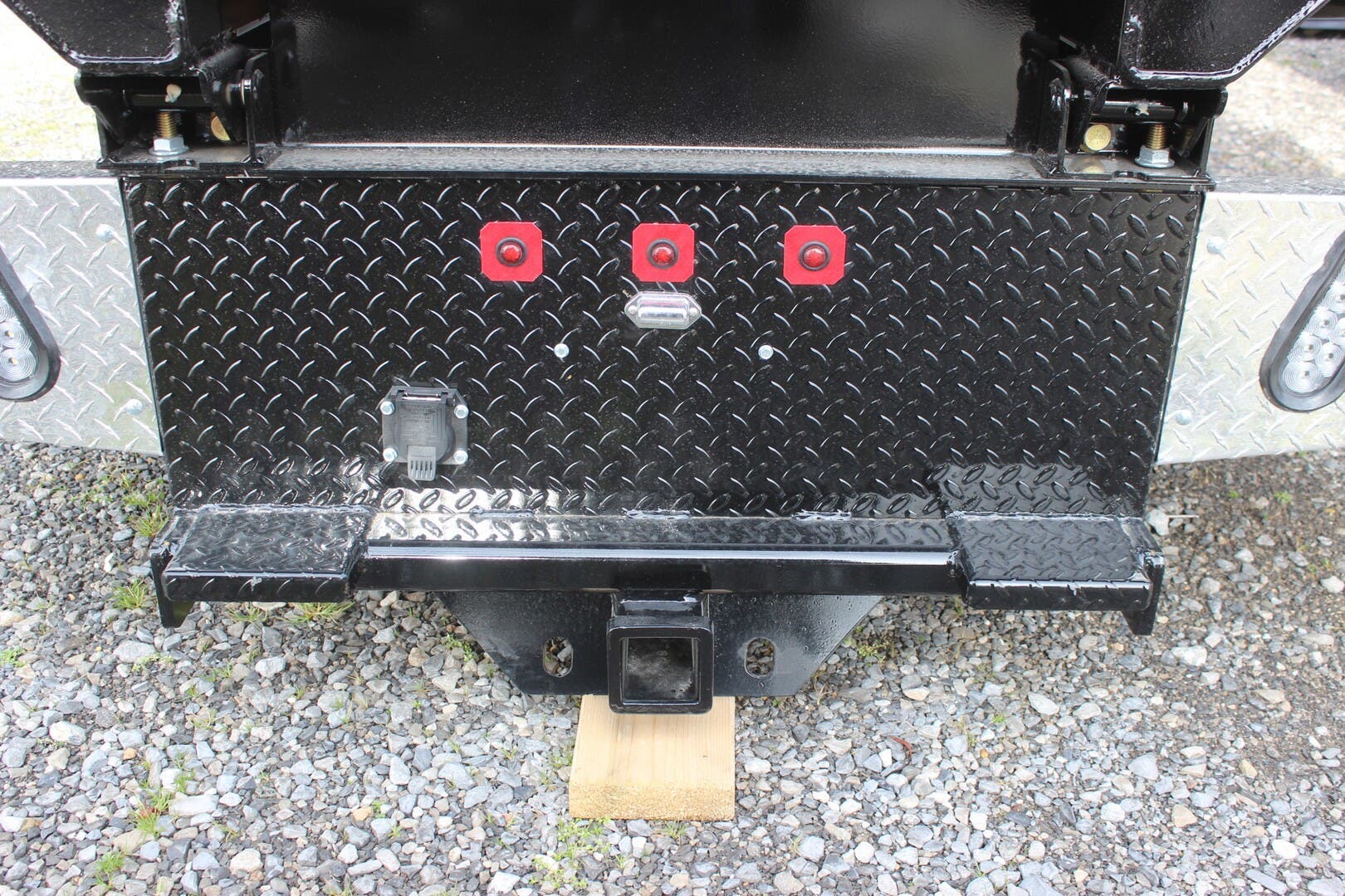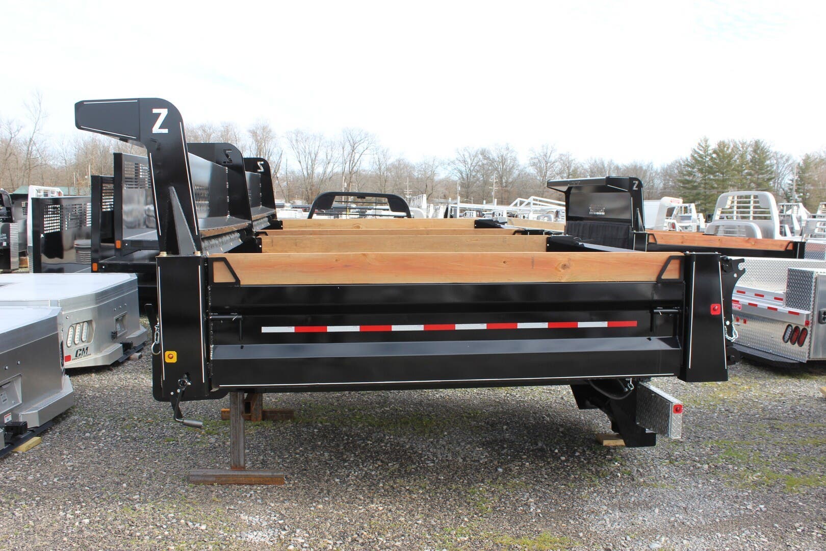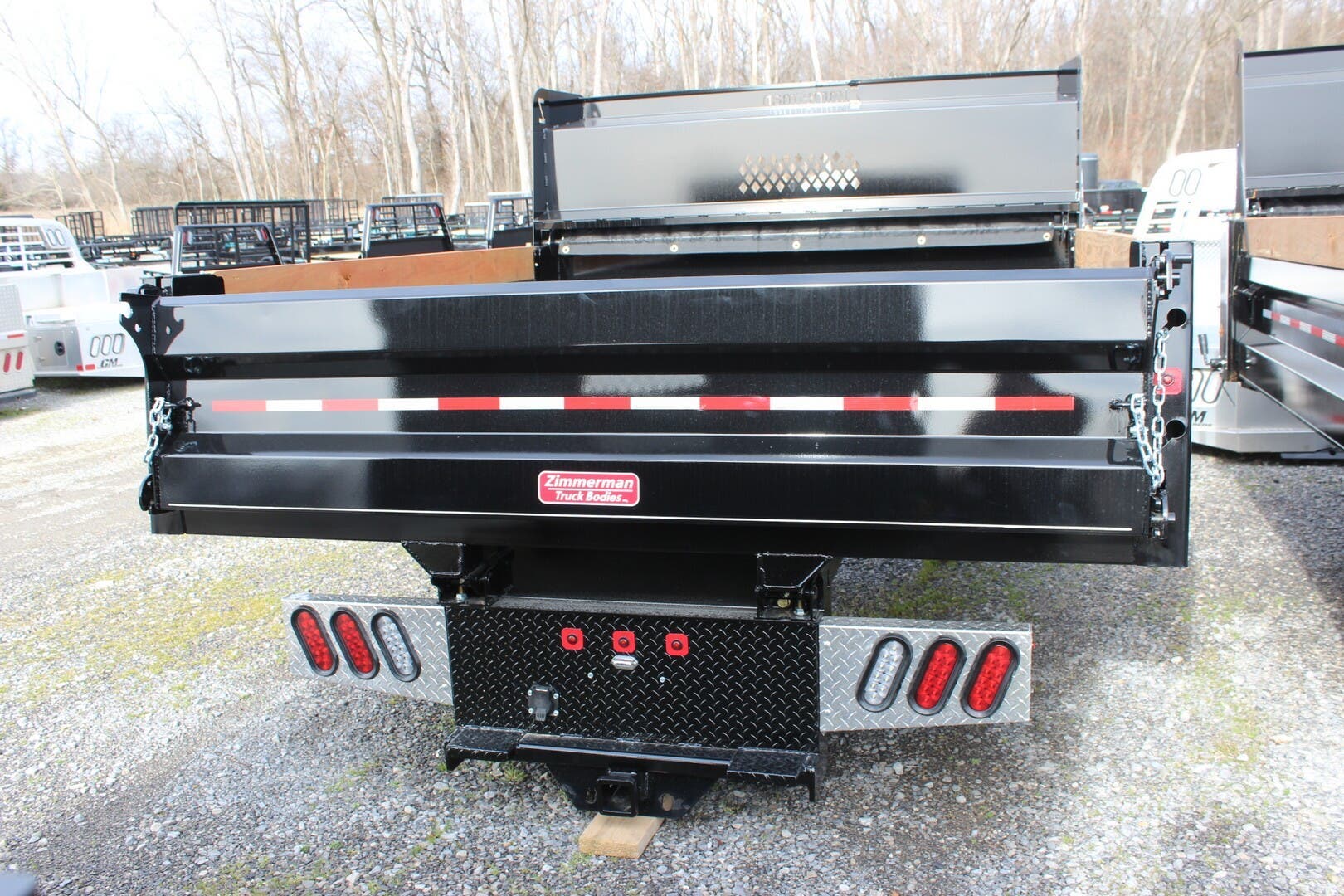 ZIMMERMAN 9.5 FT DUMP BODY FOR PICKUP TRUCK FOR SALE, THIS DUMP BED INCLUDES THE SUBFRAME AND REAR HITCH PLATE, ALSO HAS THE HOIST BATTERY AND PUMP PRE INSTALLED. THIS IS A ONE OF A KIND DUMP BED FULLY ASSEMBLED WITH ALL THE OPTIONS YOU NEED RIGHT FROM THE FACTORY. TARP KIT INSTALLED, CAB PROTECTER WITH REAR VIEW WINDOW GRILL, 15" FOLD DOWN SIDES WITH BOARDS AND BOARD BRACKETS, 4 WELD ON D-RINGS IN THE BED, REAR 2 WAY SPREADER GATE, REAR LED TAIL LIGHTS AND CLEARANCE LIGHTS, REAR 2-1/2" RECEIVER HITCH, MUD FLAPS. THIS BED FITS A DUALLY WHEEL CAB AND CHASSIS TRUCK (9' FRAME).